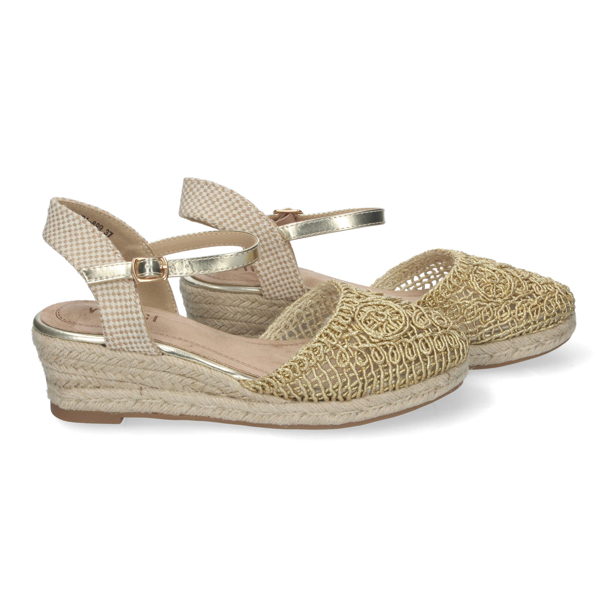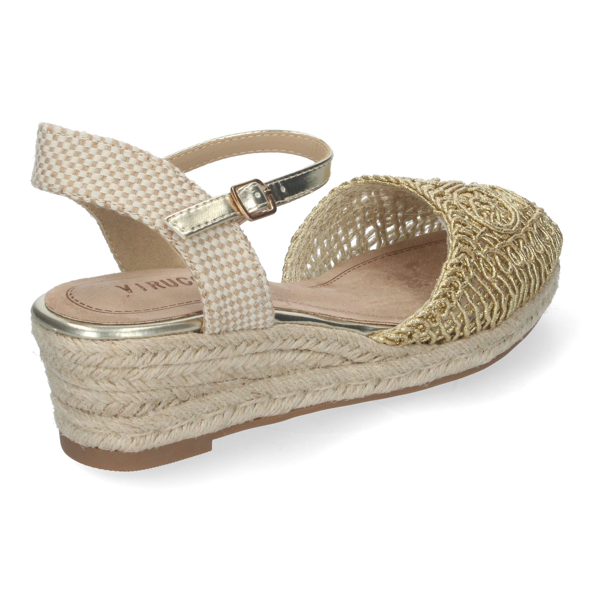 Sandalia de Cuña de Yute para Mujer Estilo Valenciana con Pala Bordada Cierre de Hebilla ideal para Primavera-Verano.