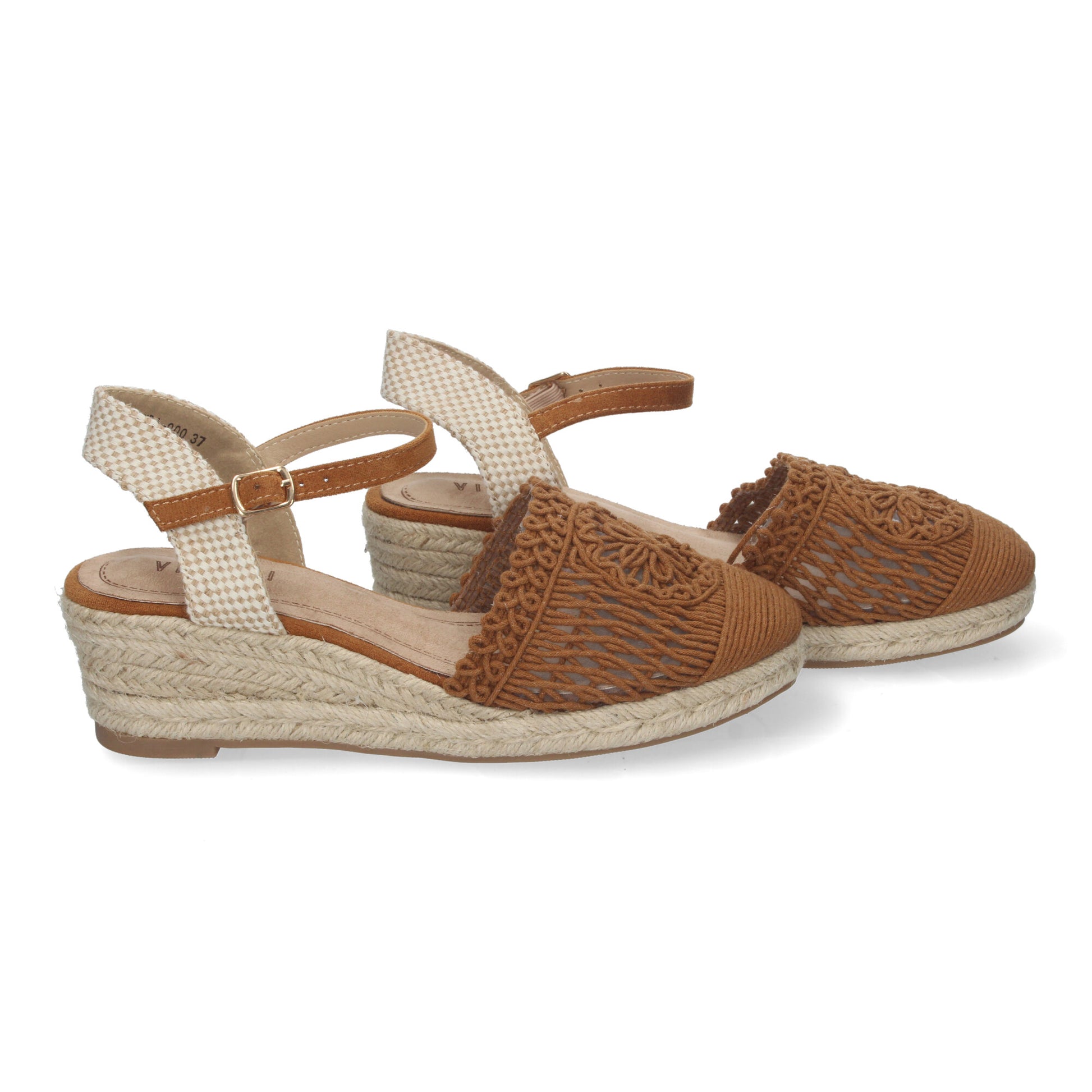 Sandalia de Cuña de Yute para Mujer Estilo Valenciana con Pala Bordada Cierre de Hebilla ideal para Primavera-Verano.