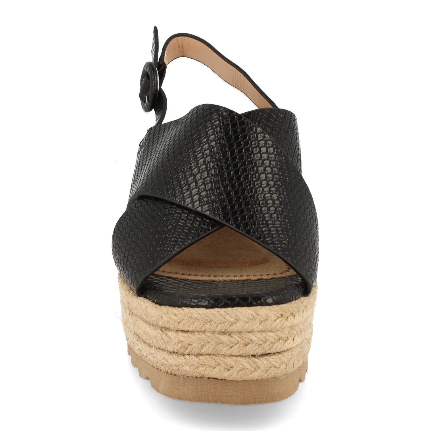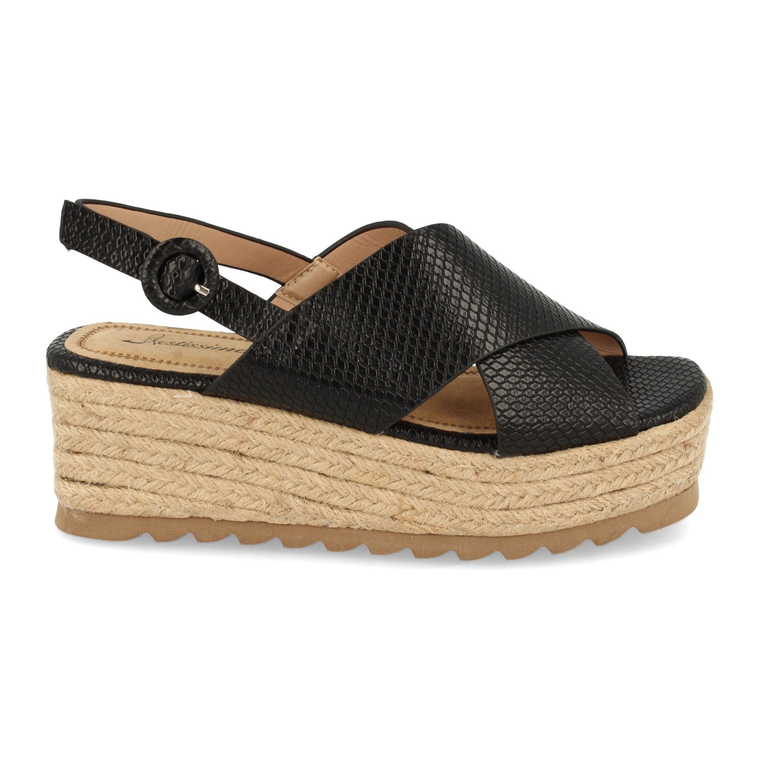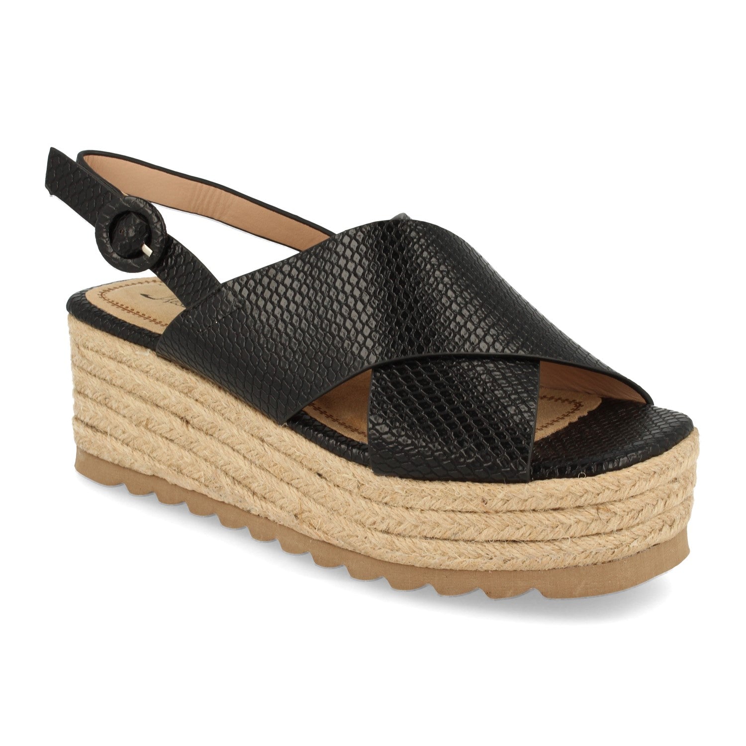Sandalias de Mujer con Plataforma de Yute Pala Cruzada con Grabado Cocodrilo y Cierre Ajustable con Hebilla. Primavera Verano 2020.