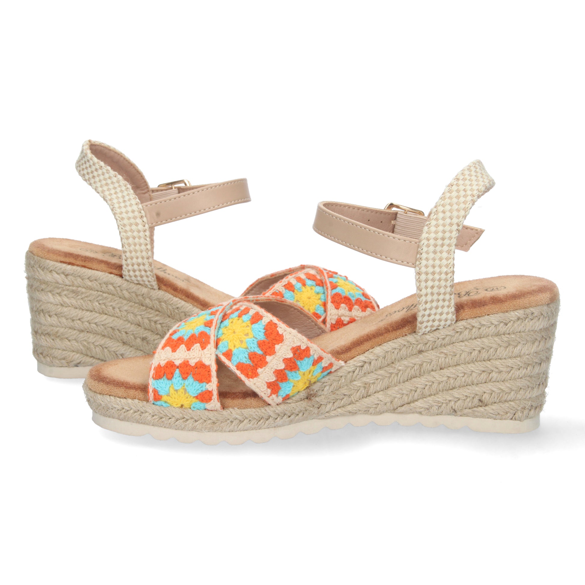 Sandalia de Cuña para Mujer Comoda Forrada de Yute Palas Cruzadas con Bordado y Cierre de Hebilla Primavera Verano 2023