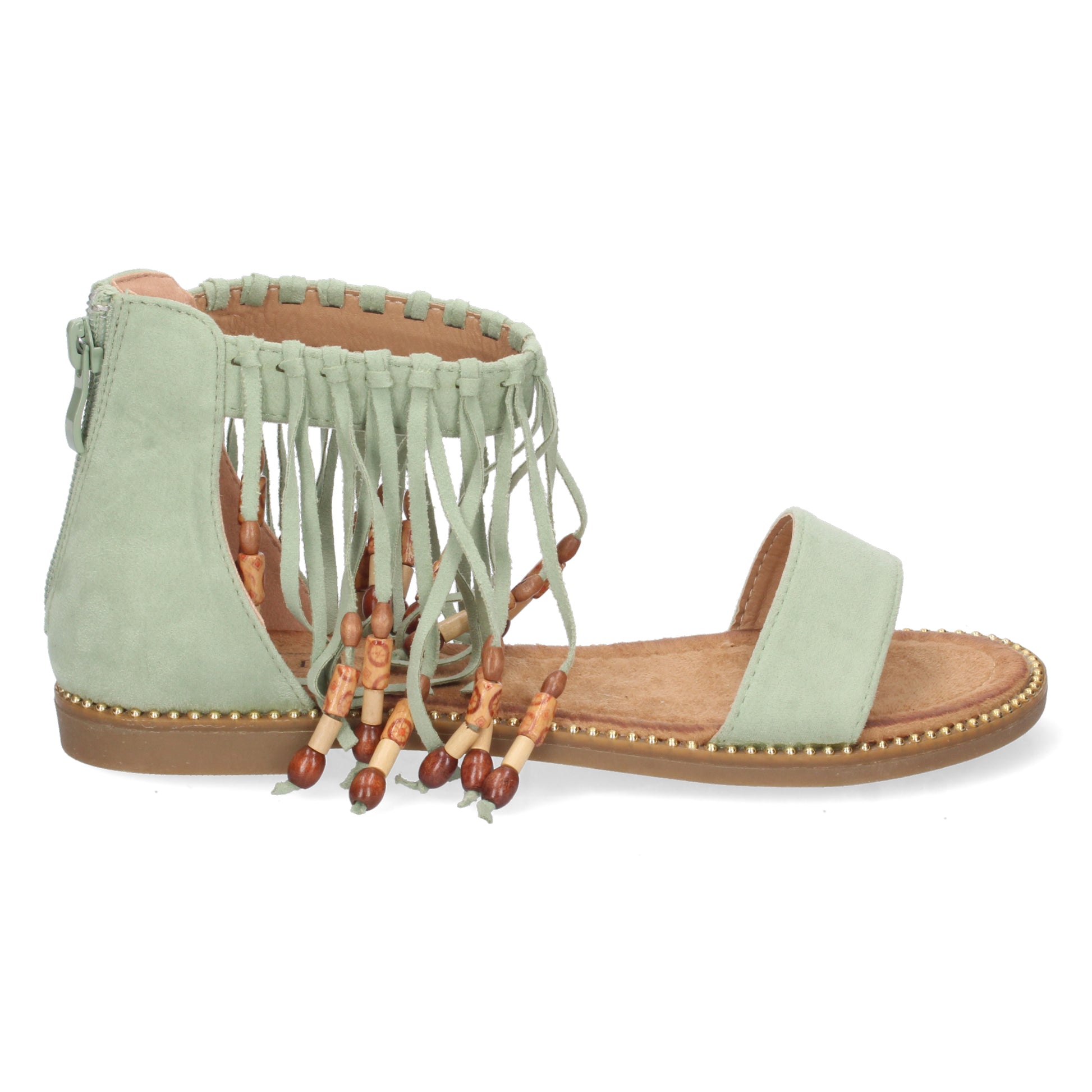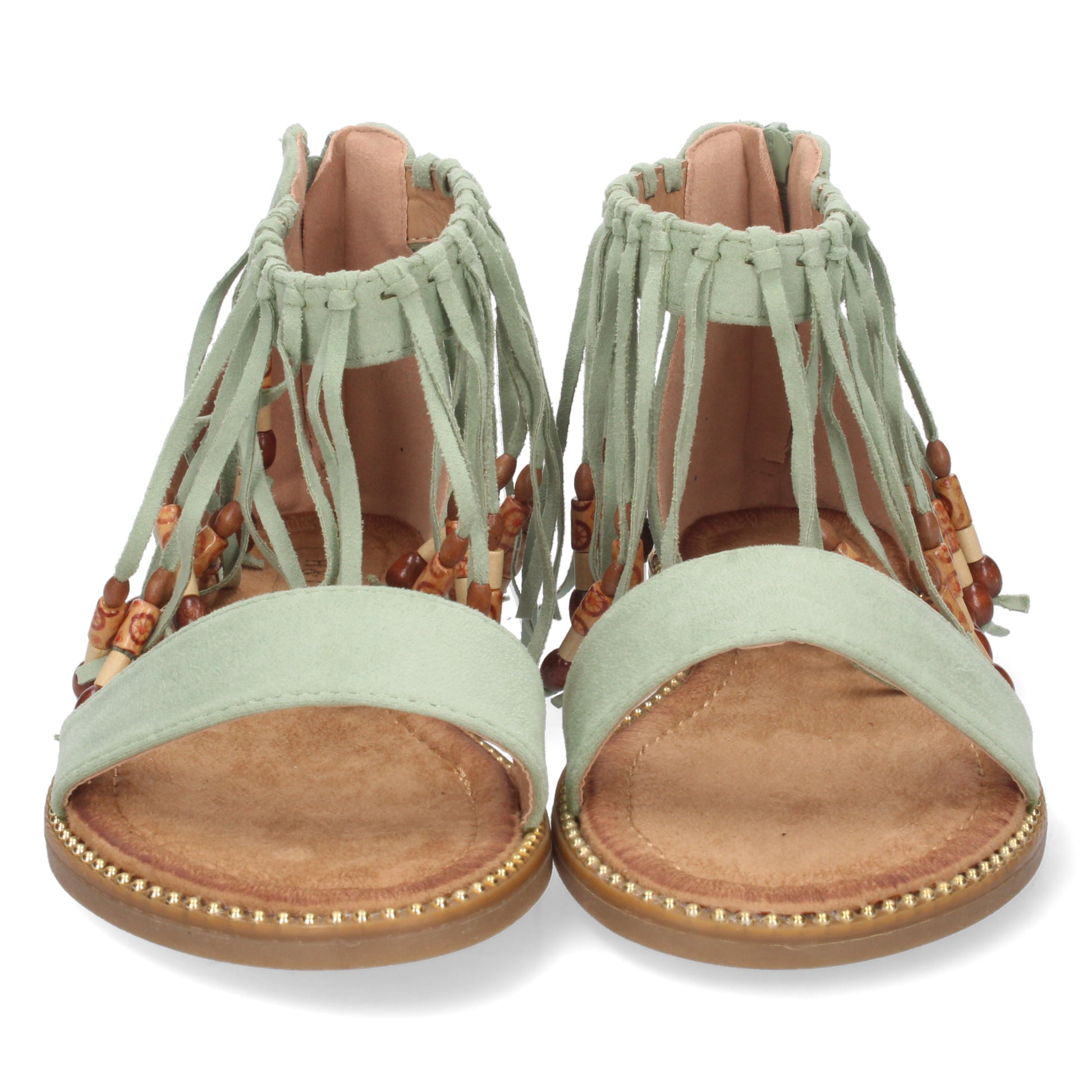 Sandalia Plana de Esclava con Talón Cubierto Adorno en los Flecos y Cierre de Cremallera Primavera Verano 2022