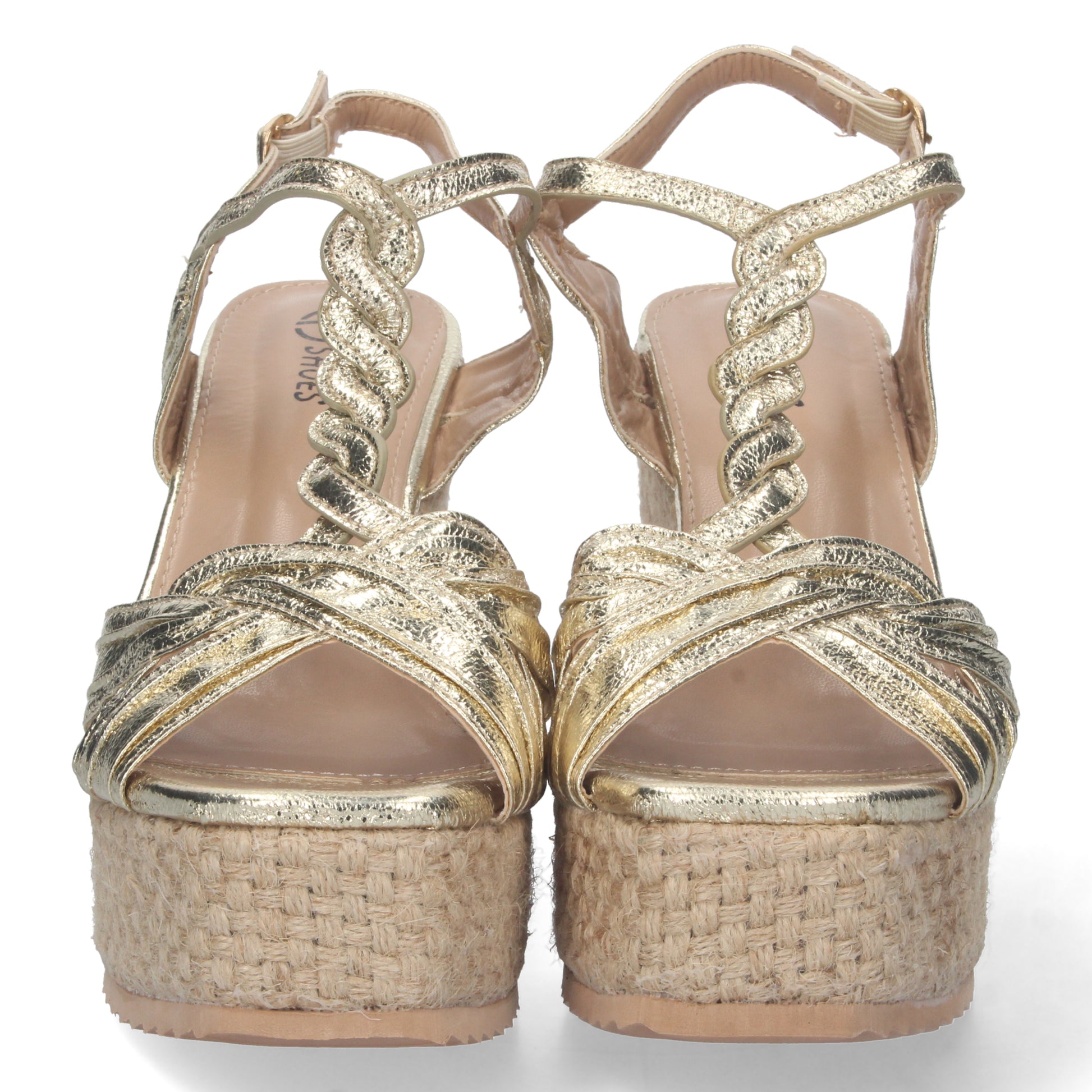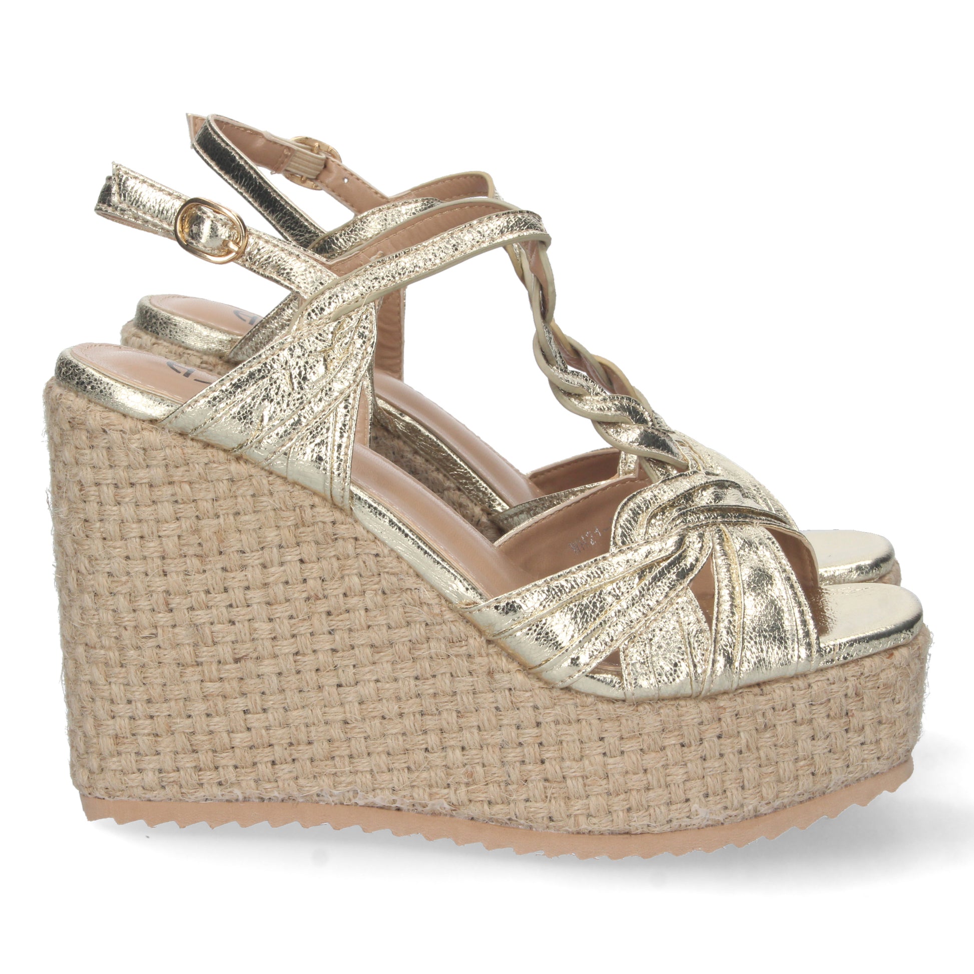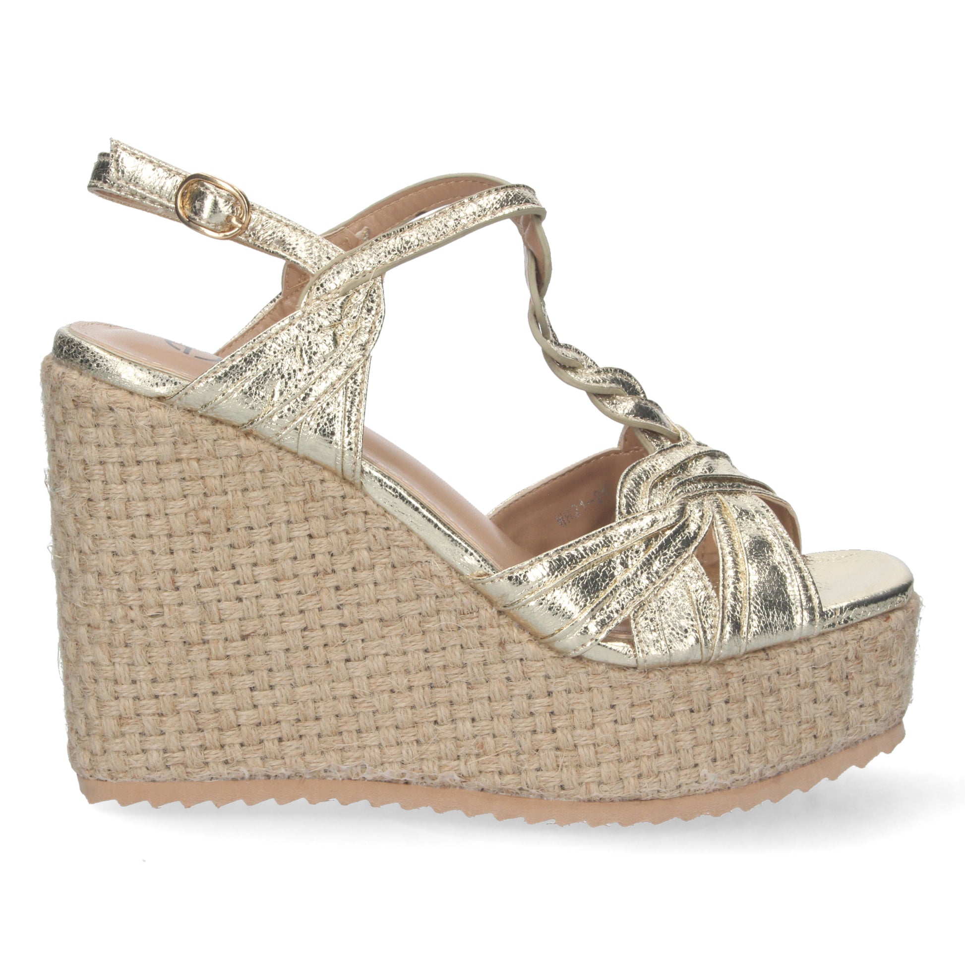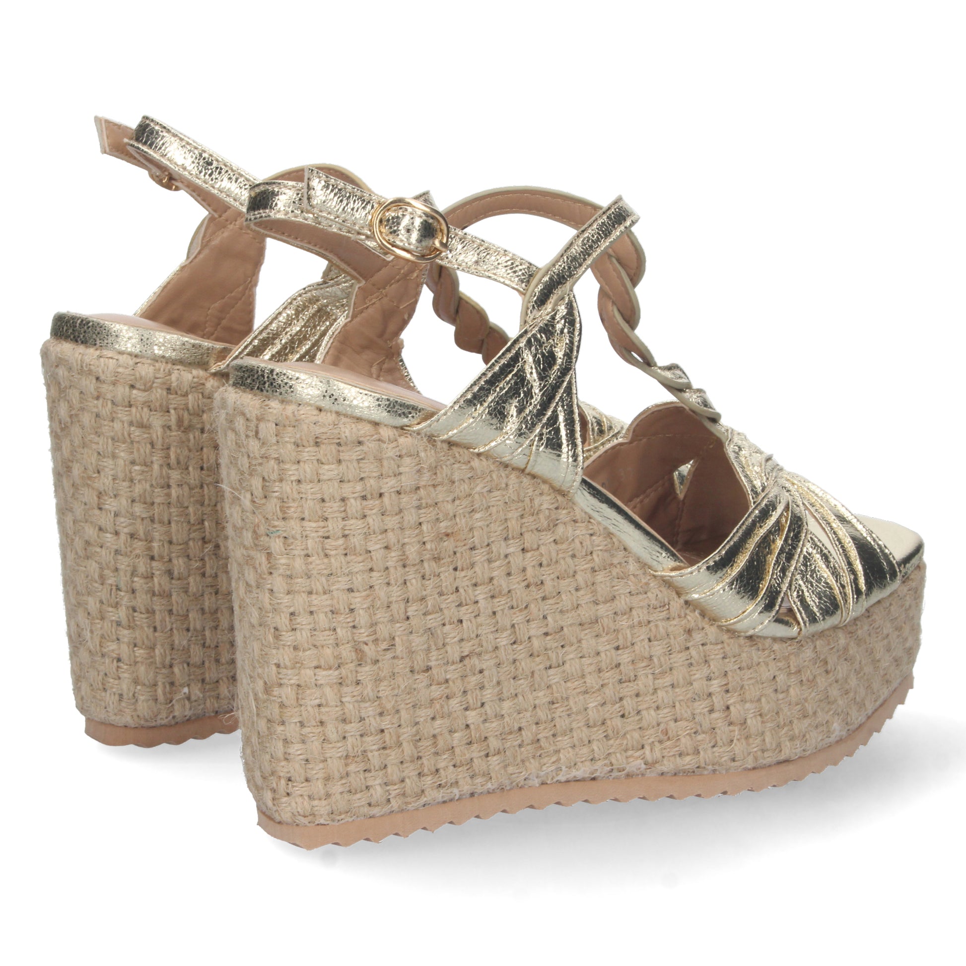 Sandalia de Cuña Alta para Mujer Comoda Abierta Forrada de Rafia Pala en T con Cierre de Hebilla