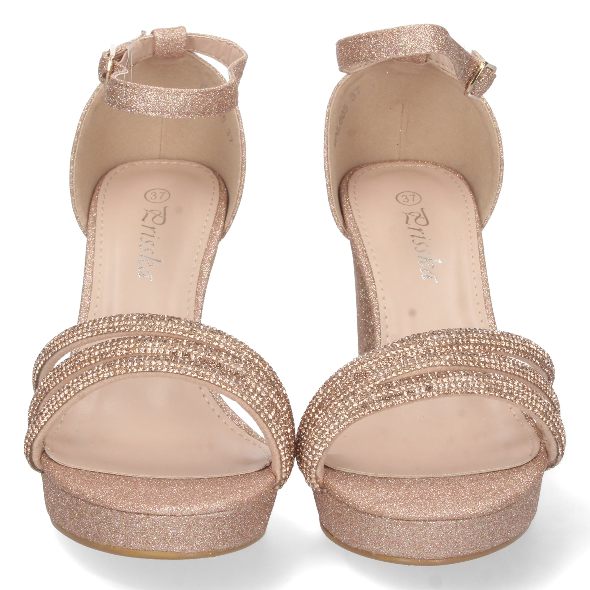 Sandalia de Tacon para Mujer Comoda de Material Brillante Pala con Strass y Cierre de Hebilla Otoño Invierno 2022
