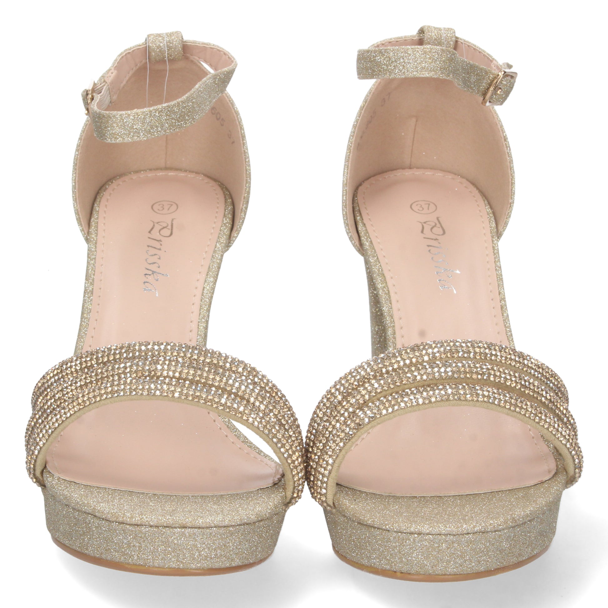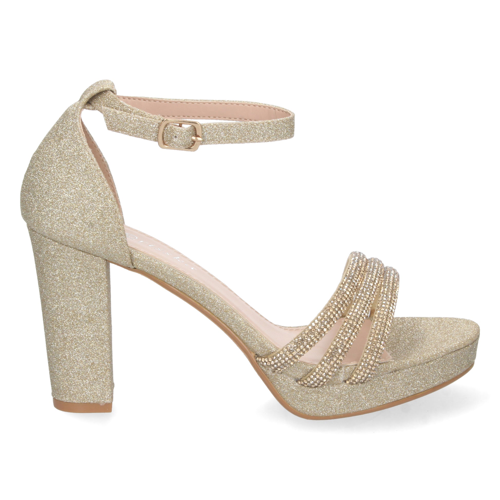Sandalia de Tacon para Mujer Comoda de Material Brillante Pala con Strass y Cierre de Hebilla Otoño Invierno 2022