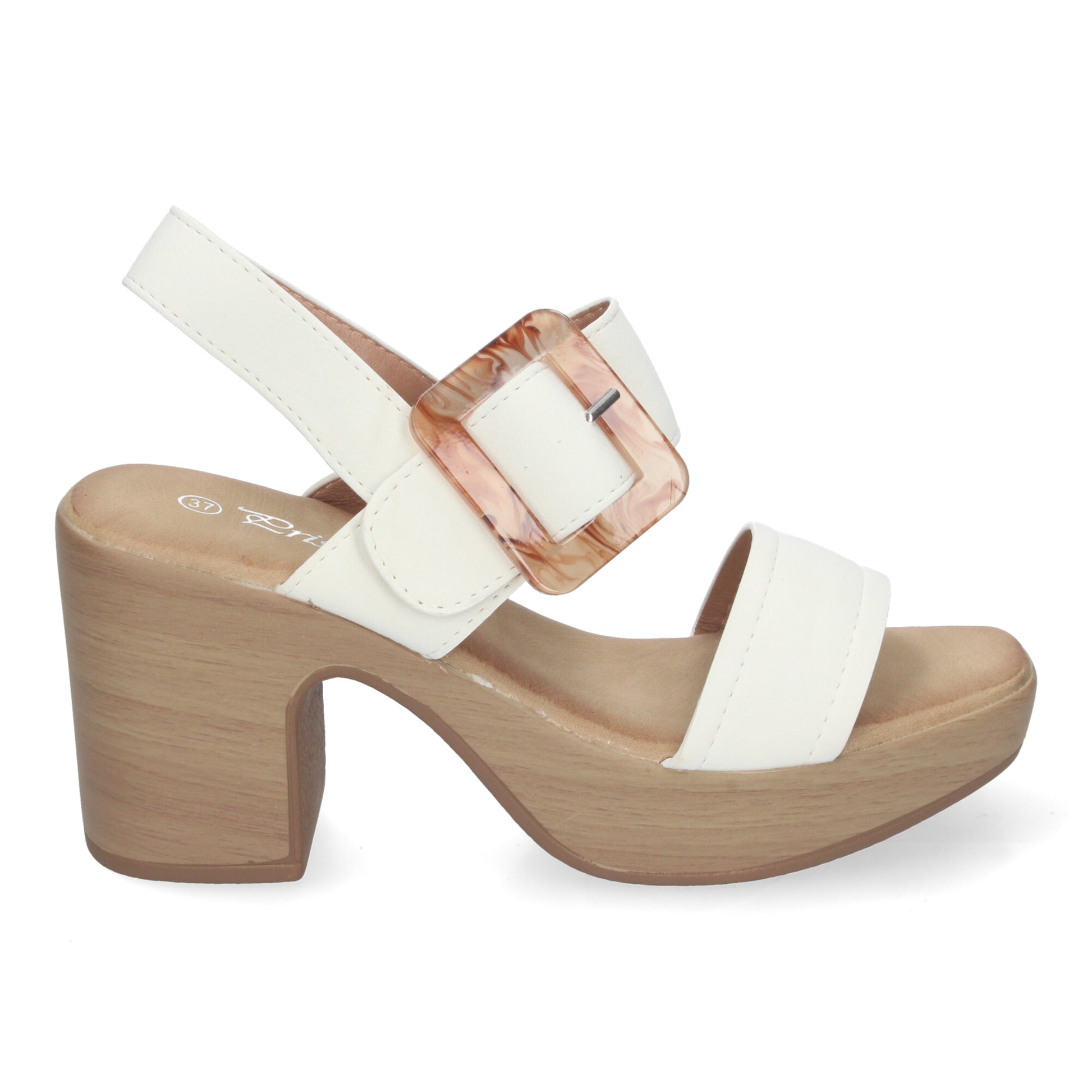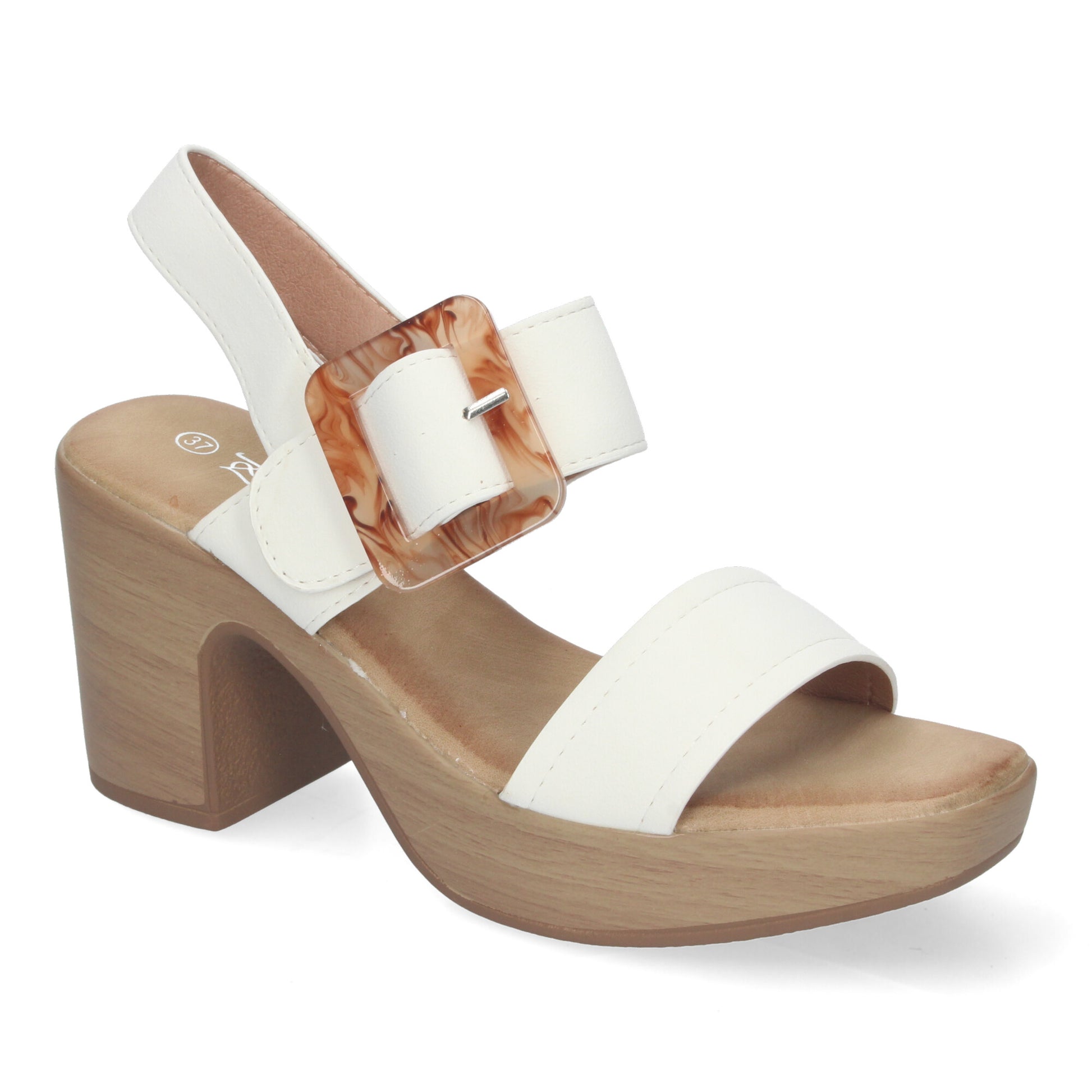 Sandalias de verano para mujer elegantes y cómodas con tacón de madera hebilla decorativa y puntera abierta.