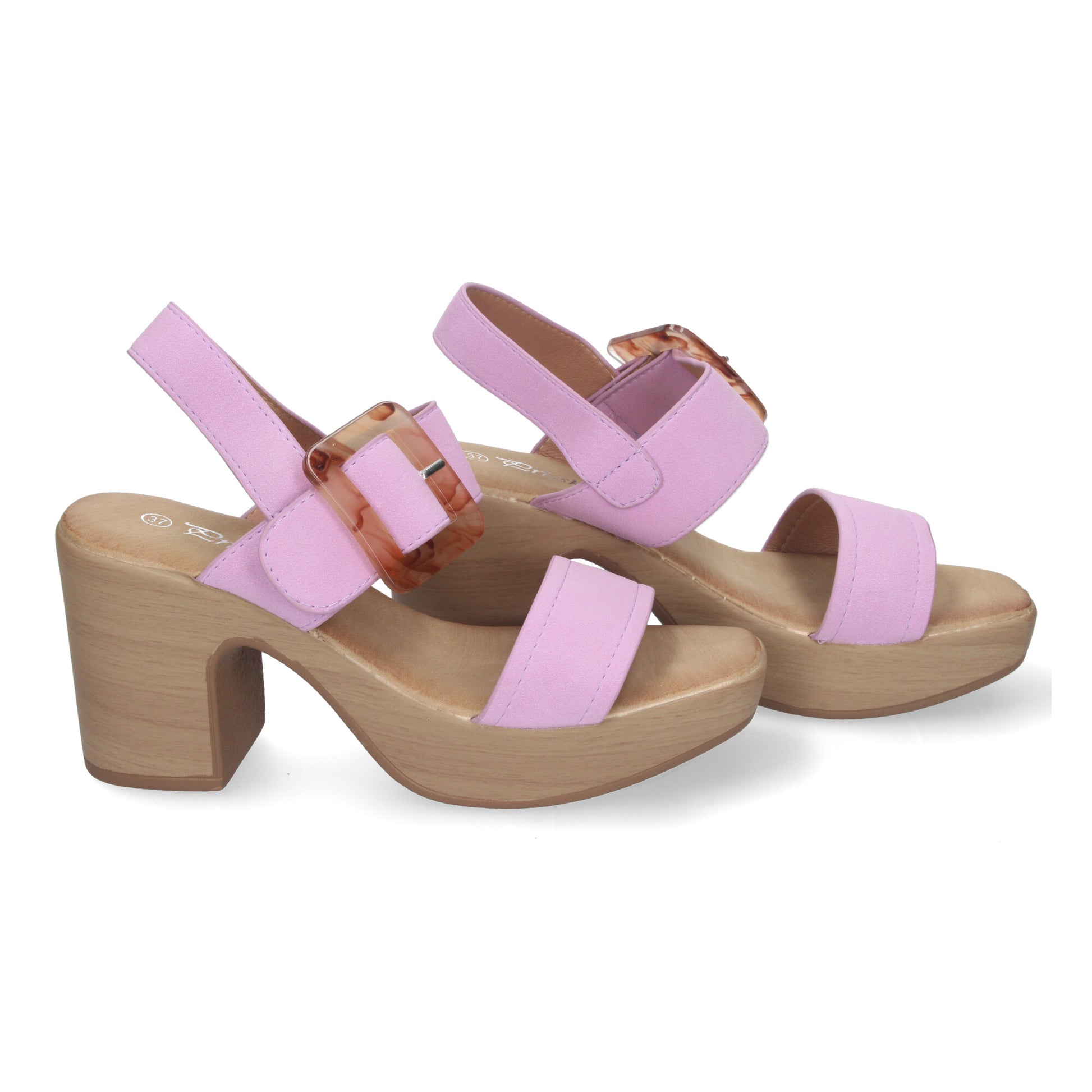 Sandalias de verano para mujer elegantes y cómodas con tacón de madera hebilla decorativa y puntera abierta.