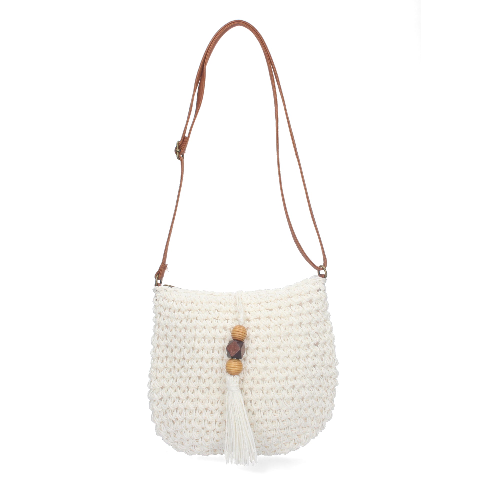Bolso de Hombro para Mujer con Material de Rafia Fleco y Cierre de Cremallera Primavera Verano 2023