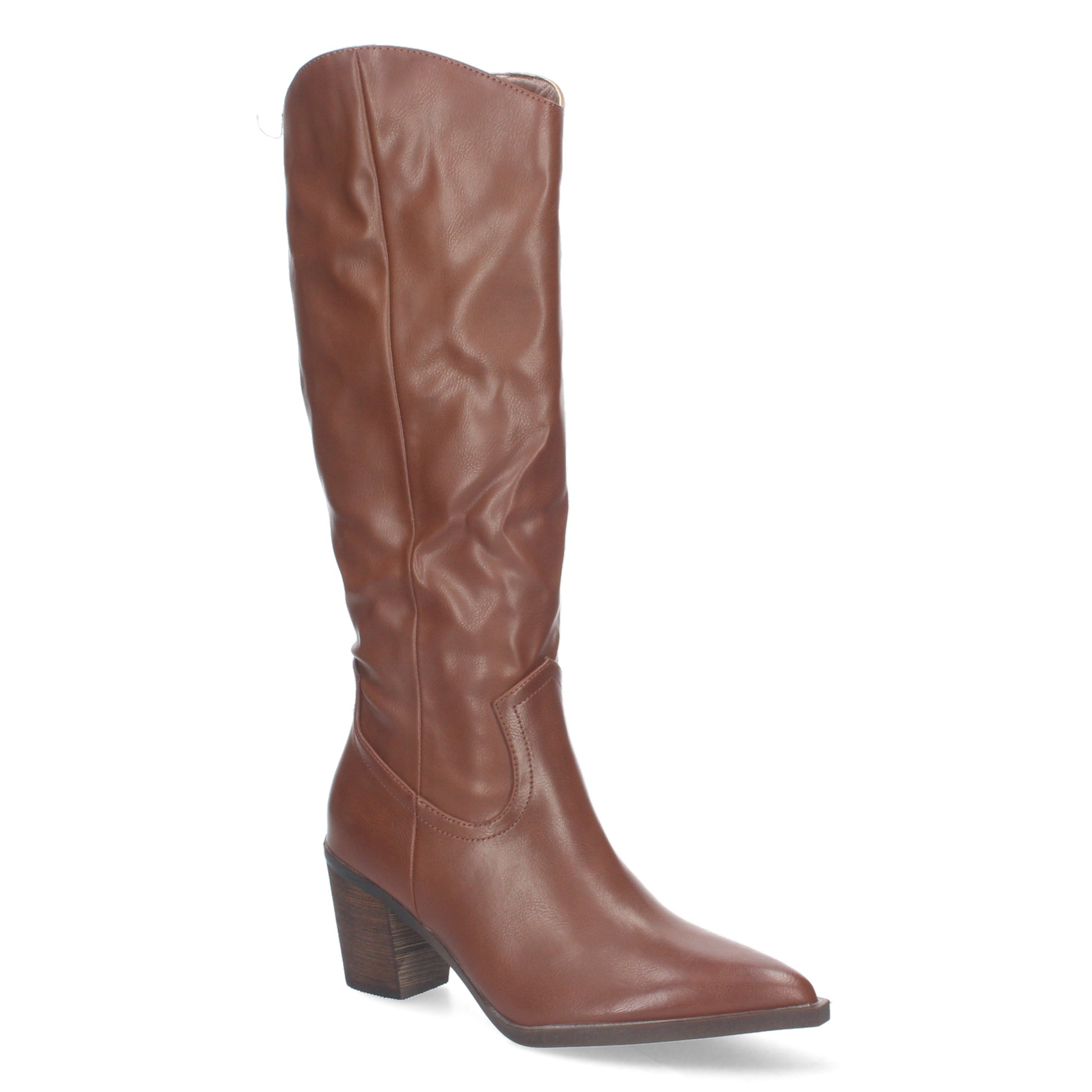 Bota campera lisa con caña arrugada polipiel punta fina con cierre de cremallera