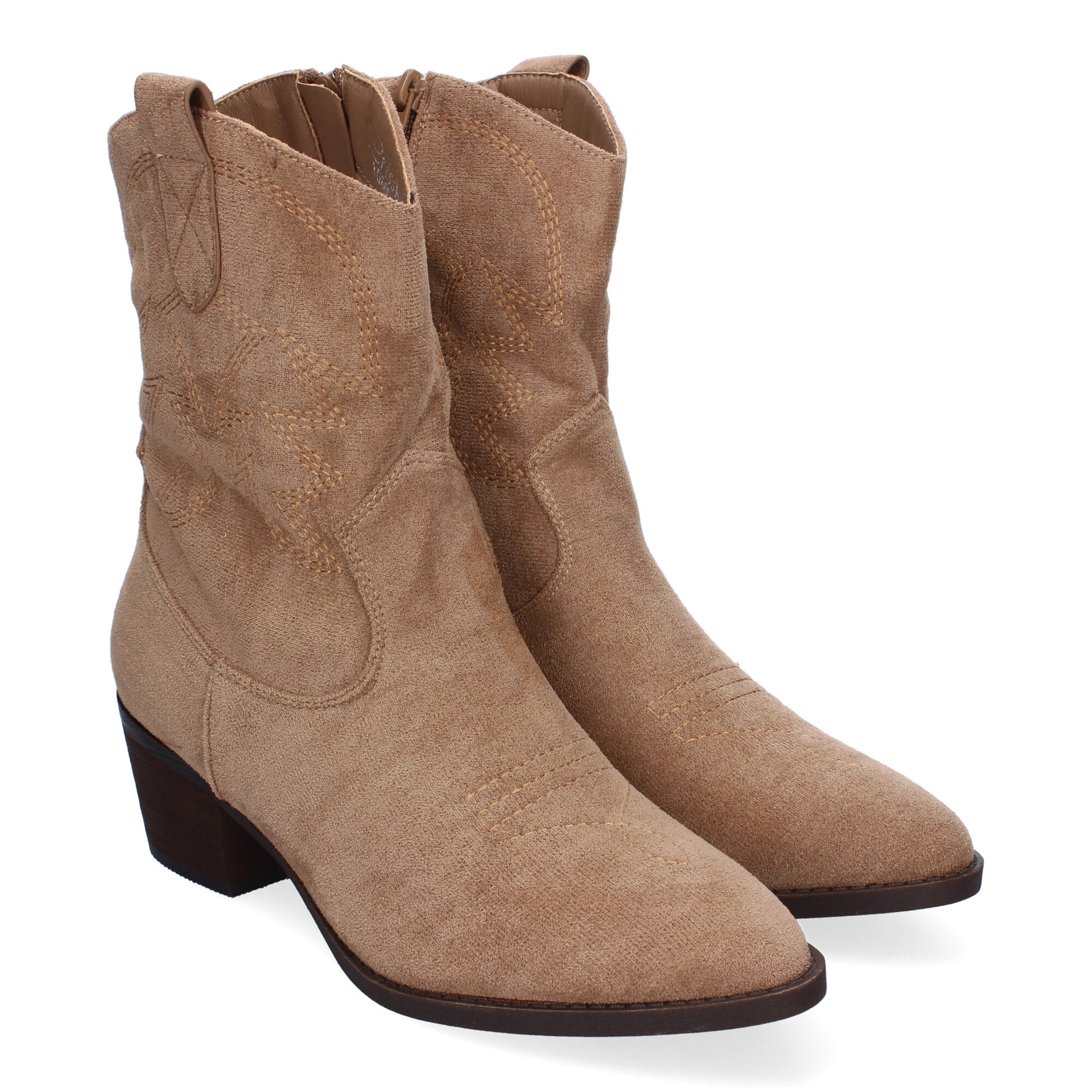 Botines de Tacón para Mujer Estilo Campero Detalles Bordados Comodos Elegantes y Cierre de Cremallera Lateral Ideales para cualquier Ocasión.