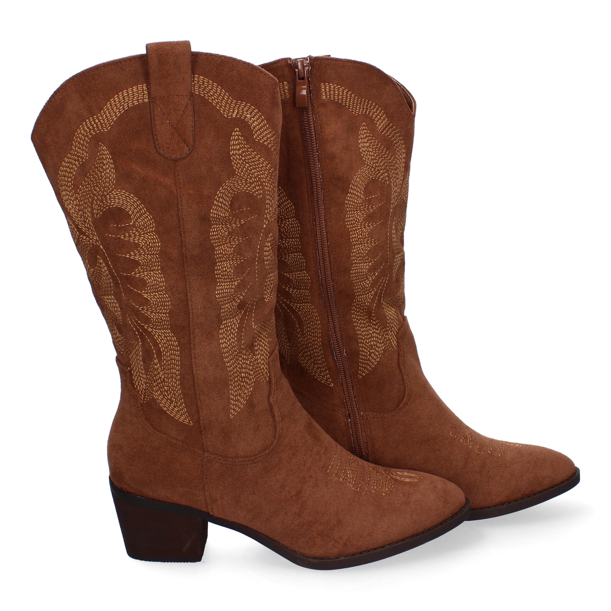 Bota de Tacón Campero para Mujer Comodas y Elegantes Diseño Bordado en la Caña Punta Redonda y Cierre de Cremallera.