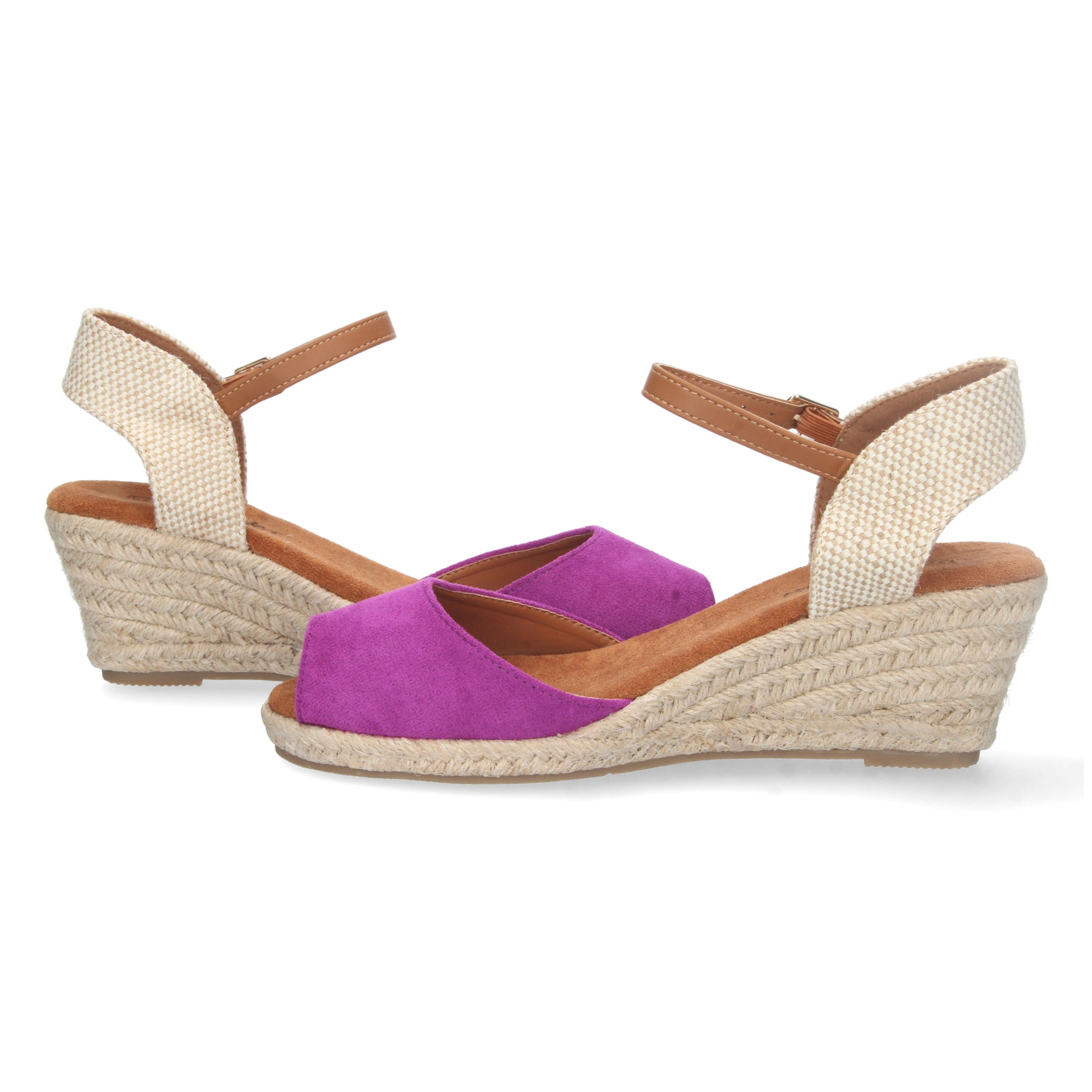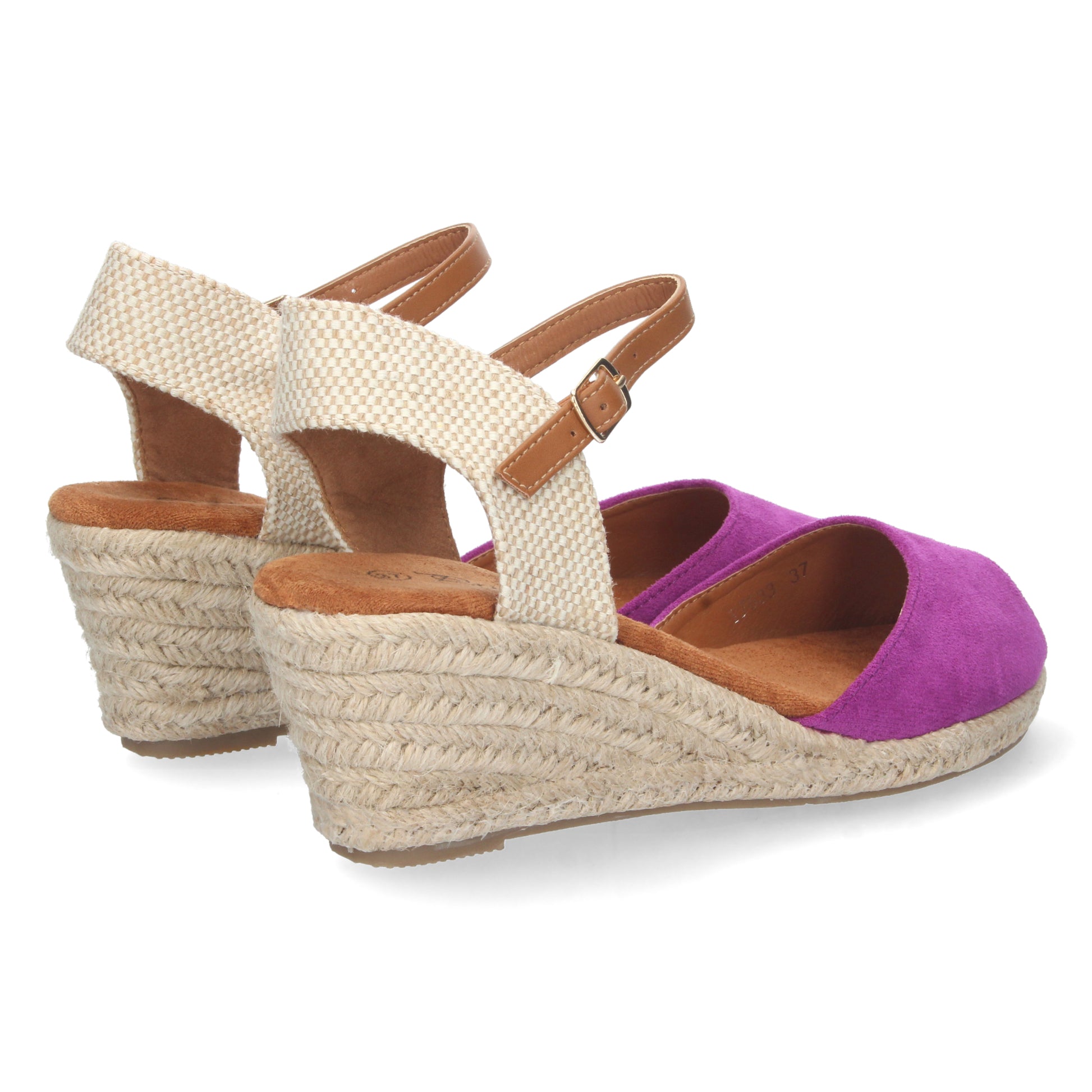 Sandalia de Cuña para Mujer Estilo Valenciana Forrada de Yute Pala Abierta y Cierre de Hebilla Primavera Verano 2023