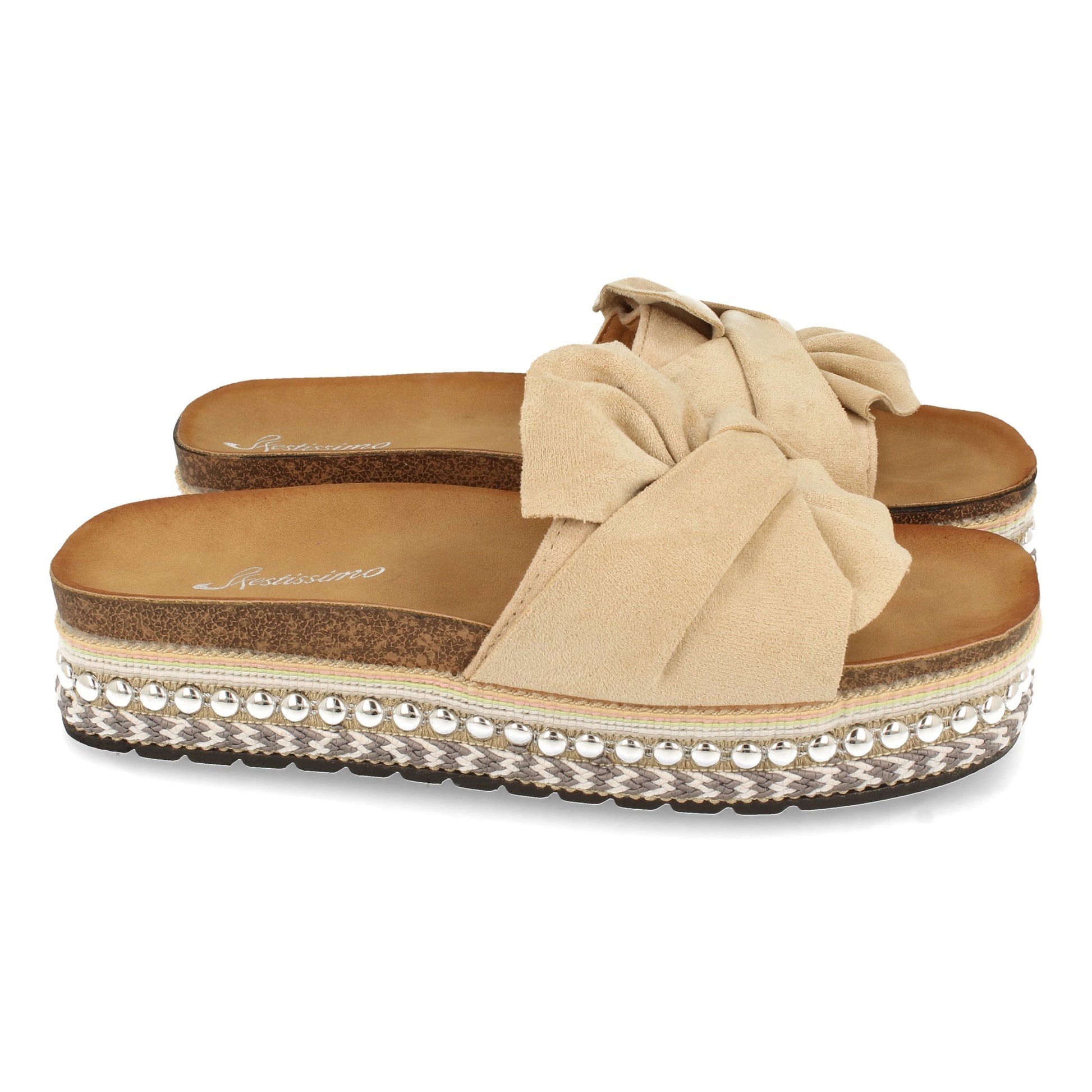 Sandalia Plana para Mujer Comodas Decorado con Motivo Etnico Planta Bio Anatomica y Lazo en Pala Primavera Verano 2021