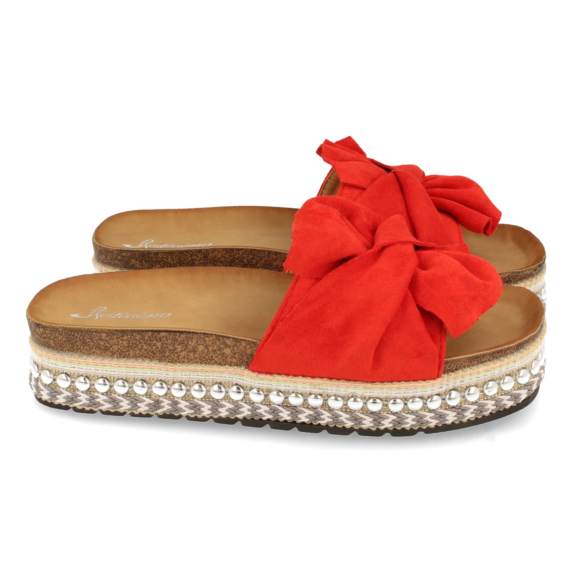 Sandalia Plana para Mujer Comodas Decorado con Motivo Etnico Planta Bio Anatomica y Lazo en Pala Primavera Verano 2021