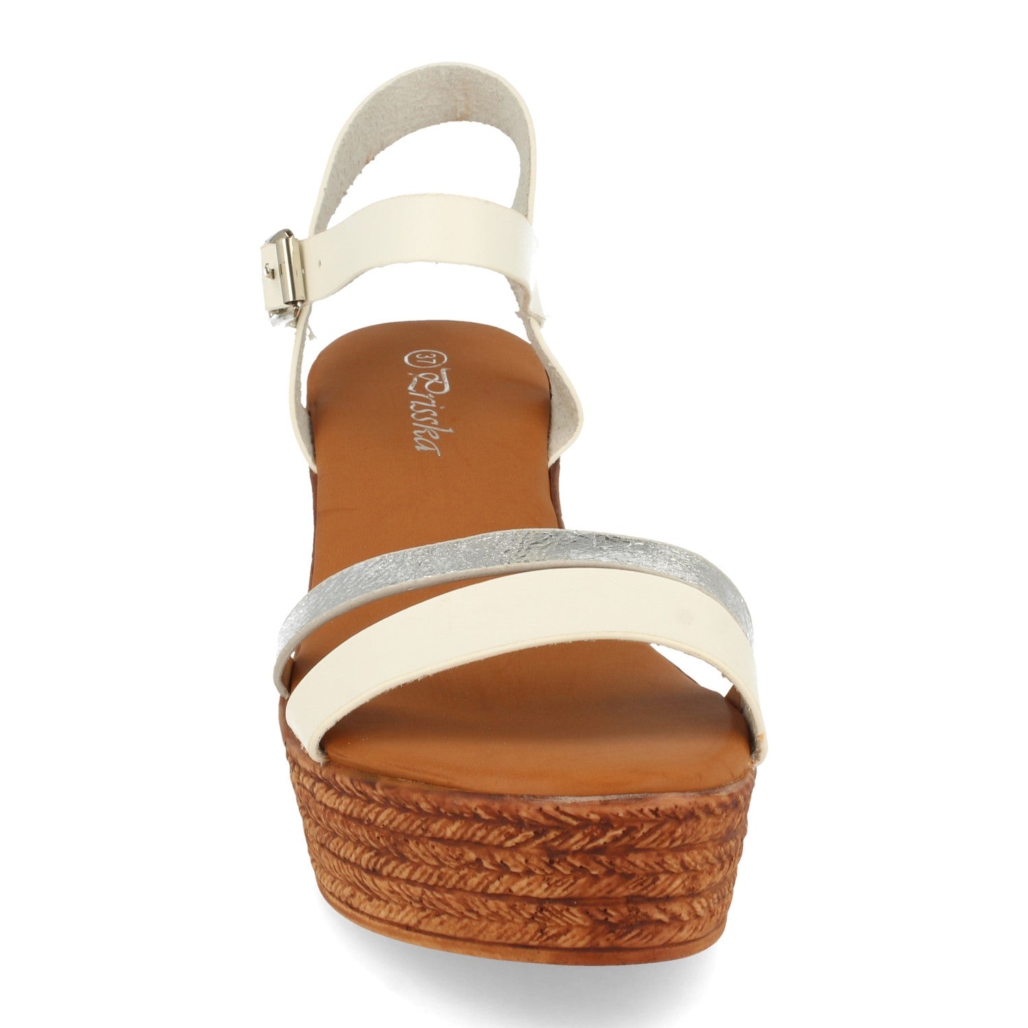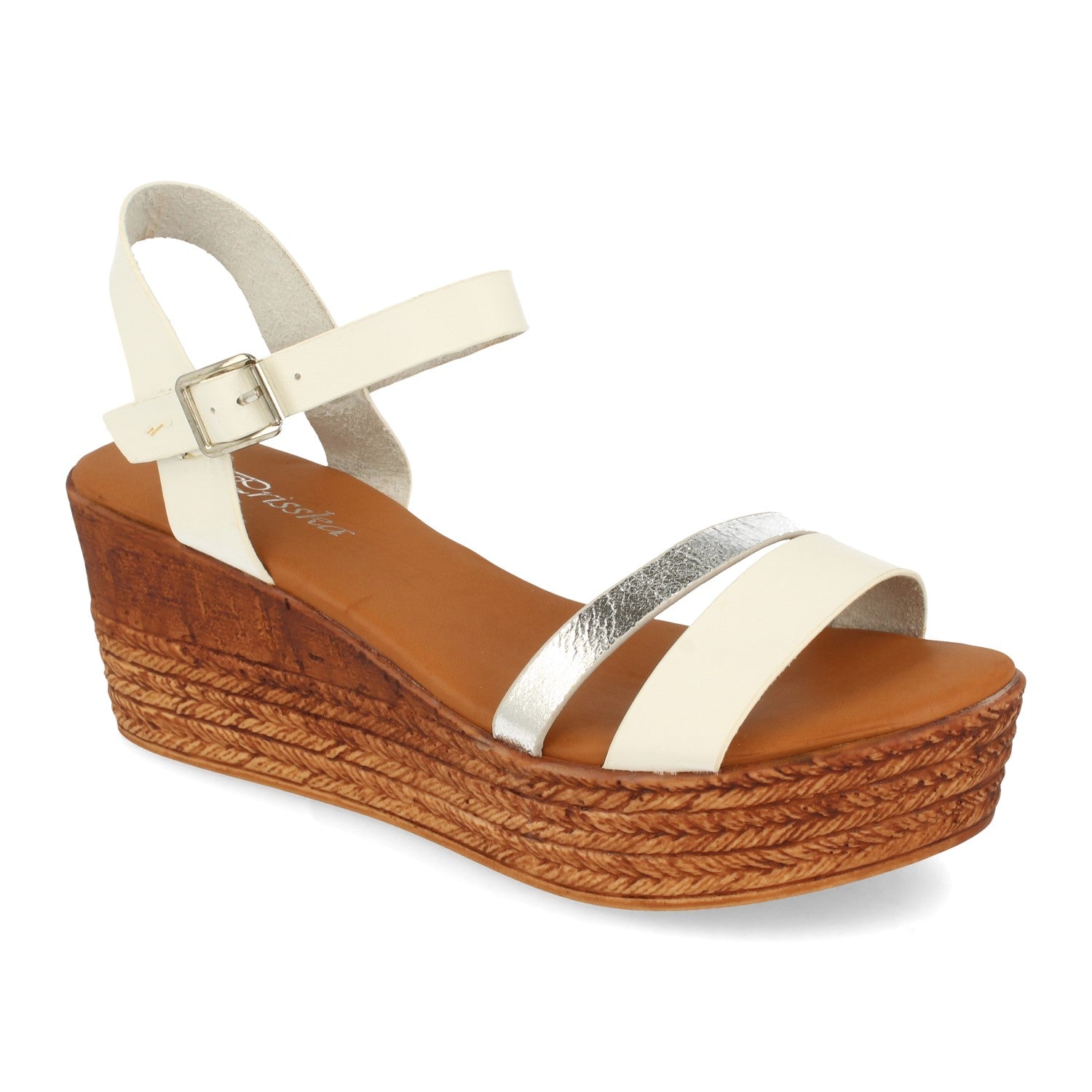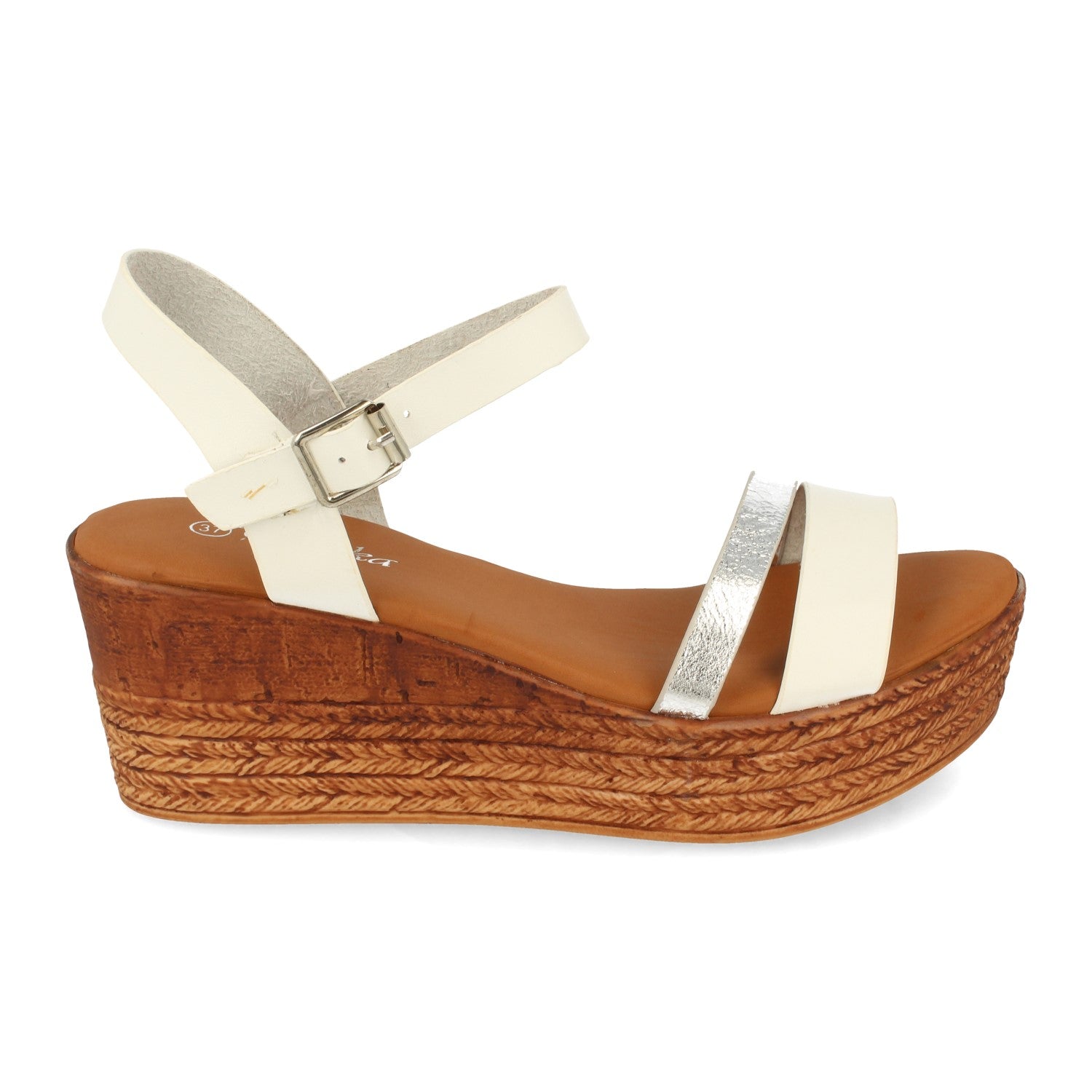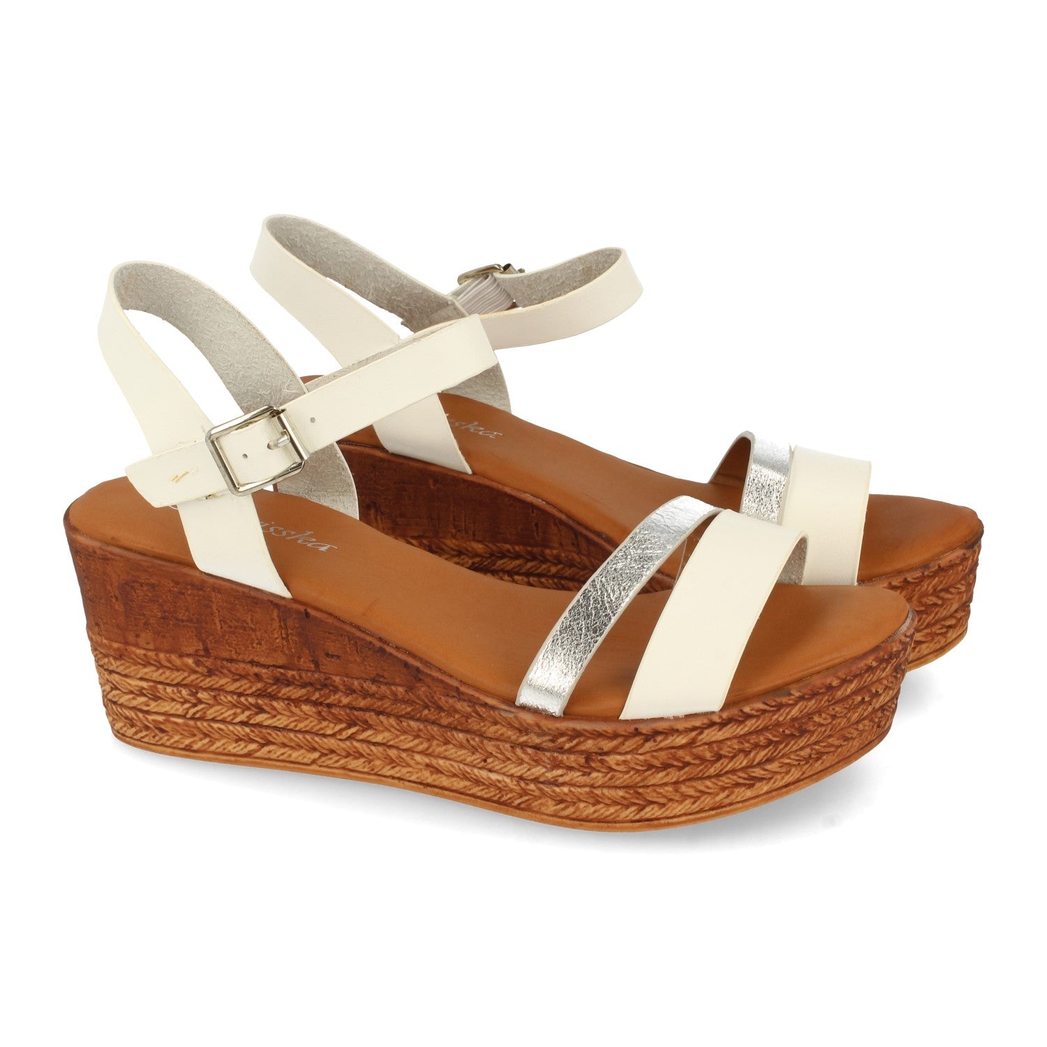 Sandalia de Cuña para Mujer con Falso Yute y Cierre de Hebilla en el Tobillo Primavera Verano 2021