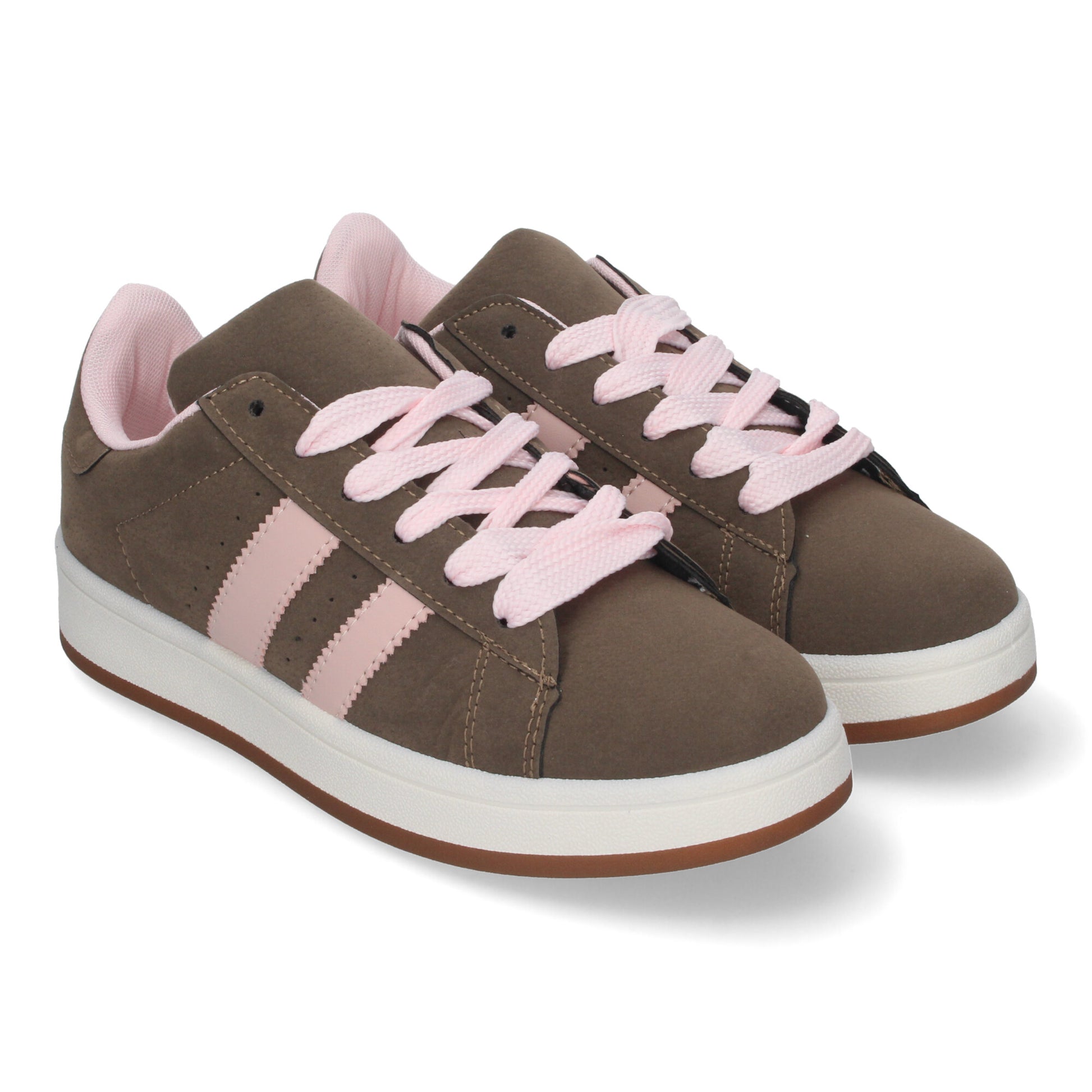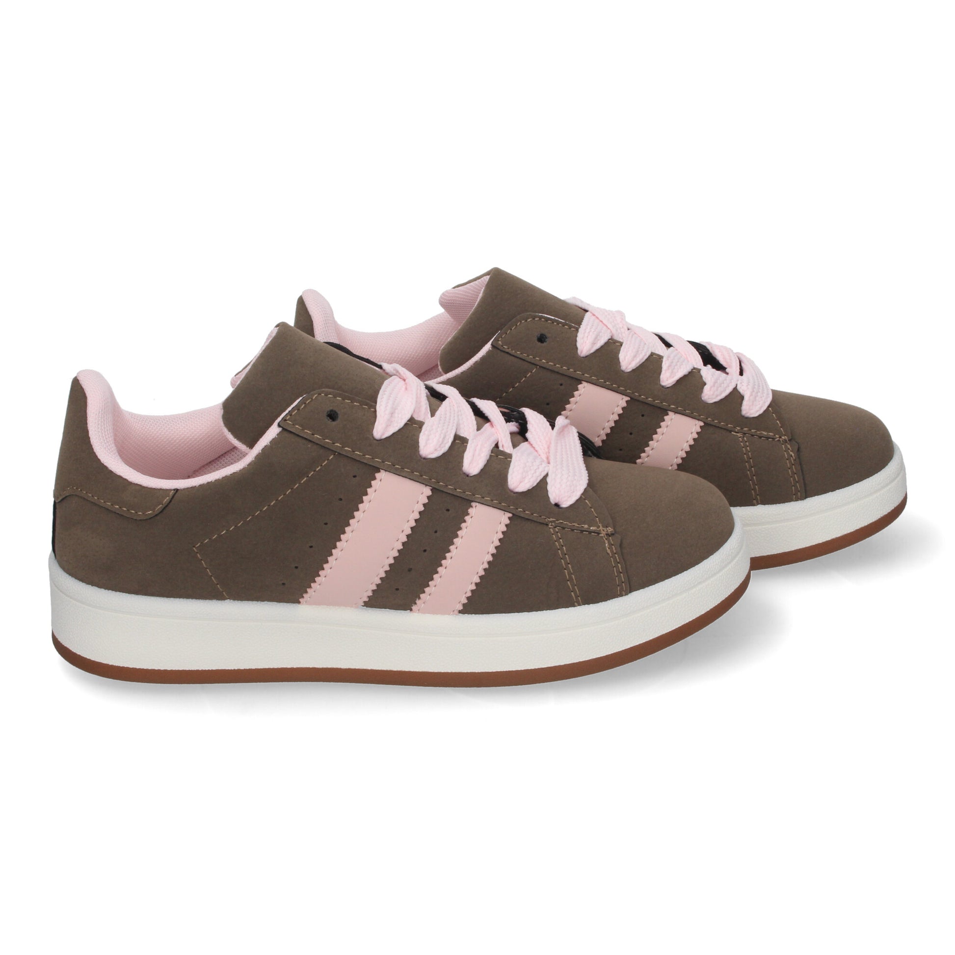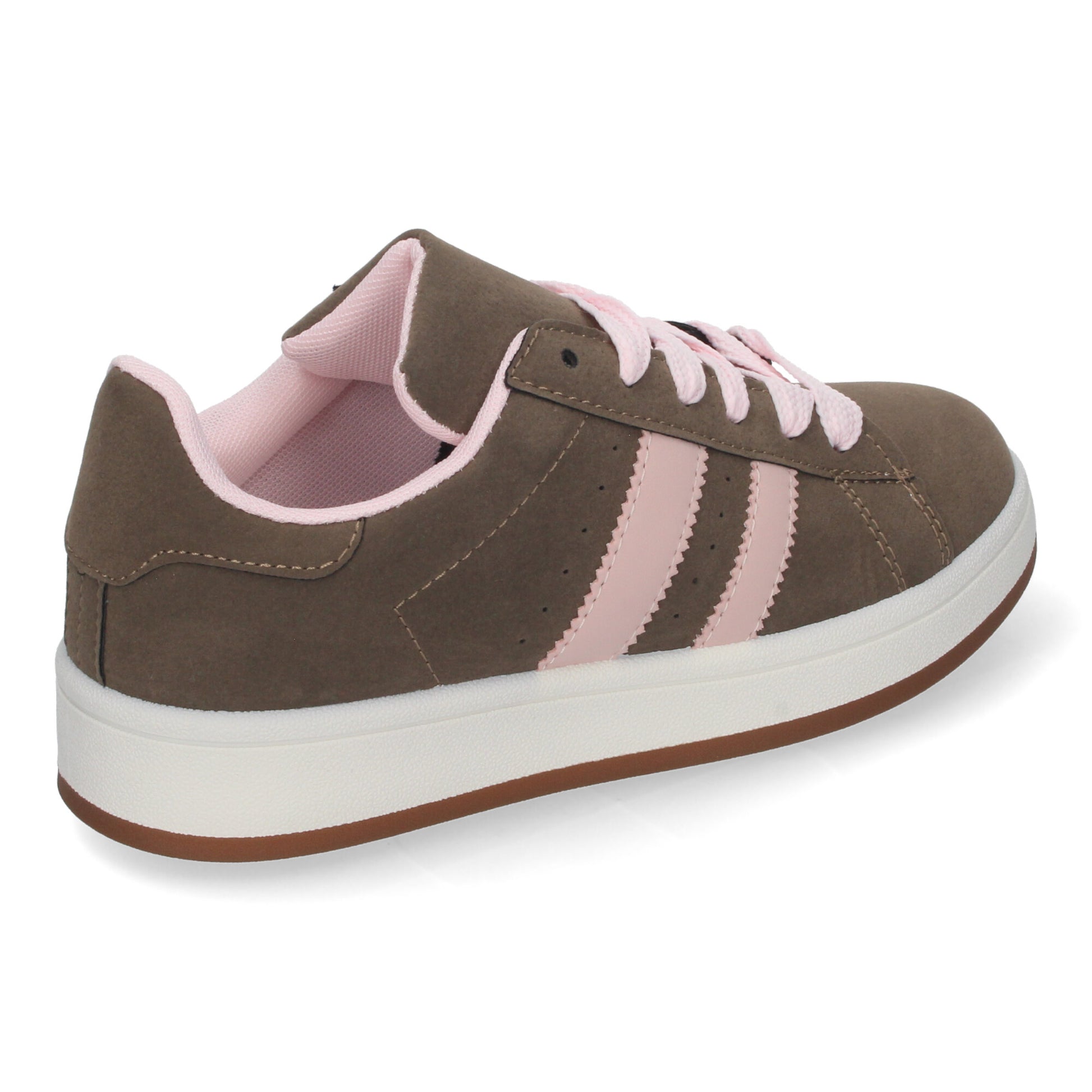 Zapatillas Deportivas Planas Estilo Casual para Mujer Cierre de Cordones y Detalle de Franjas Laterales.