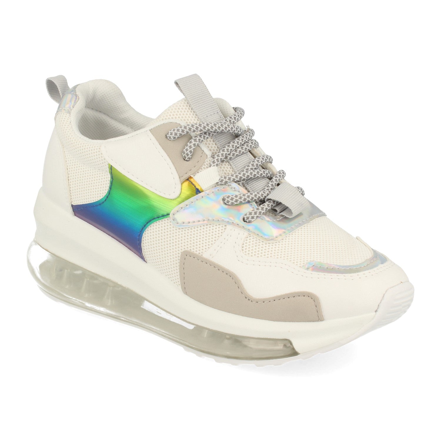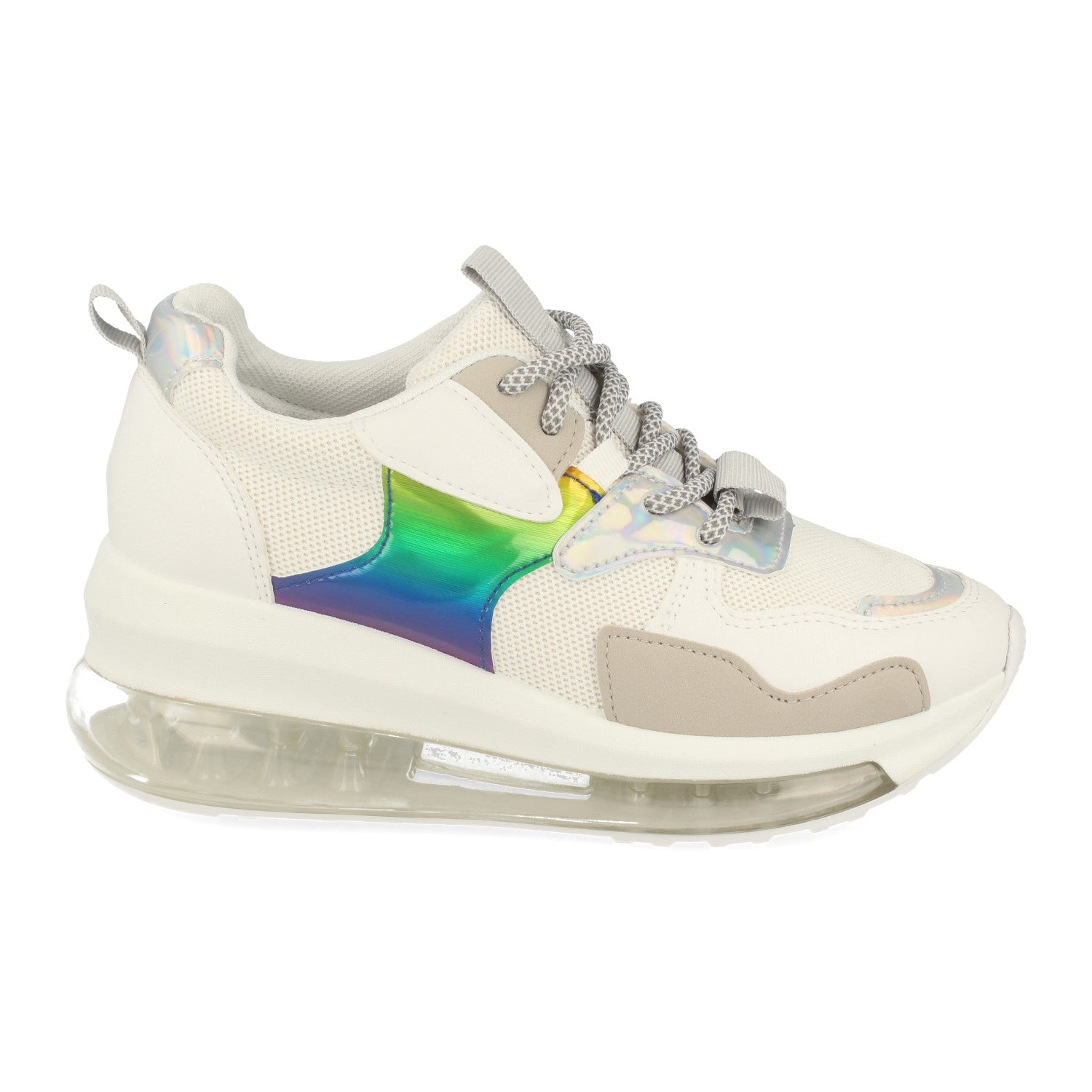 Sneakers de Cuña para Mujer Estilo Casual Brillante con Rejilla Piso Transparente con Color y Cierre de Cordones Primavera Verano 2020