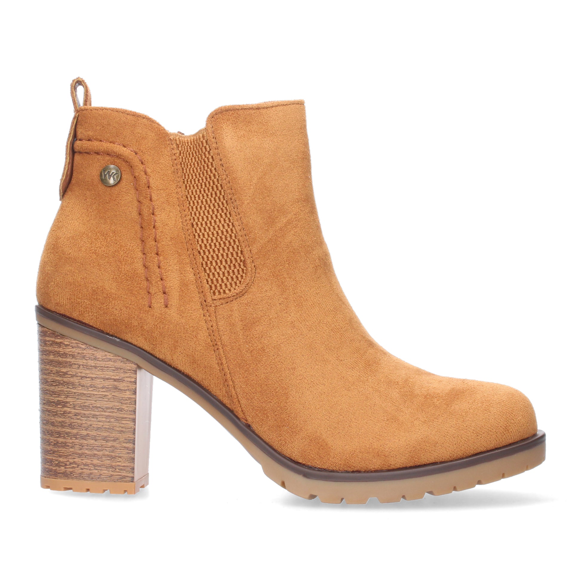 Botin de Tacon Ancho para Mujer adorno de tachuela material elastico Cierre de Cremallera.