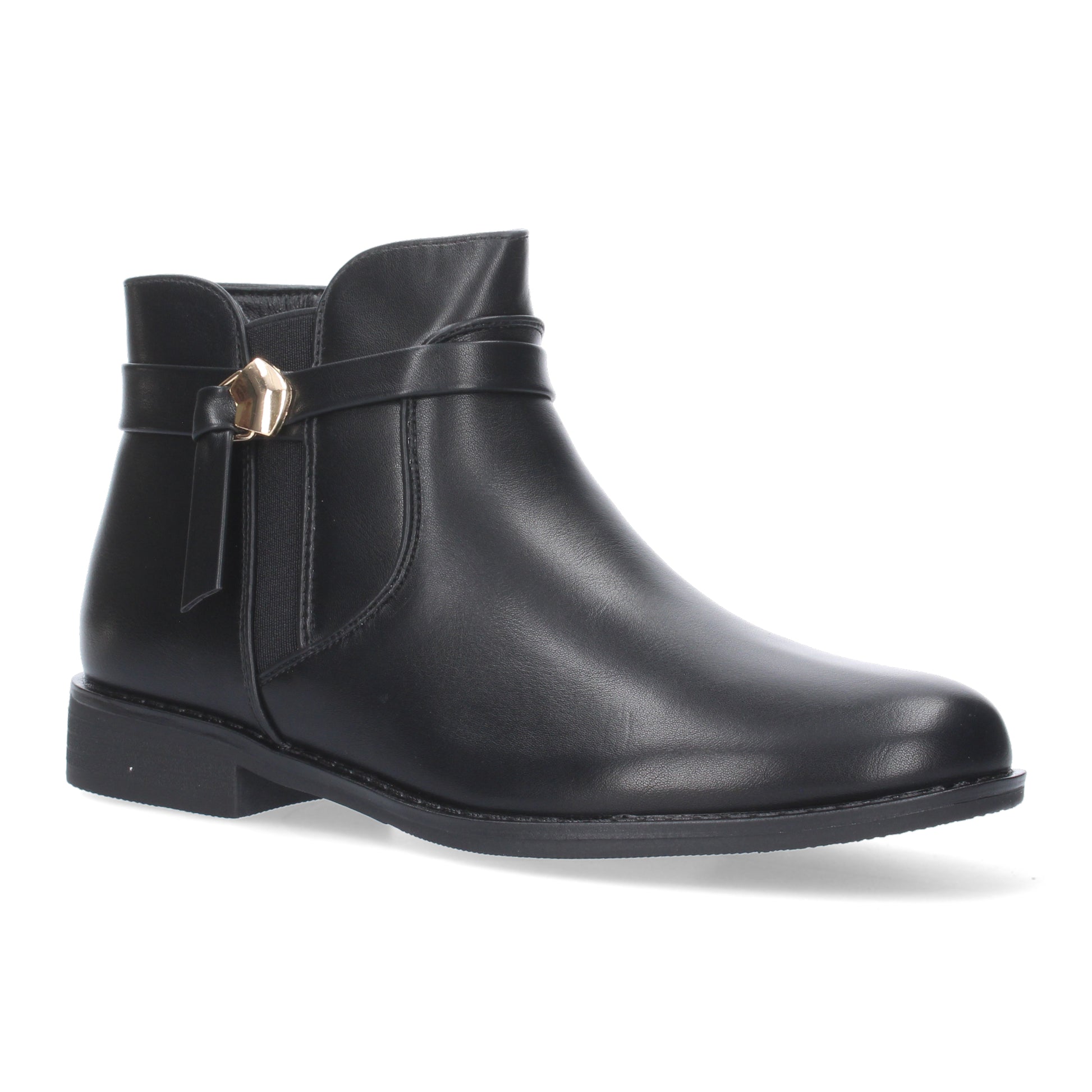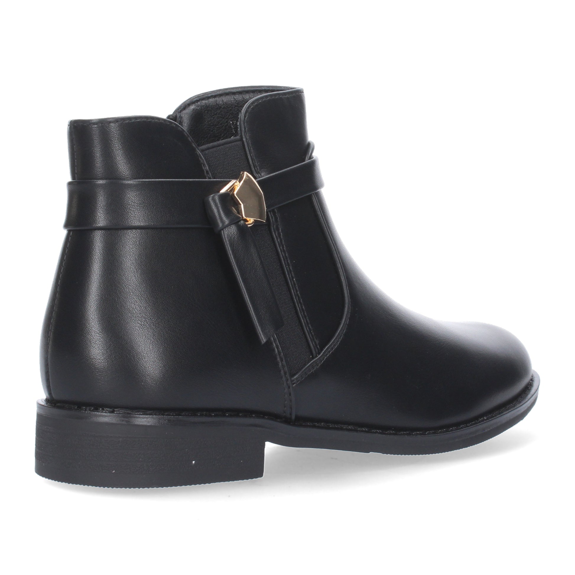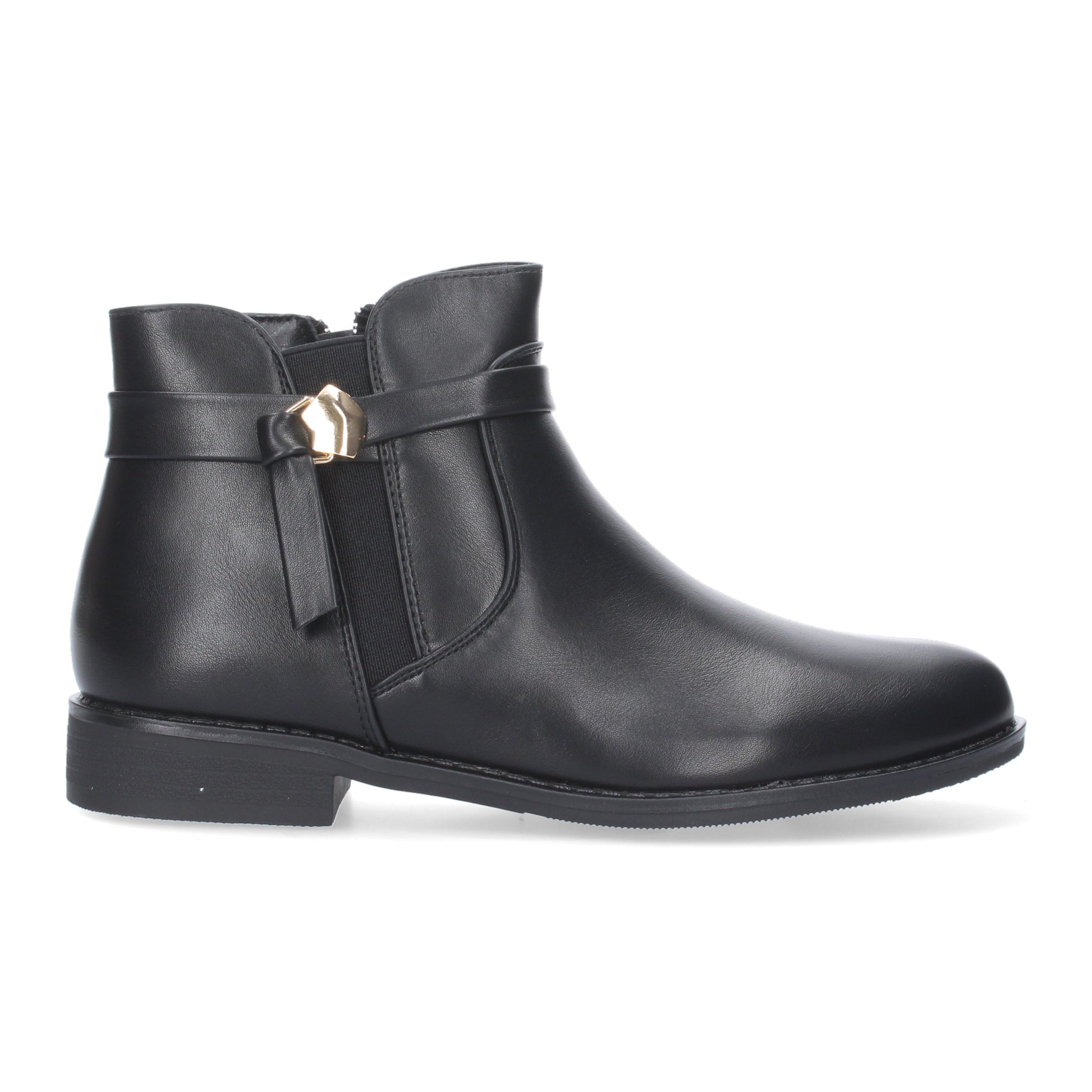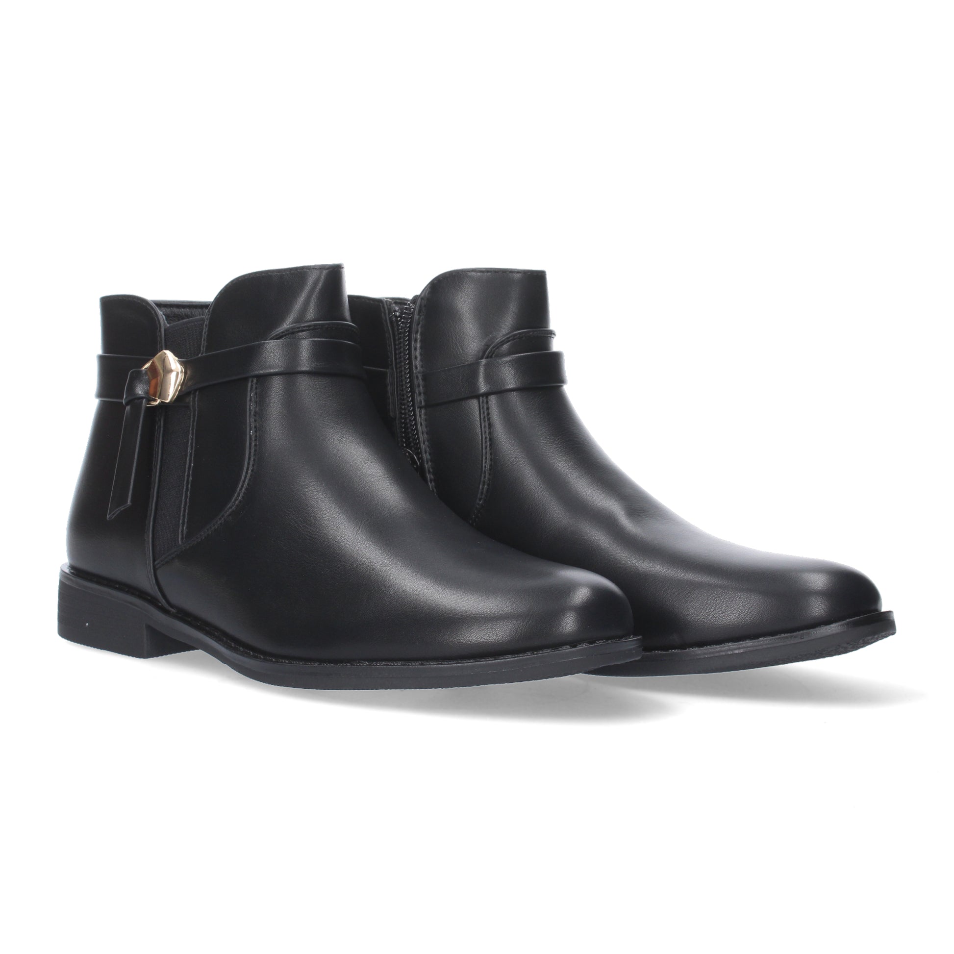Botin de Tacon Ancho para Mujer material elastico Cierre de Cremallera y Cierre de Hebilla.