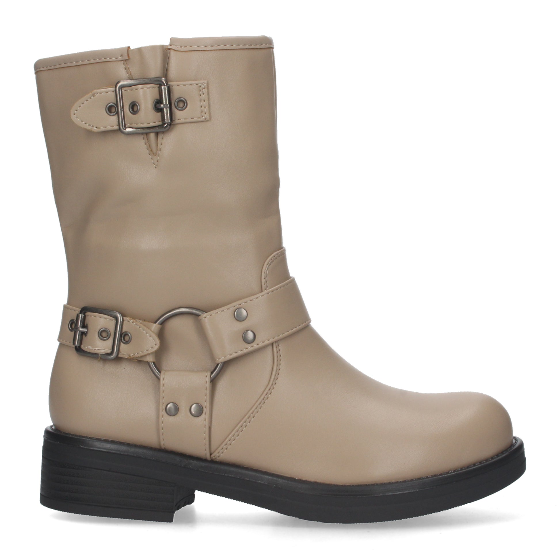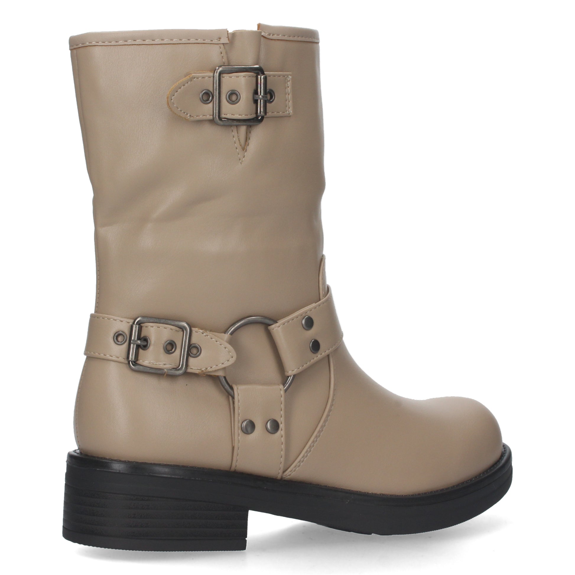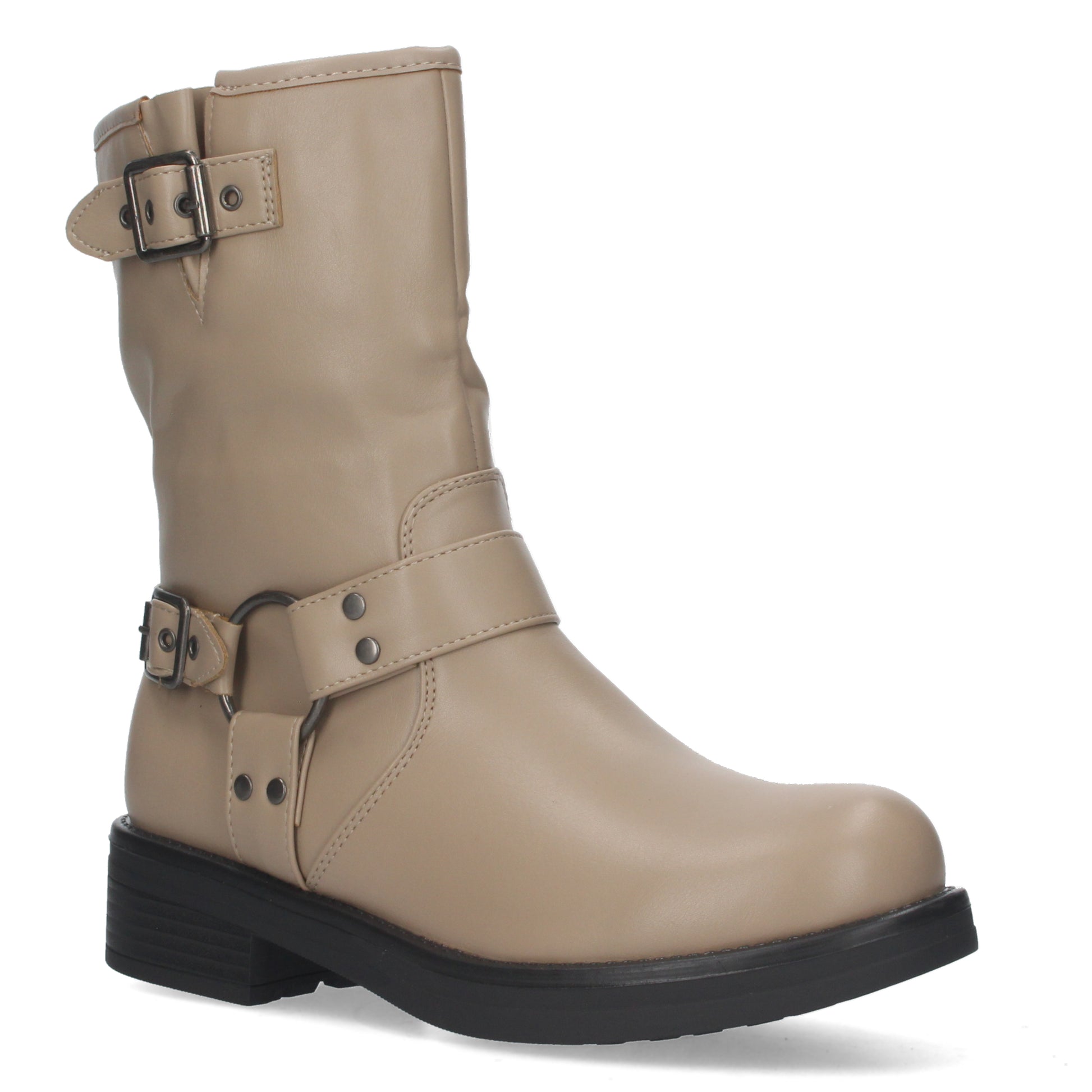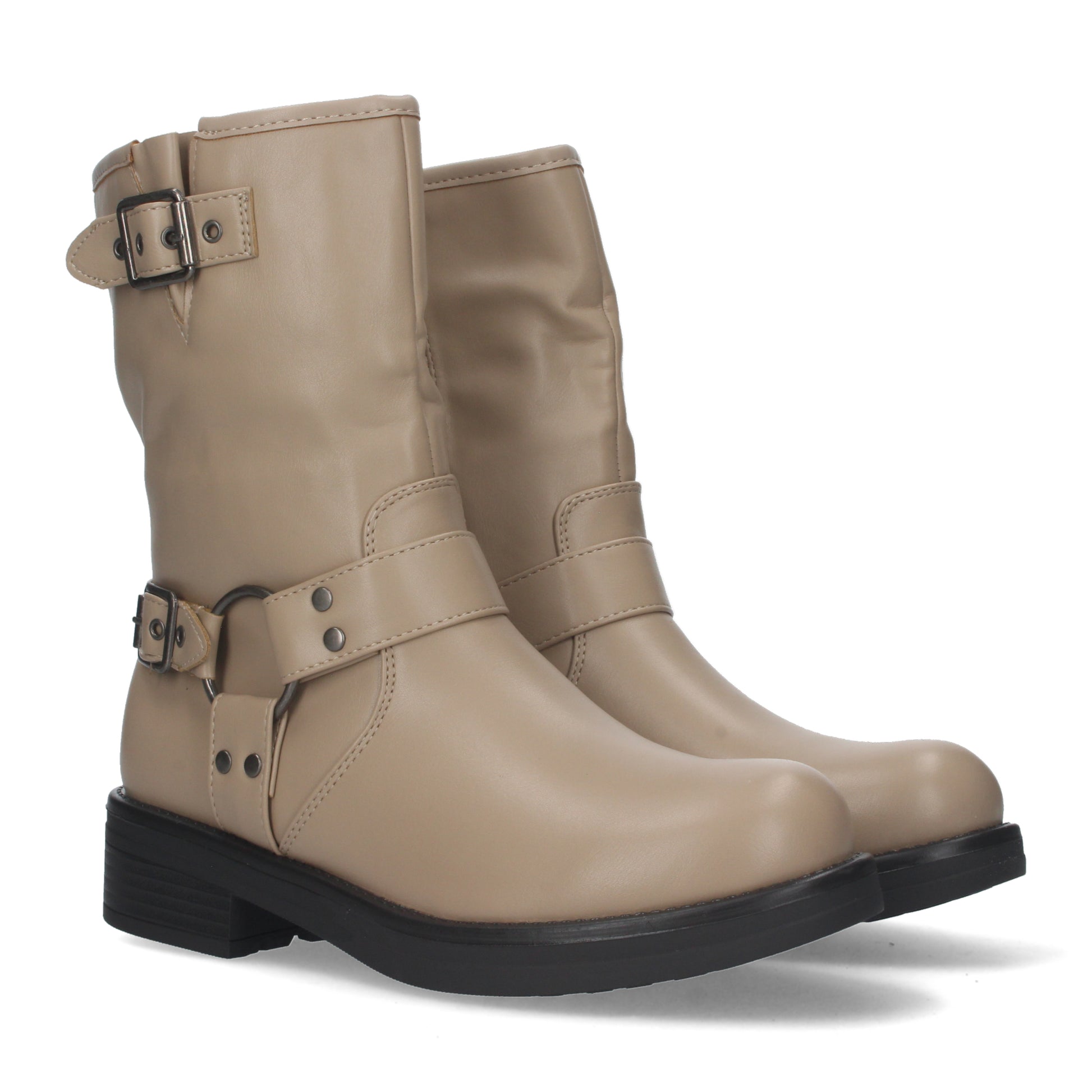 Botines Moteros de Diseño Liso con Tacon Bajo Adorno al Tono en el Tobillo y Caña de 19cm con Hebilla y Cierre de Cremallera Ideales para ir de Ruta en Otoño e Invierno