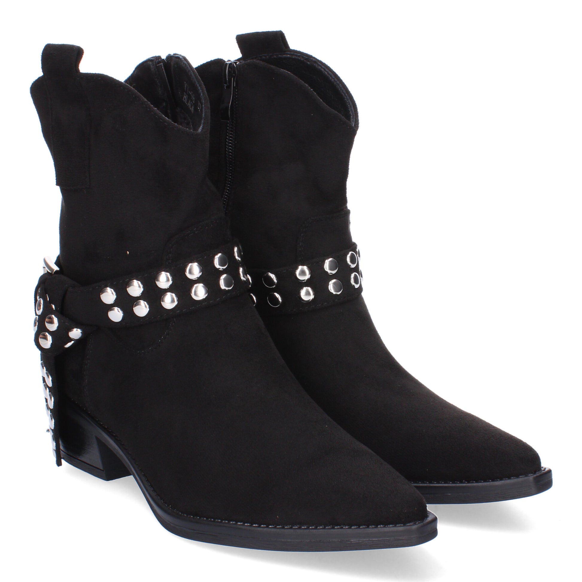 Botín de Tacón para Mujer Estilo Campero Comodas y Elegantes con Hebilla Decorativa y Tachuelas Diseño Moderno y Versátil.