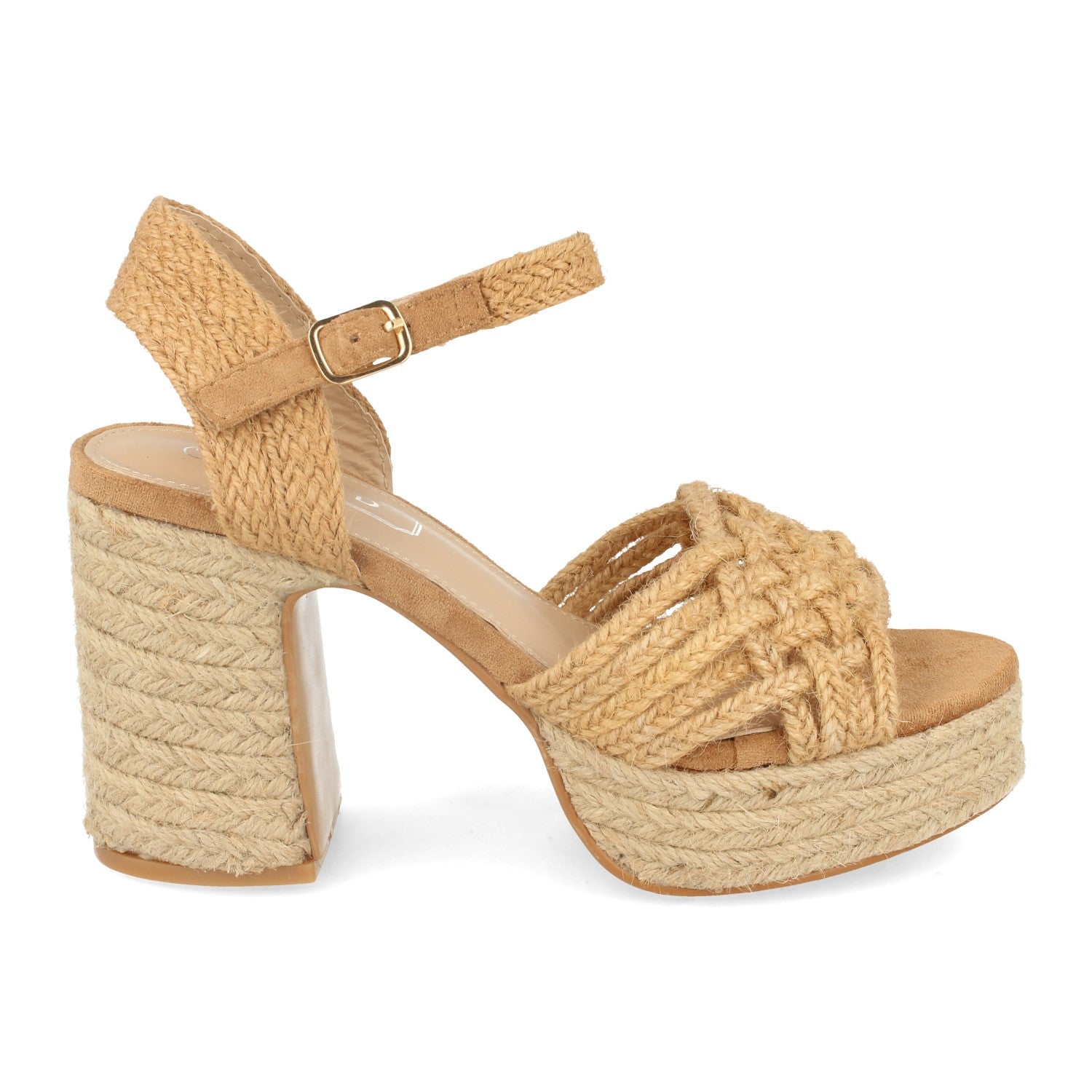 Sandalia de Tacón y Plataforma con Yute Talon Abierto de Rafia Pala Entrelazada y Cierre de Hebilla Primavera Verano 2020
