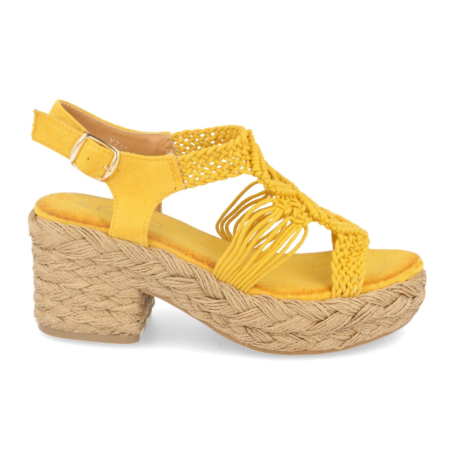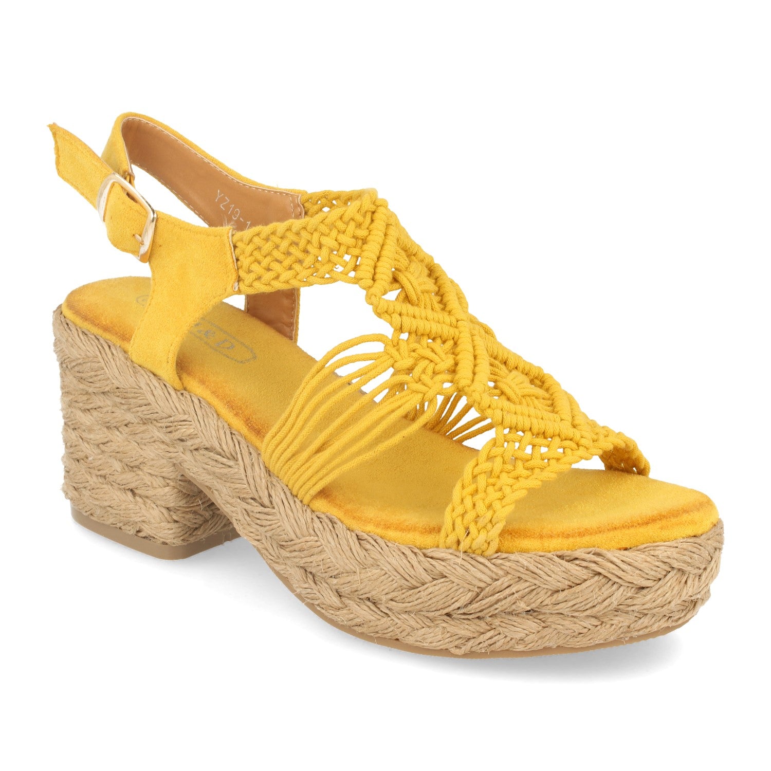 Sandalia con Tacón y Plataforma de Yute Correa en T Pala con Cordones y Cierre de Hebilla Primavera Verano 2020