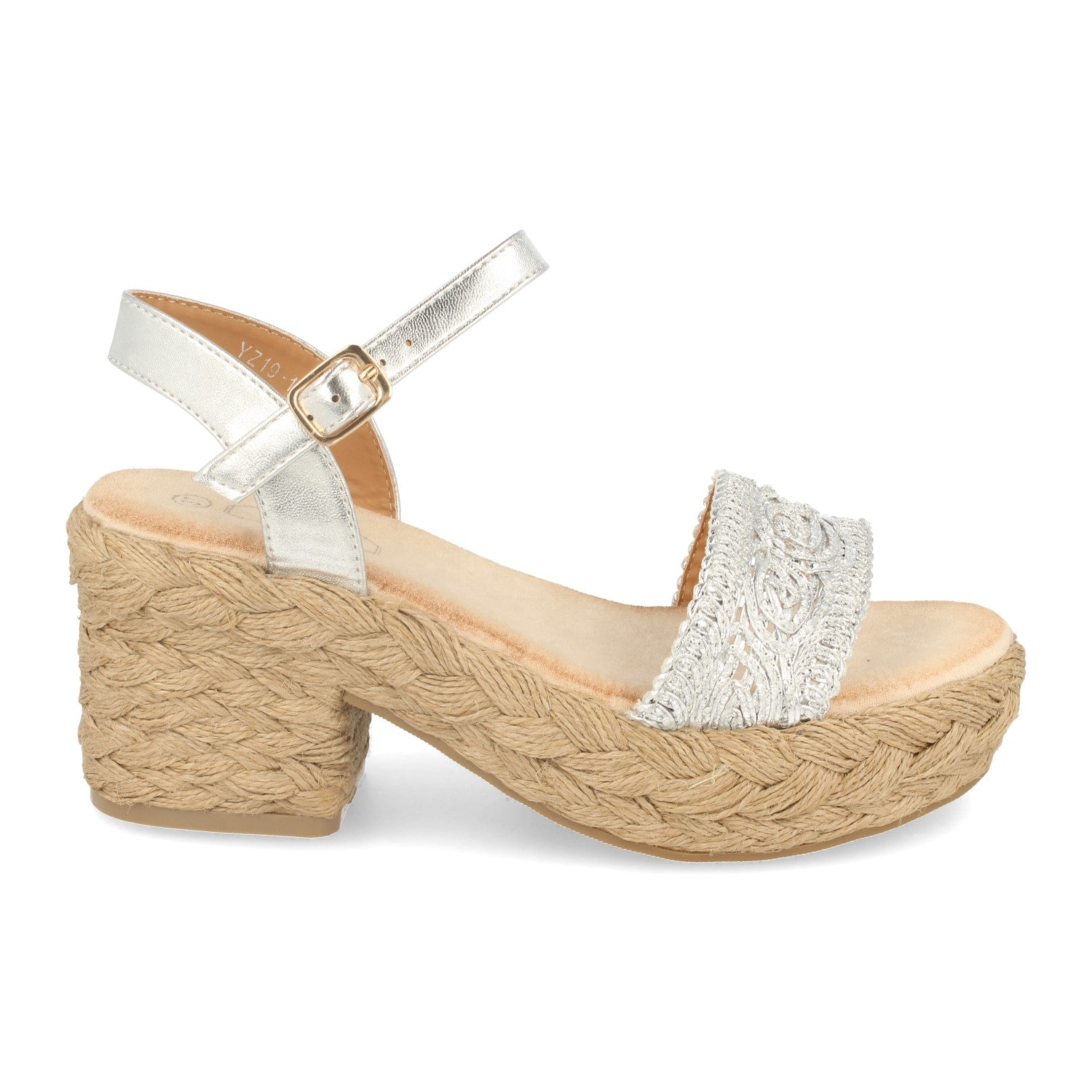 Sandalia con Tacón y Plataforma de Yute Estilo Ankle Strap Tiras Cosidas en Pala que dan un Toque Muy Bonito y Cierre de Hebilla Primavera Verano 2020