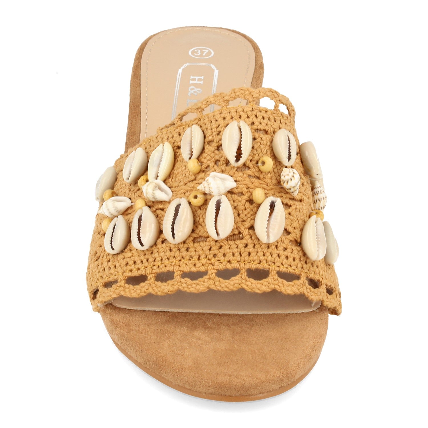 Sandalia de Tacón para Mujer Adornado con Conchas en Pala de Talon Abierto Primavera Verano 2020