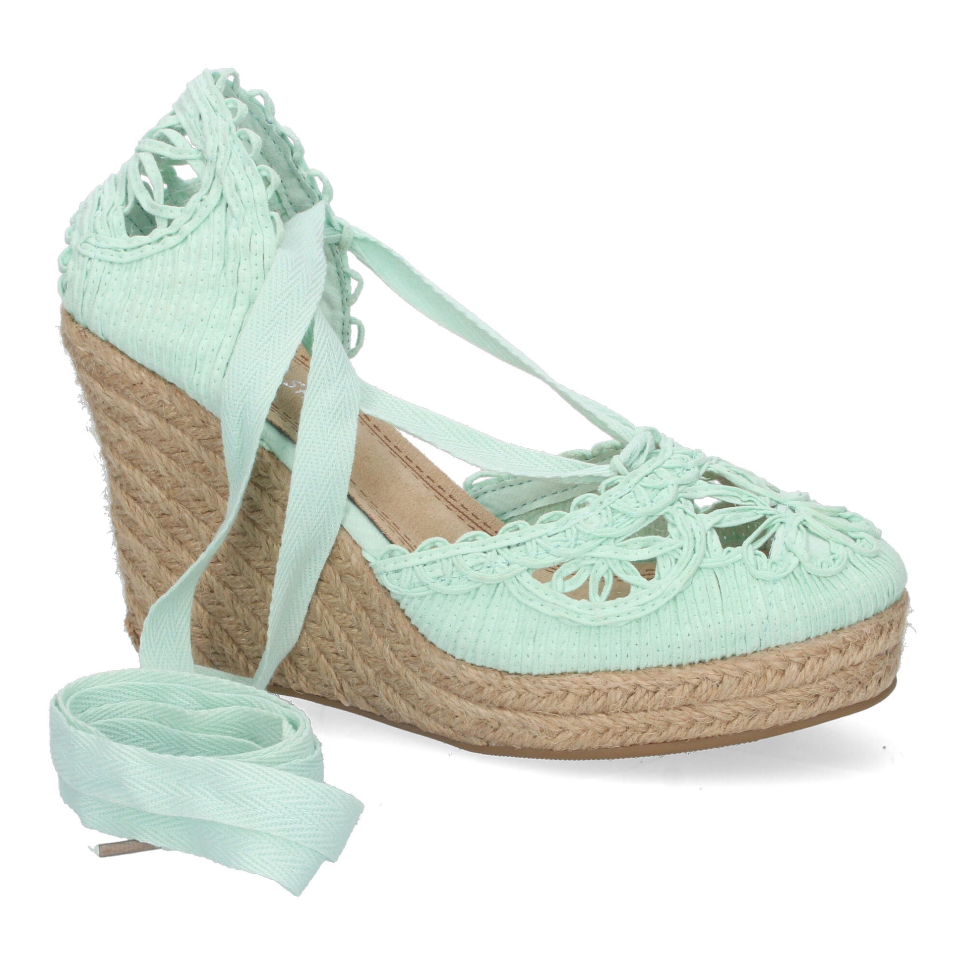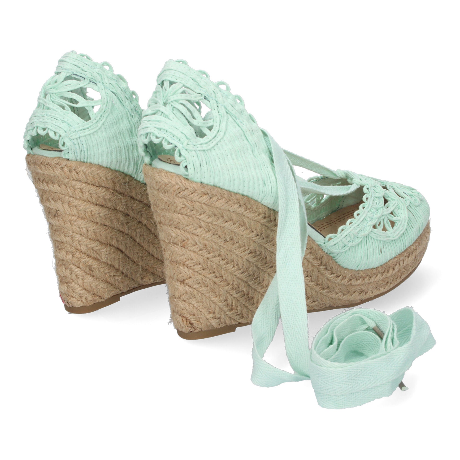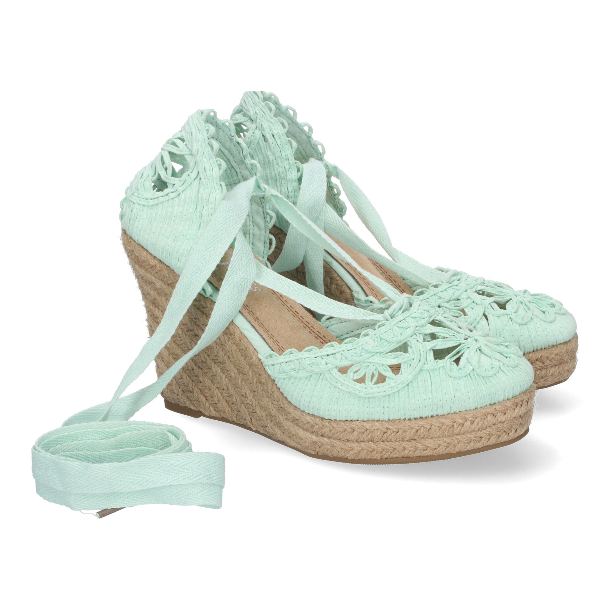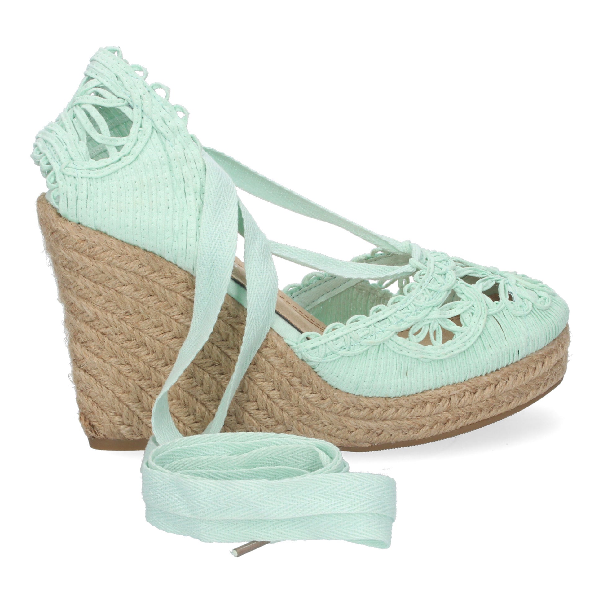 Sandalia de Cuña con Yute Estilo Valenciana Pala con Tiras Cosidas en Forma de Petalos de Flor y Cierre de Cordones en el Tobillo Primavera Verano 2021