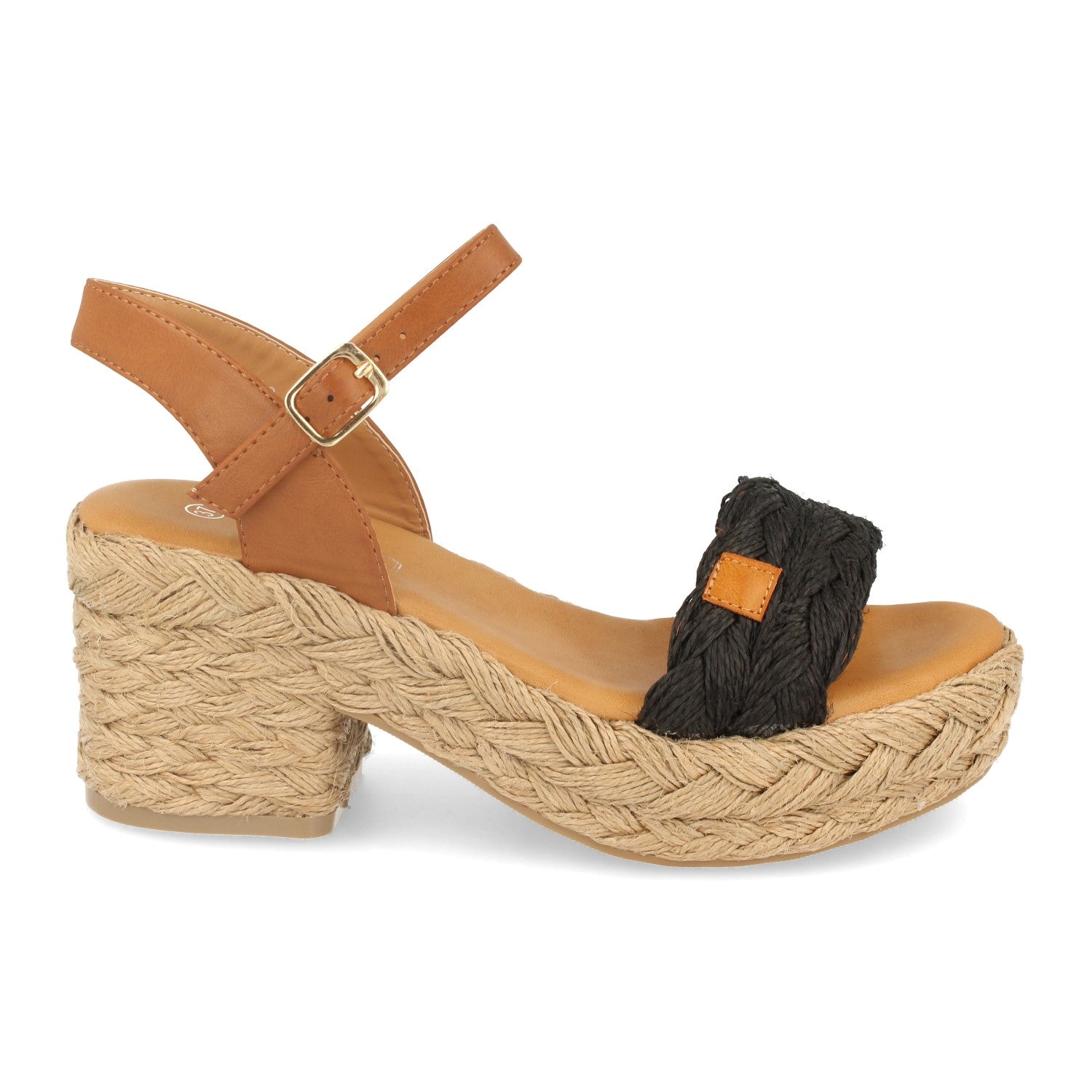 Sandalia de Tacón con Plataforma de Yute Adorno en Pala Piso de Crepelina y Cierre de Hebilla Primavera Verano 2020