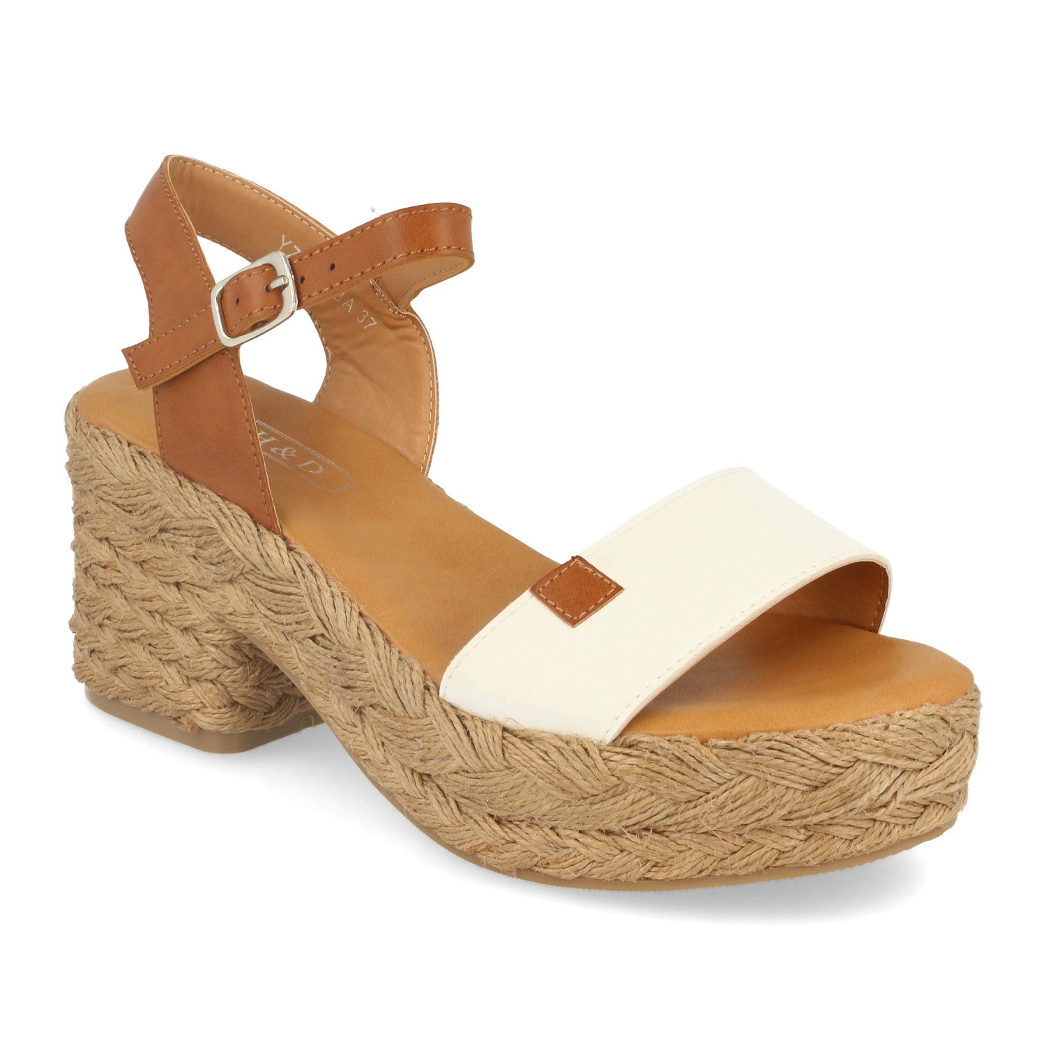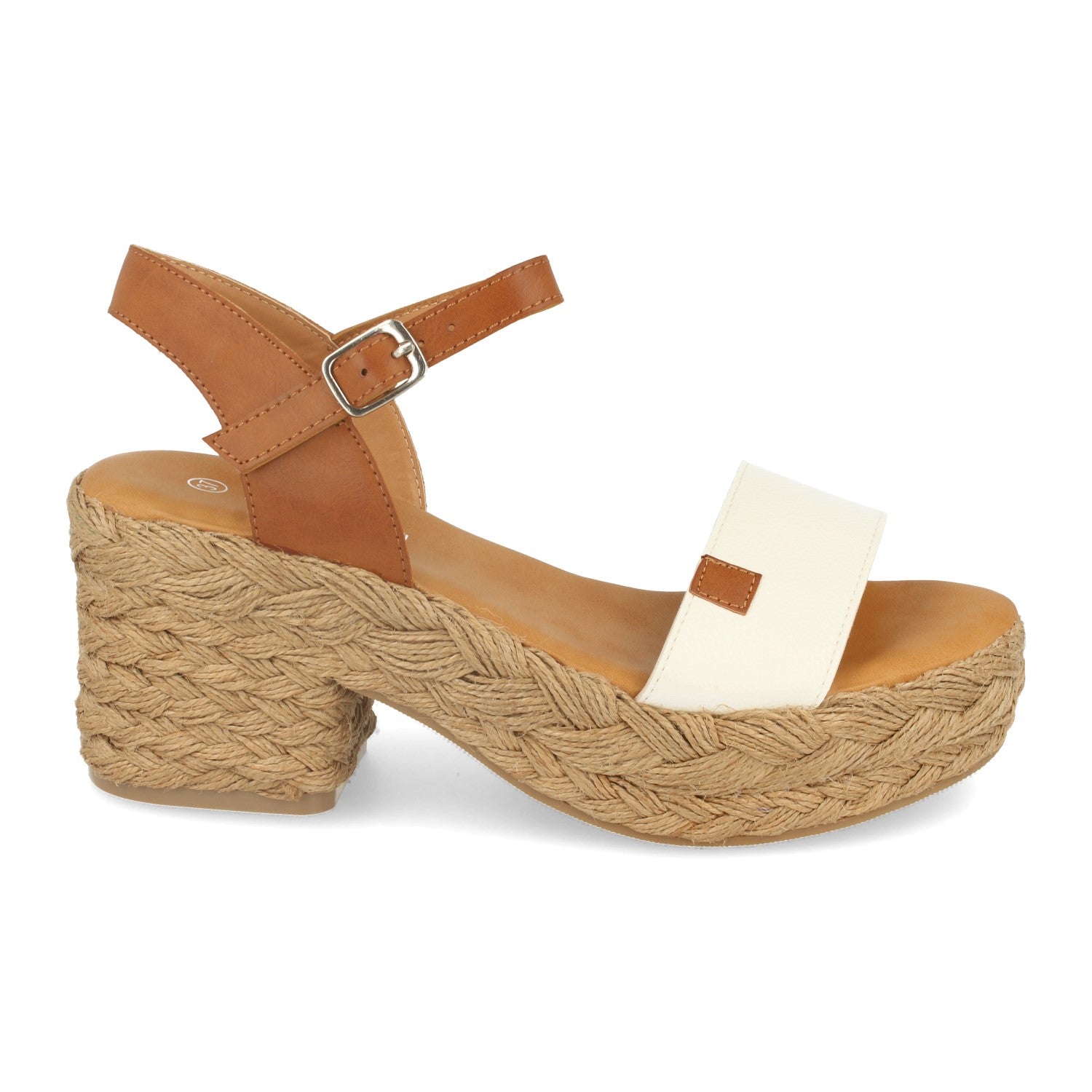 Sandalia con Tacón y Plataforma de Yute Estilo Ankle Strap Adorno en Pala y Cierre de Hebilla Primavera Verano 2020