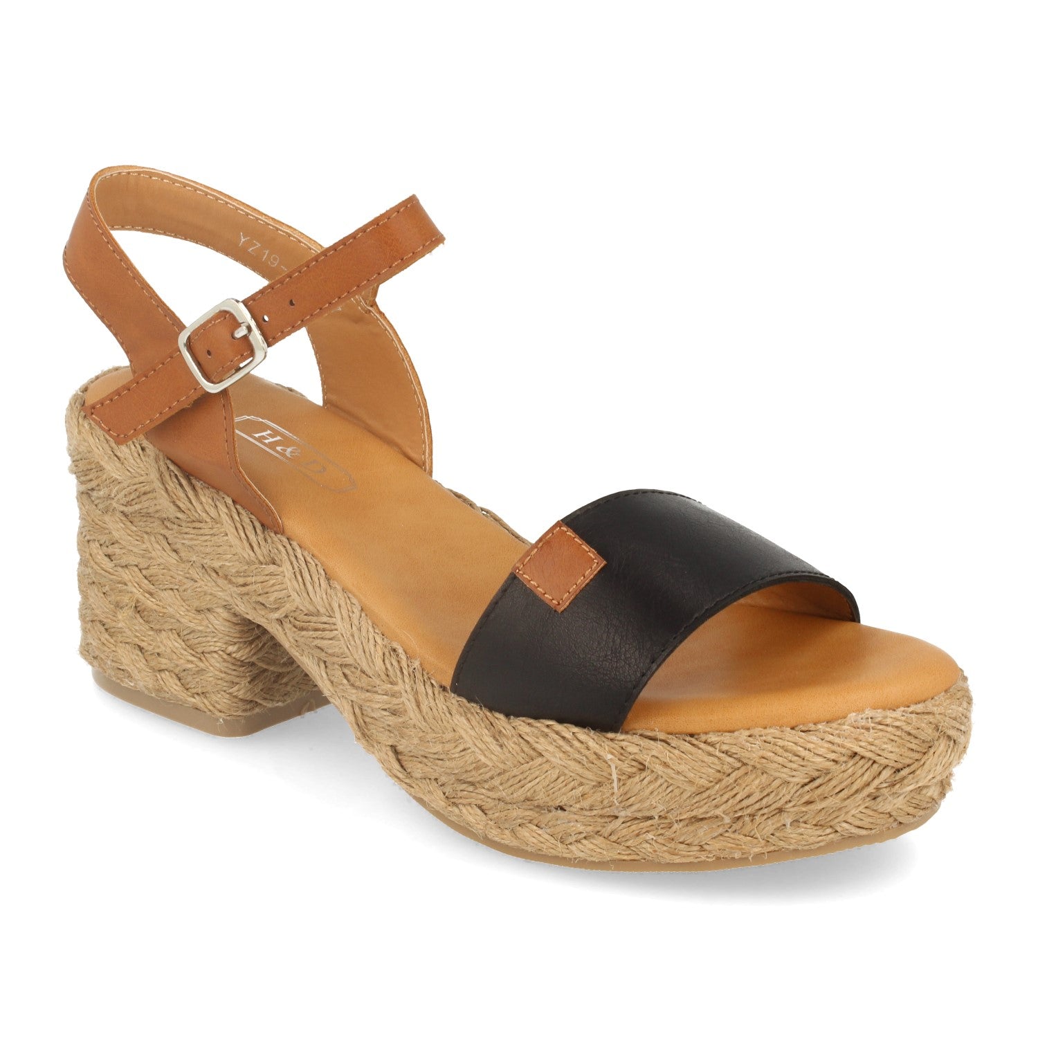 Sandalia con Tacón y Plataforma de Yute Estilo Ankle Strap Adorno en Pala y Cierre de Hebilla Primavera Verano 2020