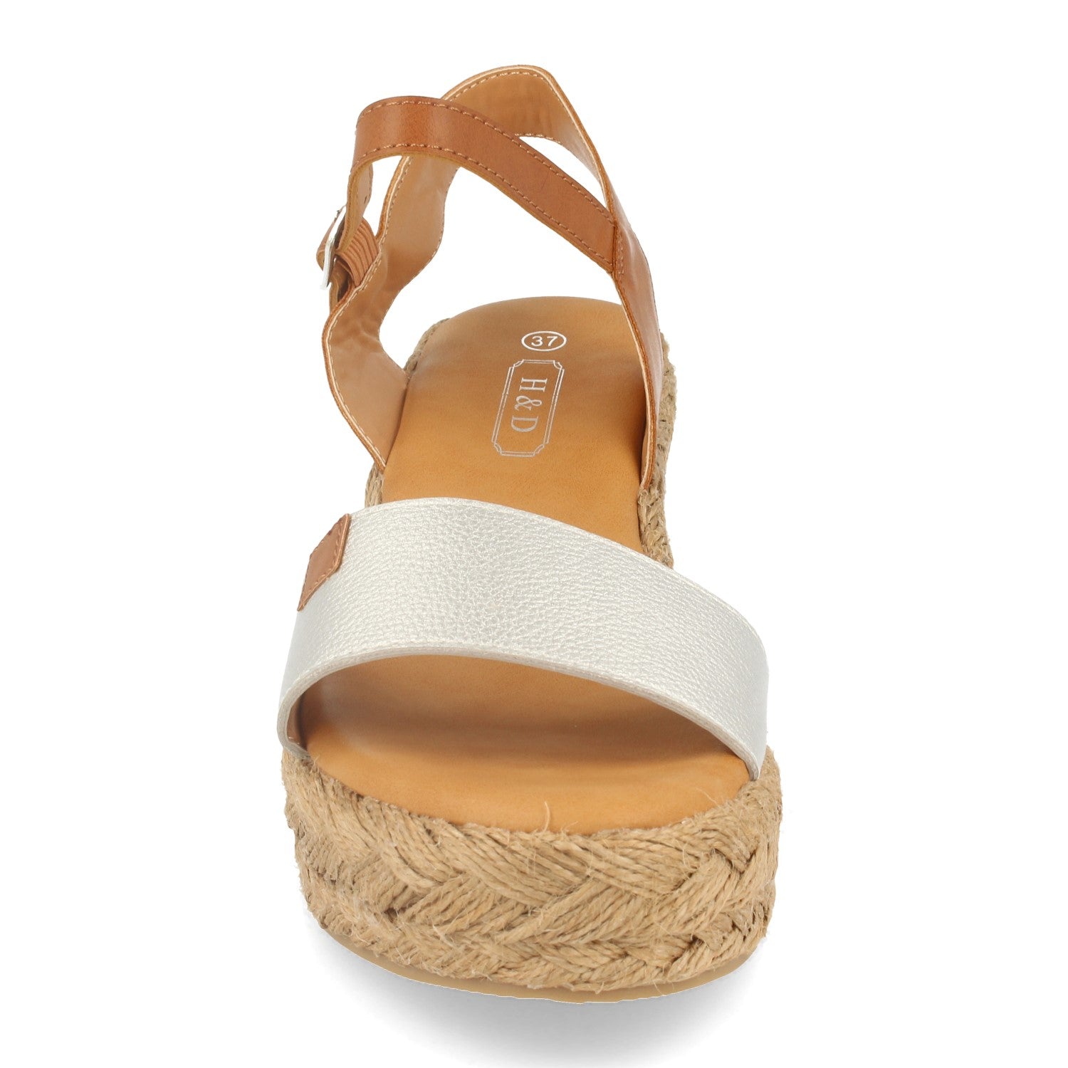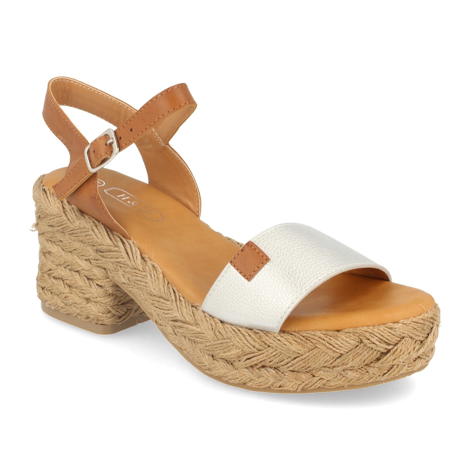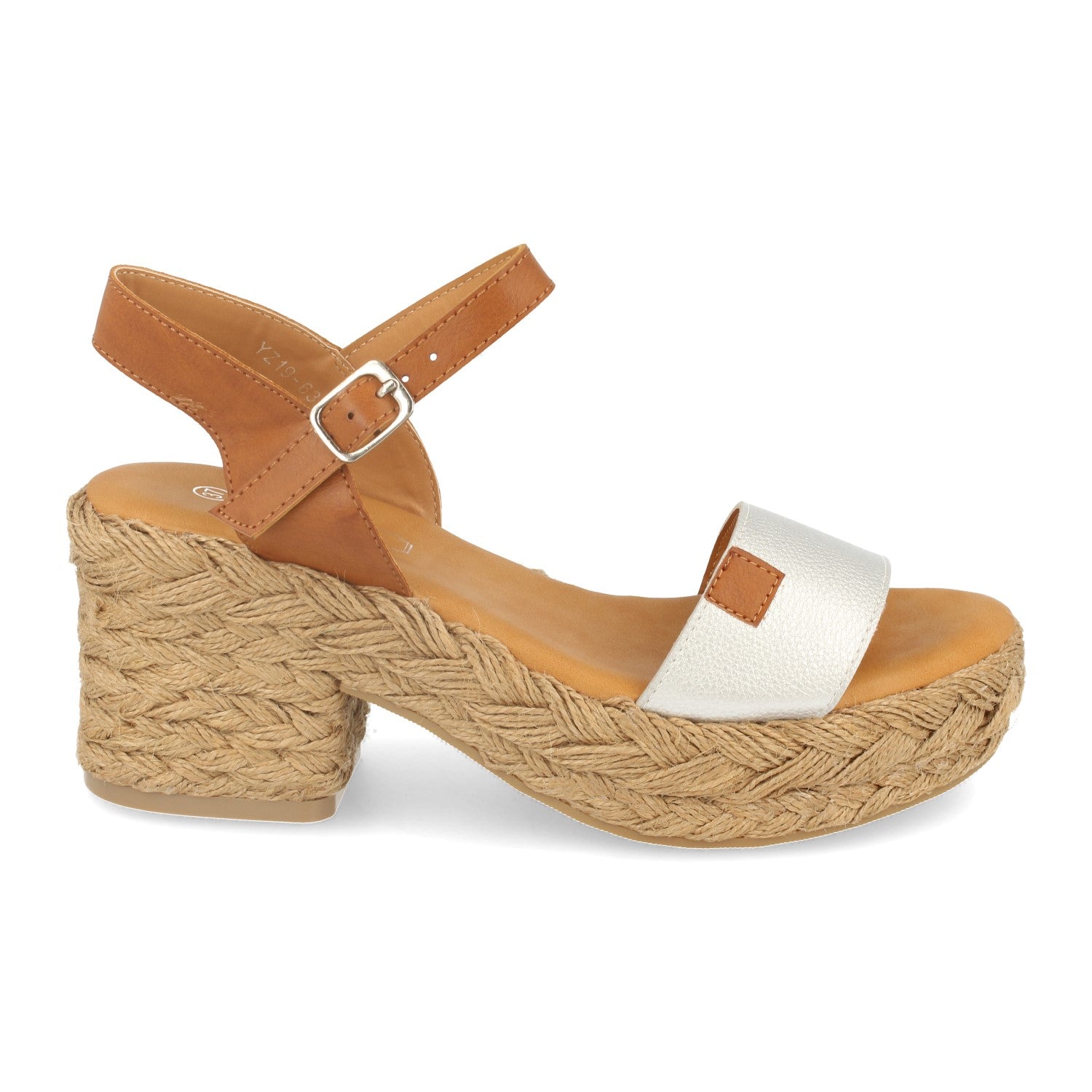 Sandalia con Tacón y Plataforma de Yute Estilo Ankle Strap Adorno en Pala y Cierre de Hebilla Primavera Verano 2020