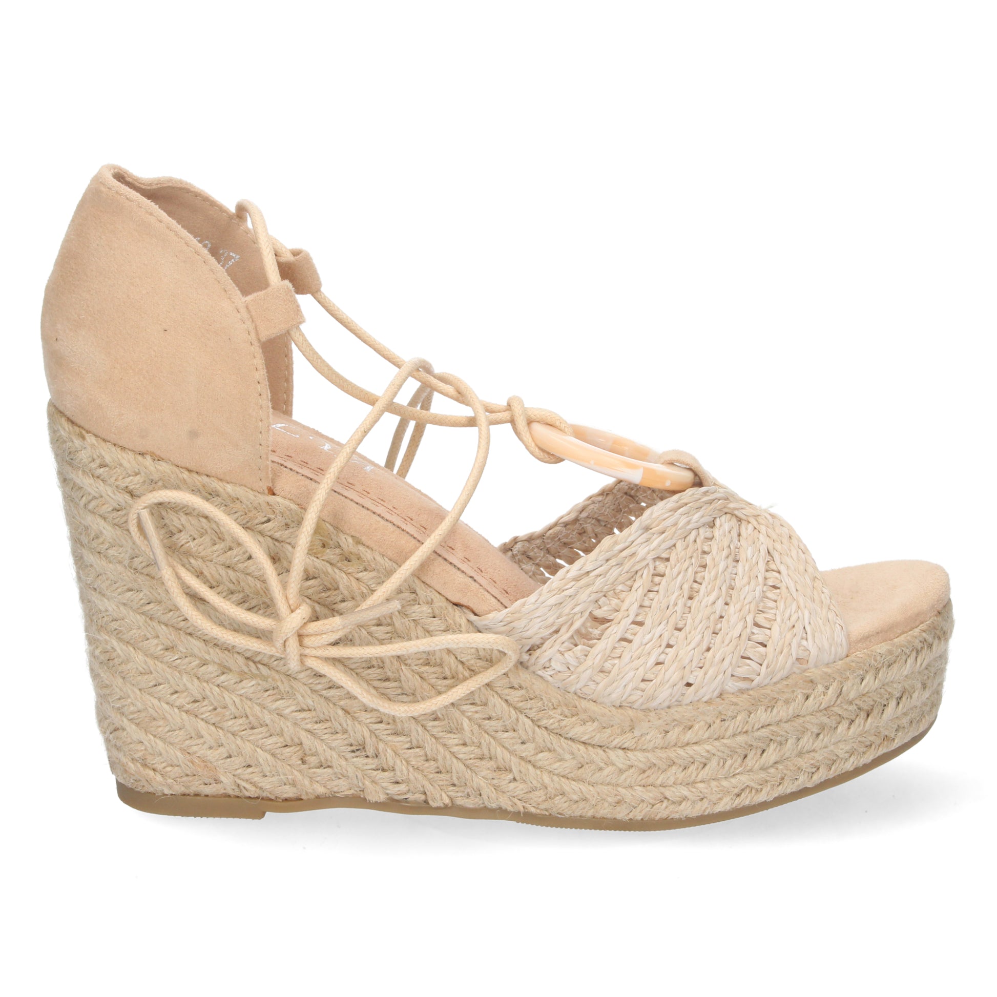 Sandalia de Cuña para Mujer Forrada de Yute con Pala Abierta Detalle en el Empeine y Cierre de Cordones Primavera Verano 2022