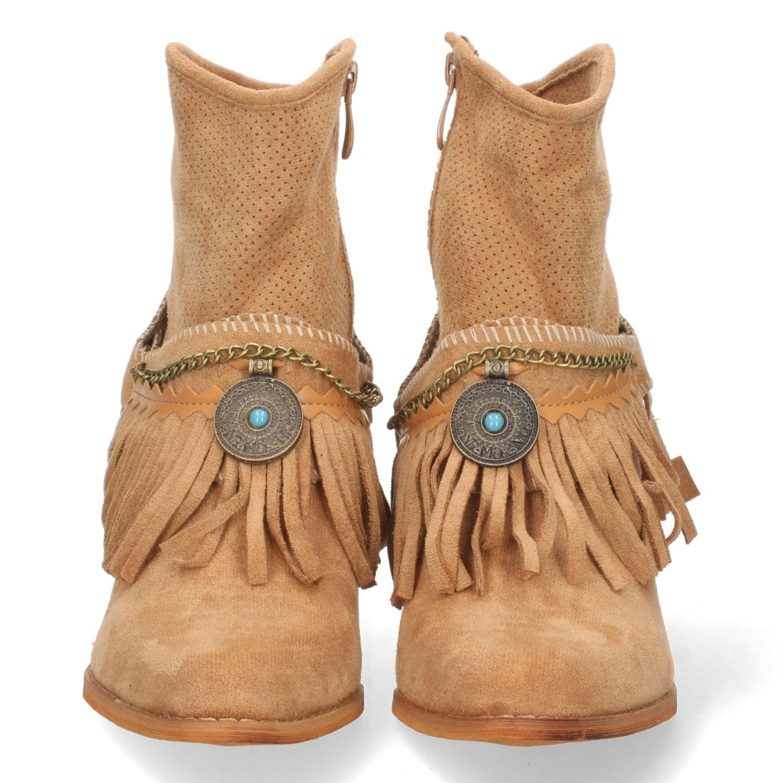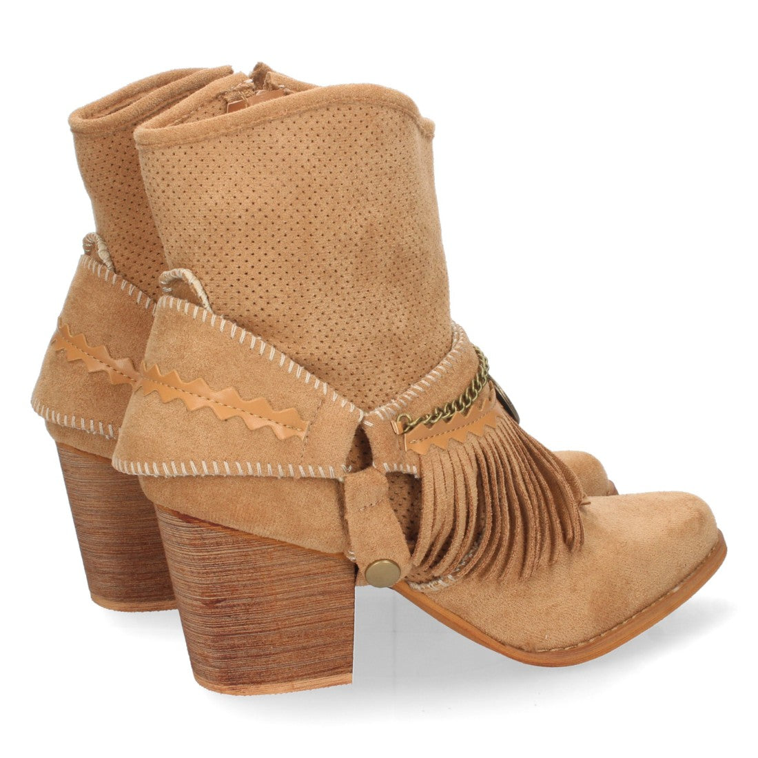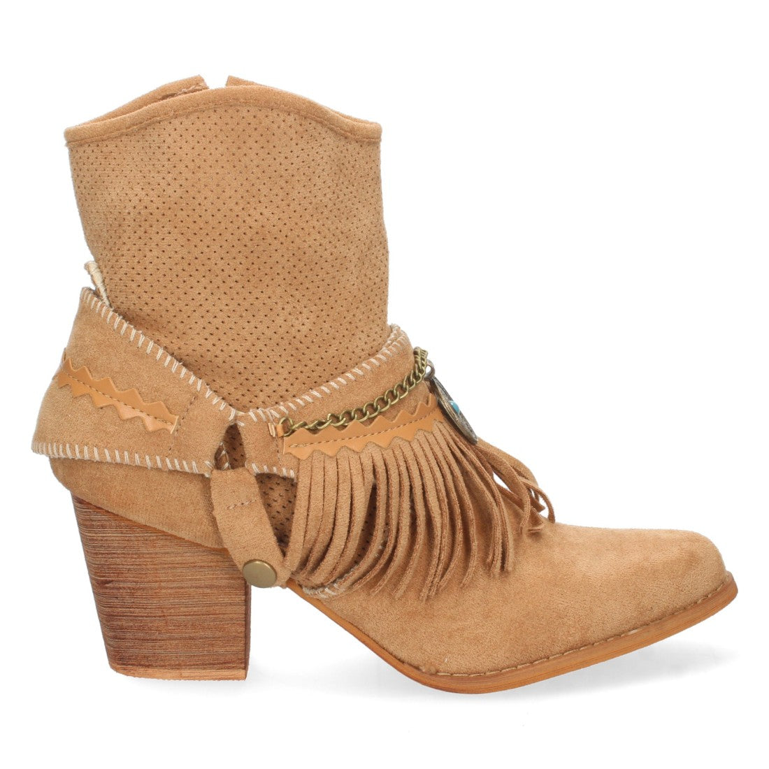 Botin de Tacón para Mujer con Flecos Detalle Metalico Calados en la Caña y Cierre de Cremallera Primavera Verano 2022