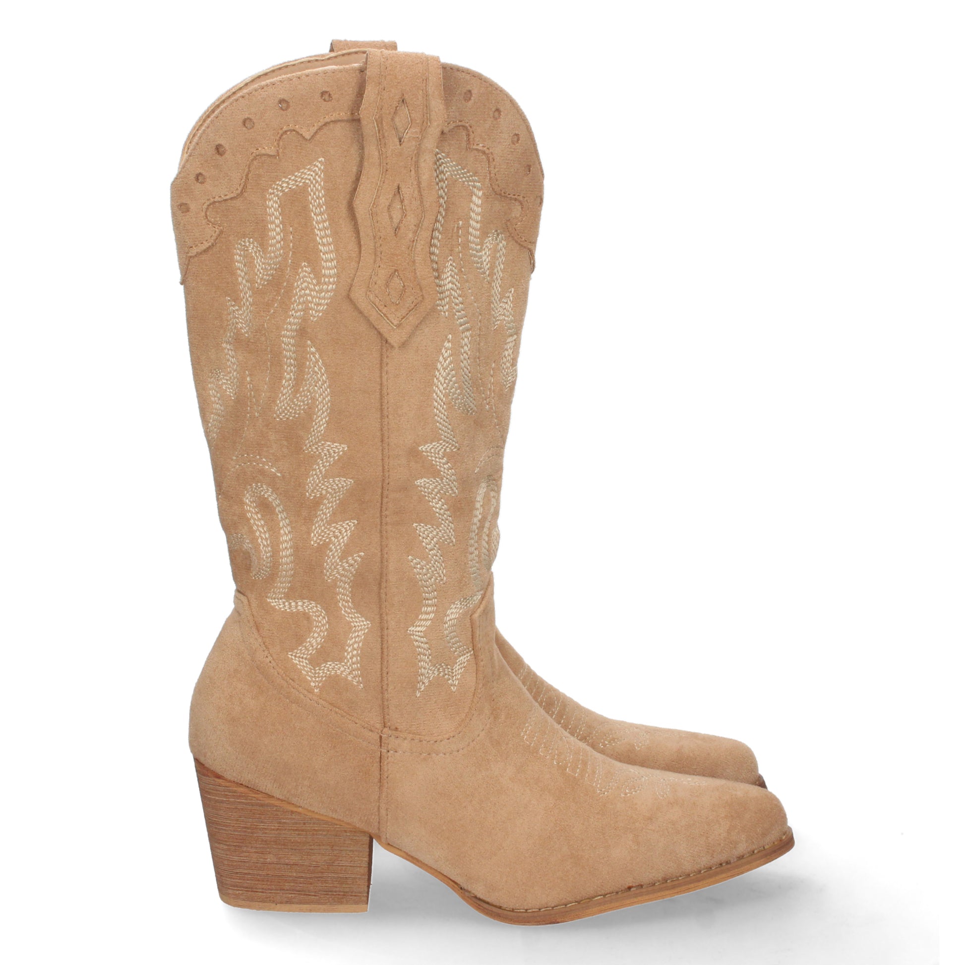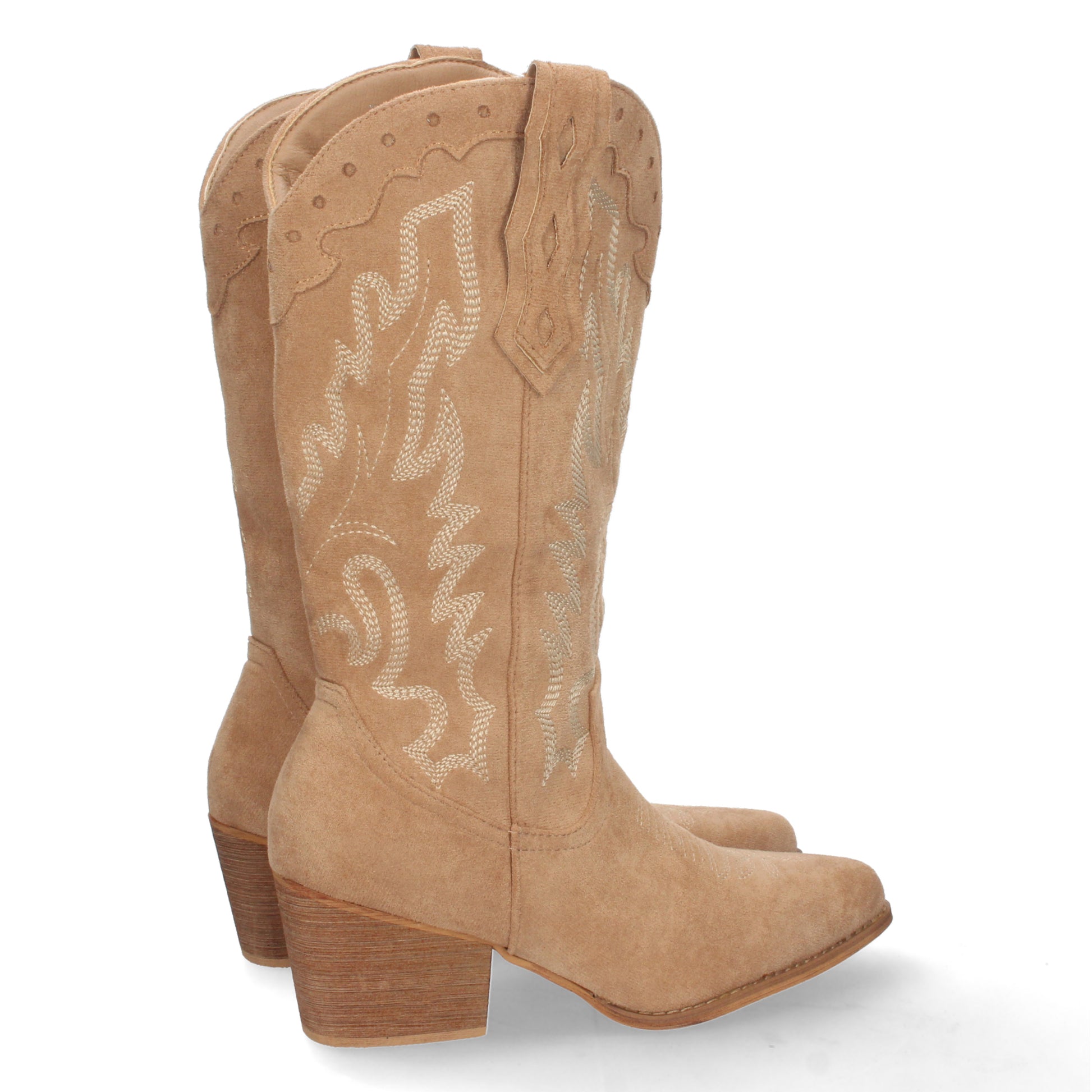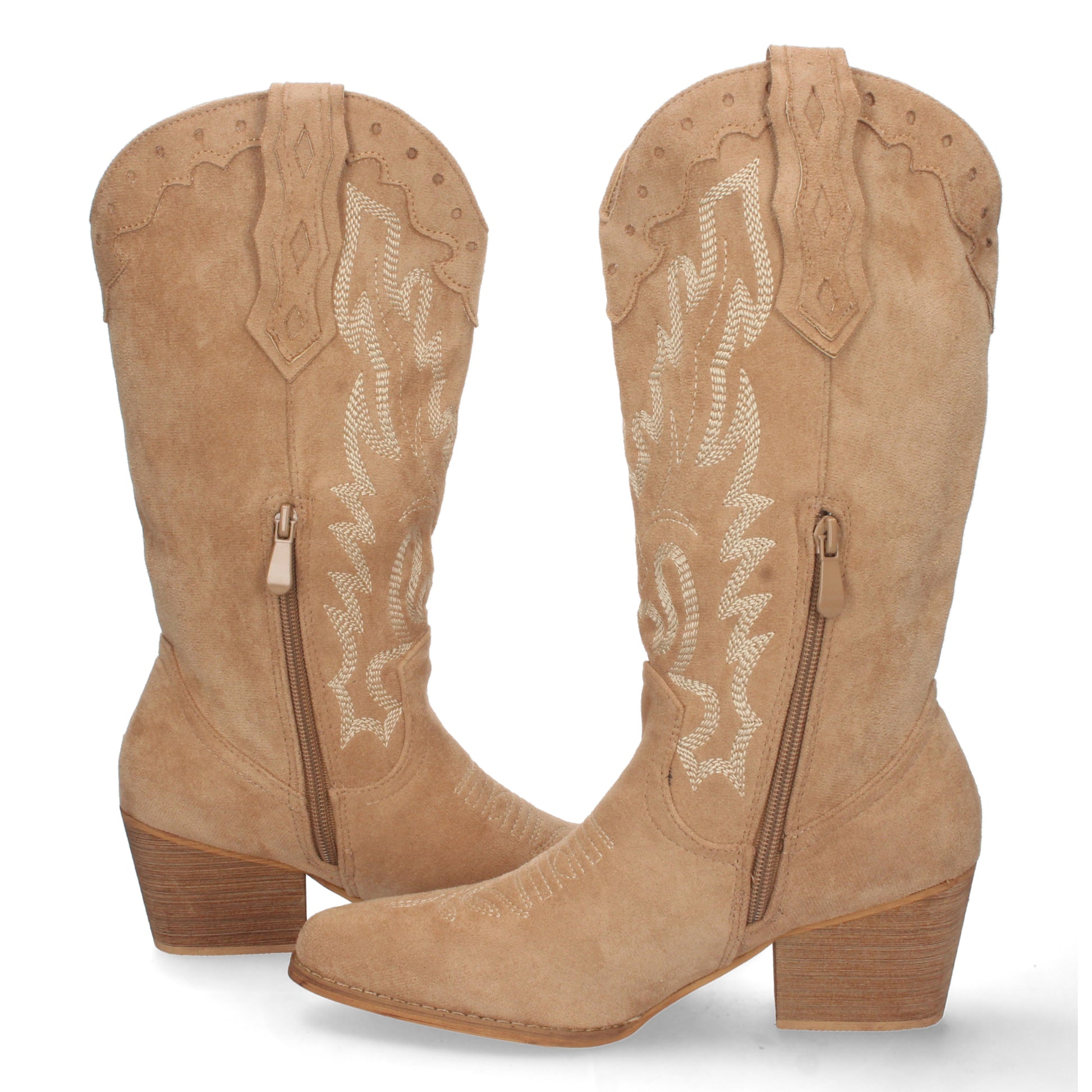 Bota Campera con Tacon para Mujer Comoda con Bordado en Caña y Cierre de Cremallera Otoño Invierno 2022
