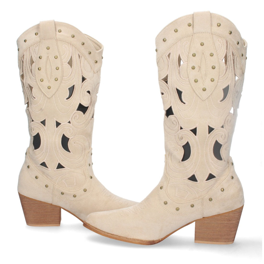 Bota de Tacón para Mujer Comoda con Calados y Tachuelas en la Caña Cierre de Cremallera Primavera Verano 2023