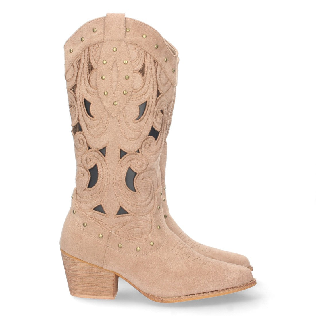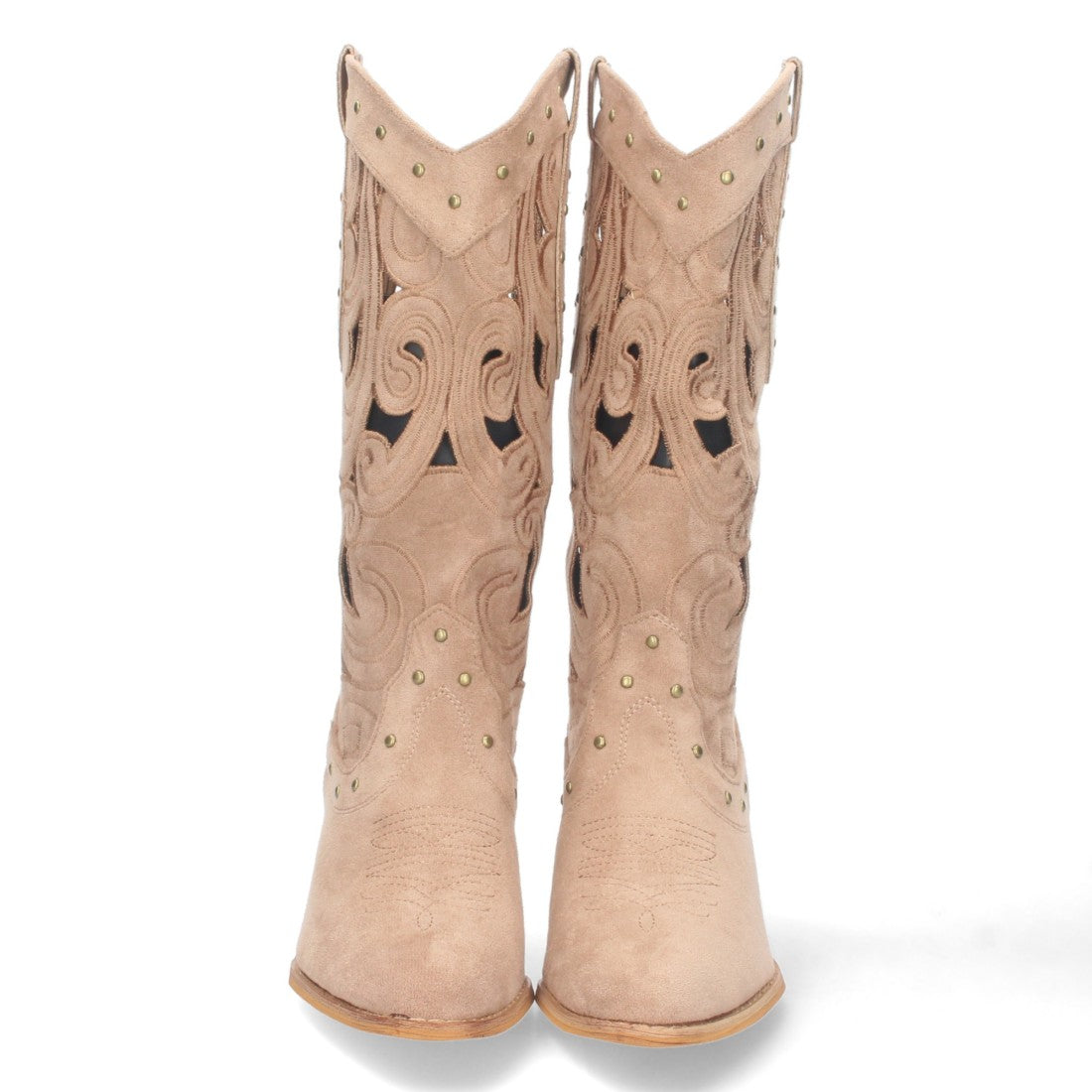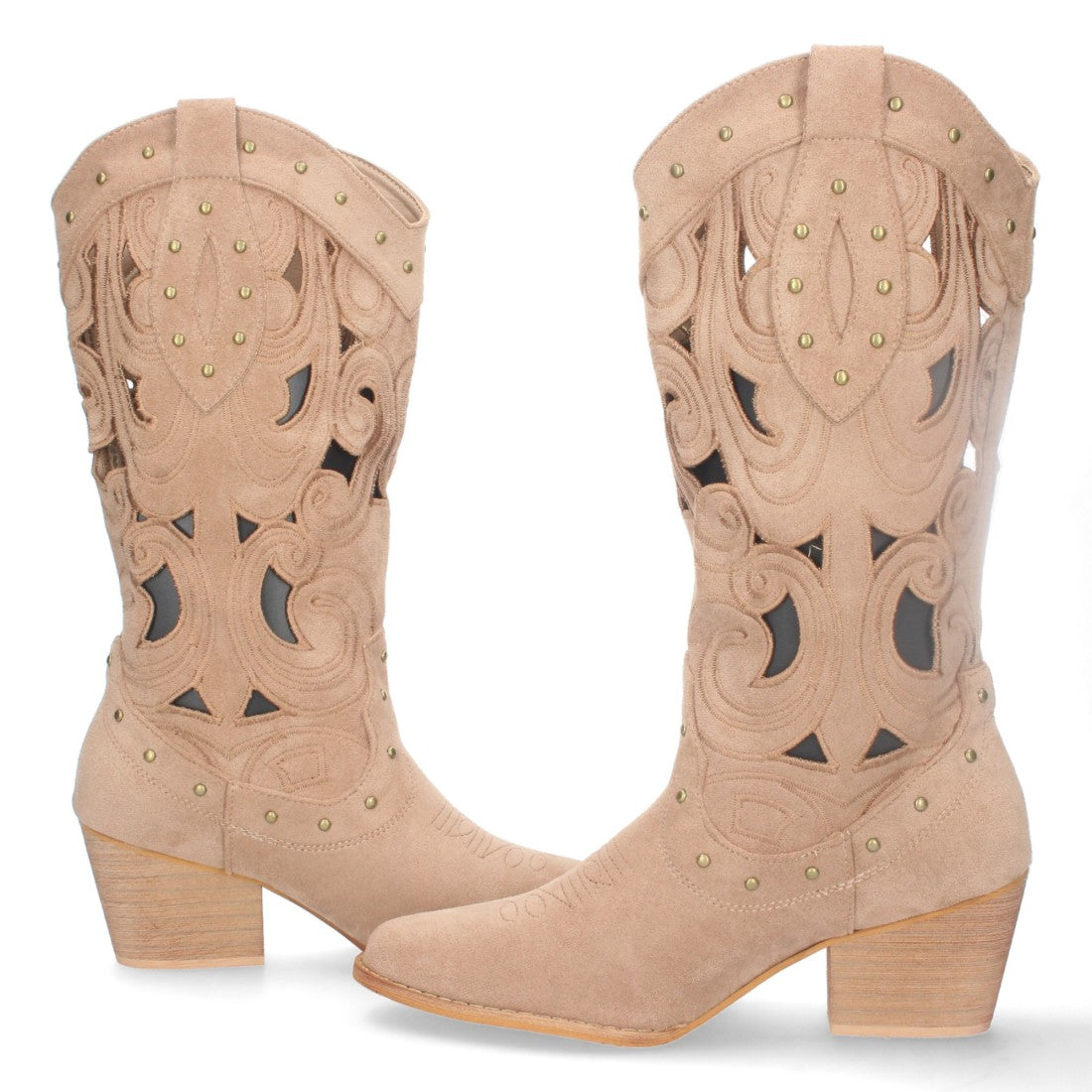 Bota de Tacón para Mujer Comoda con Calados y Tachuelas en la Caña Cierre de Cremallera Primavera Verano 2023