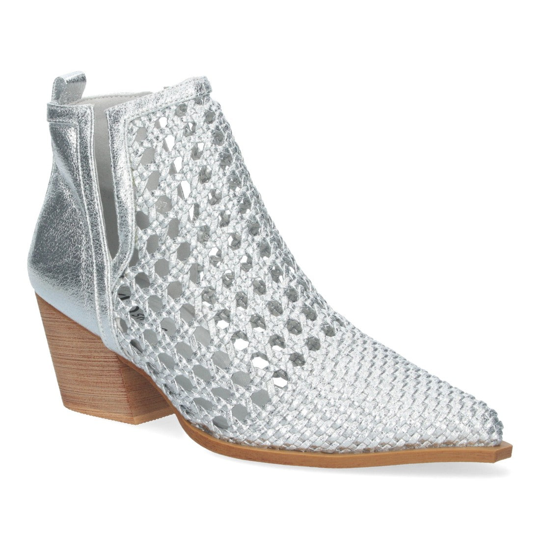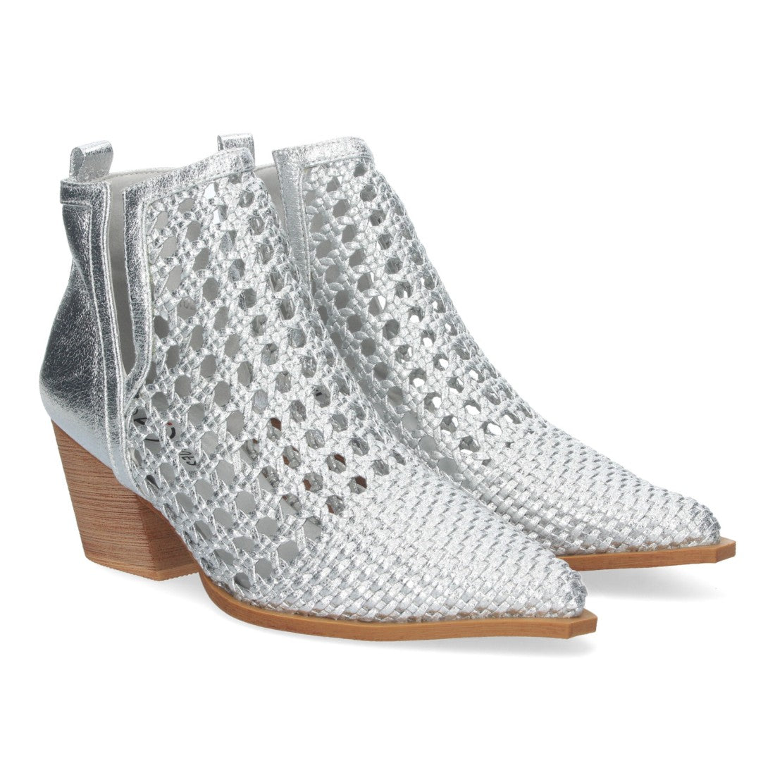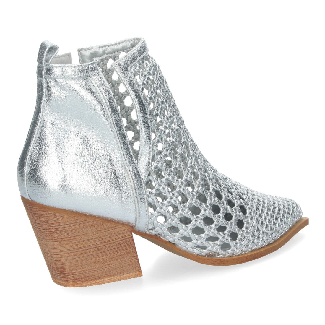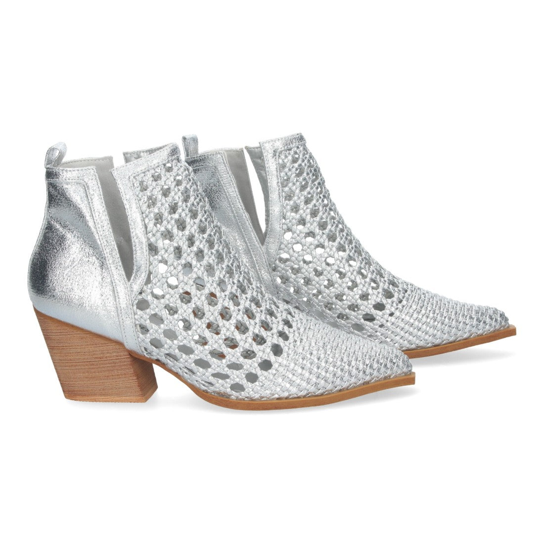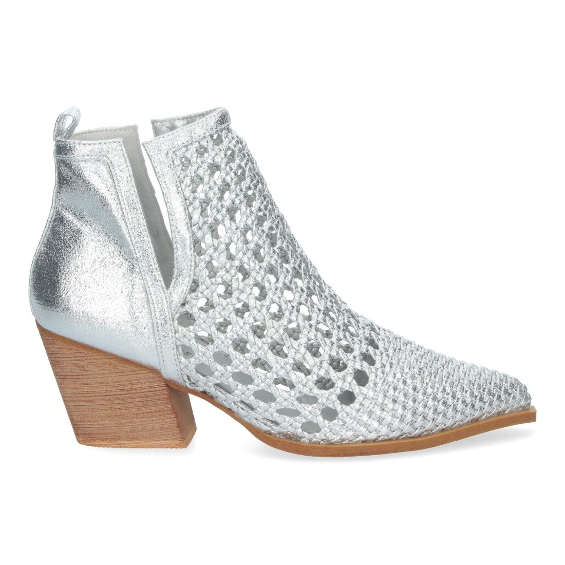 Botín Elegante de Mujer con Tacón Diseño Calado con Tiras Trenzadas de Punta Fina y Abierto por los dos laterales para mas comodidad.