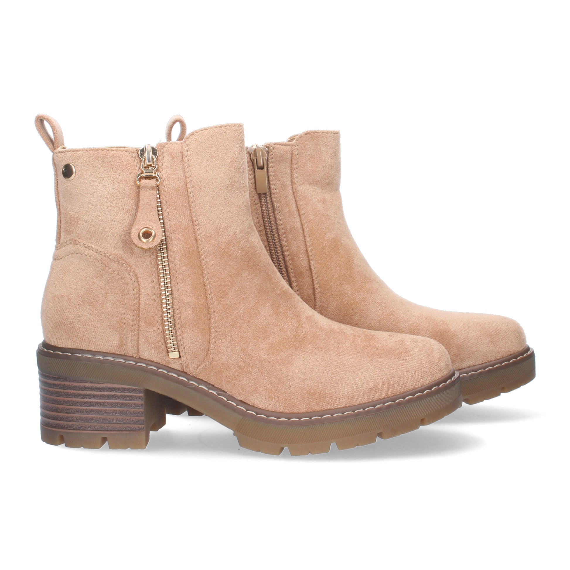 Botín de Tacon para Mujer con material aterciopelado cierre de cremallera y de hebilla.