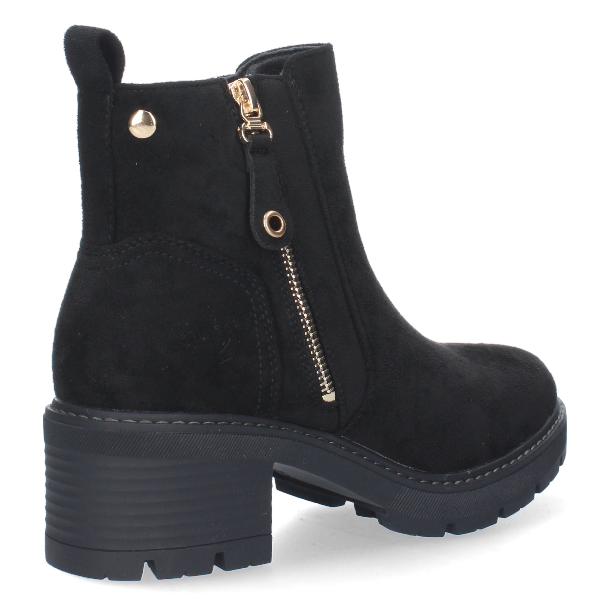 Botín de Tacon para Mujer con material aterciopelado cierre de cremallera y de hebilla.