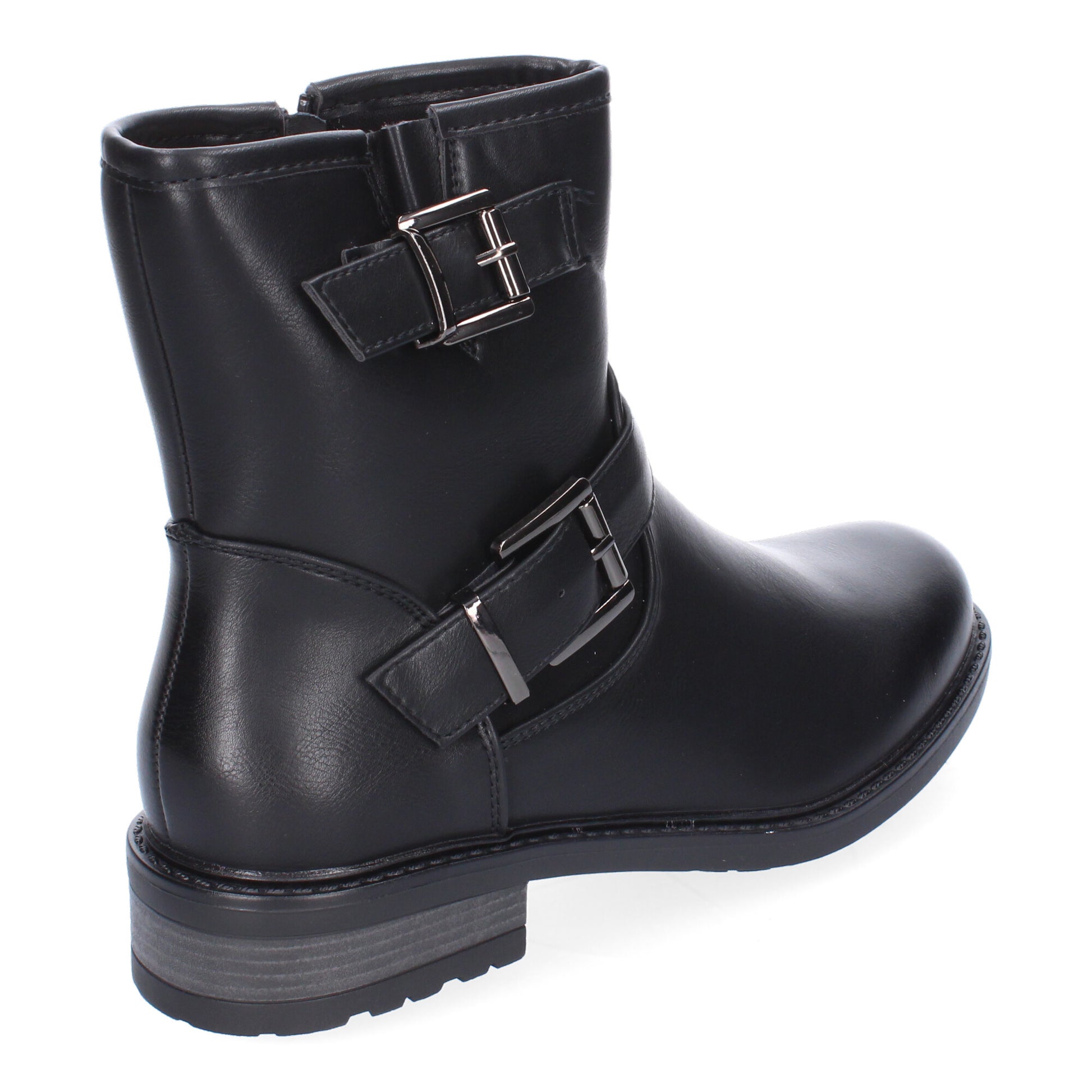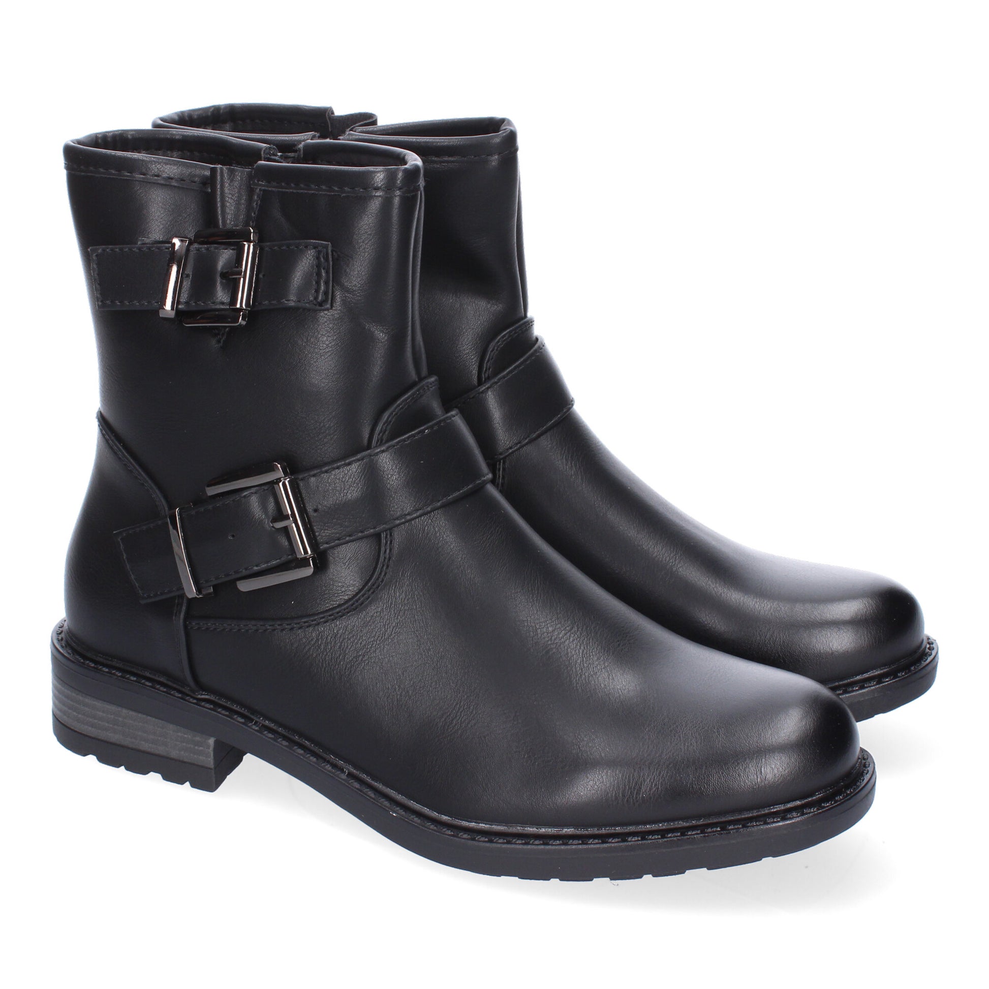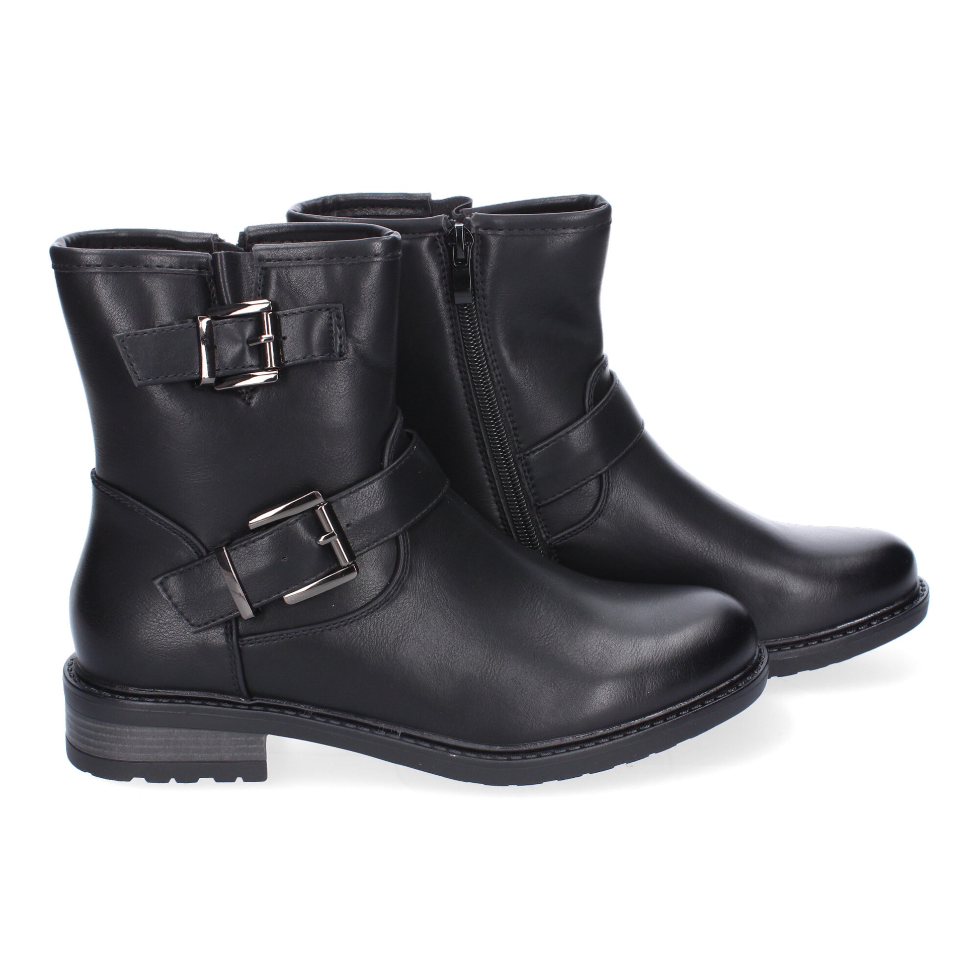 Botines Moteros para Mujer Comodos y Elegantes Detalles de Doble Hebilla Punta Redonda Cremallera Lateral Ideales para Otoño-Invierno.