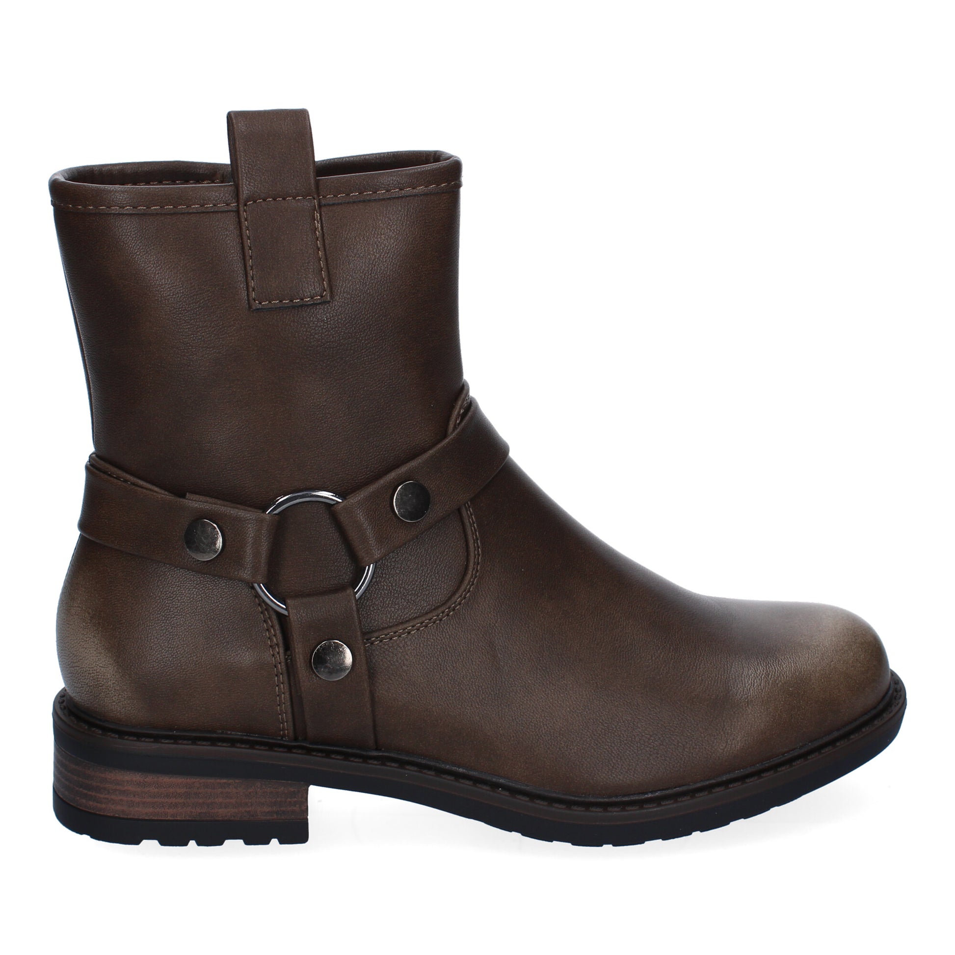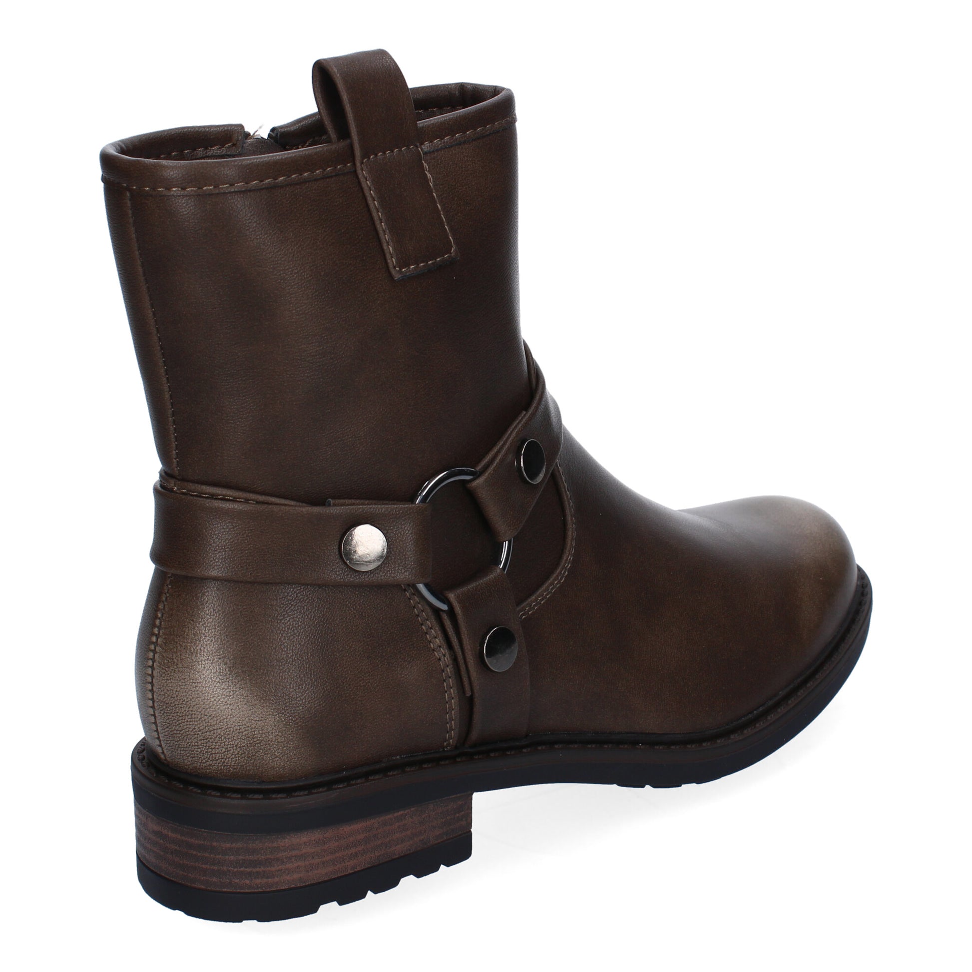 Botines Moteros para Mujer Comodos y Elegantes Detalles Metalicos Punta Redonda Cremallera Lateral Ideales para Otoño-Invierno.