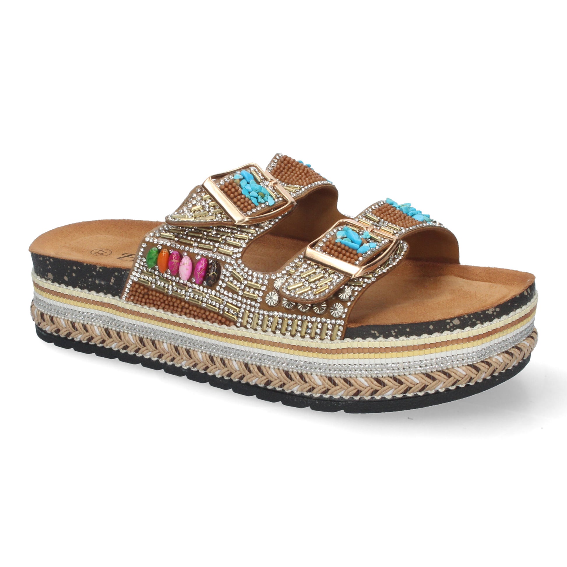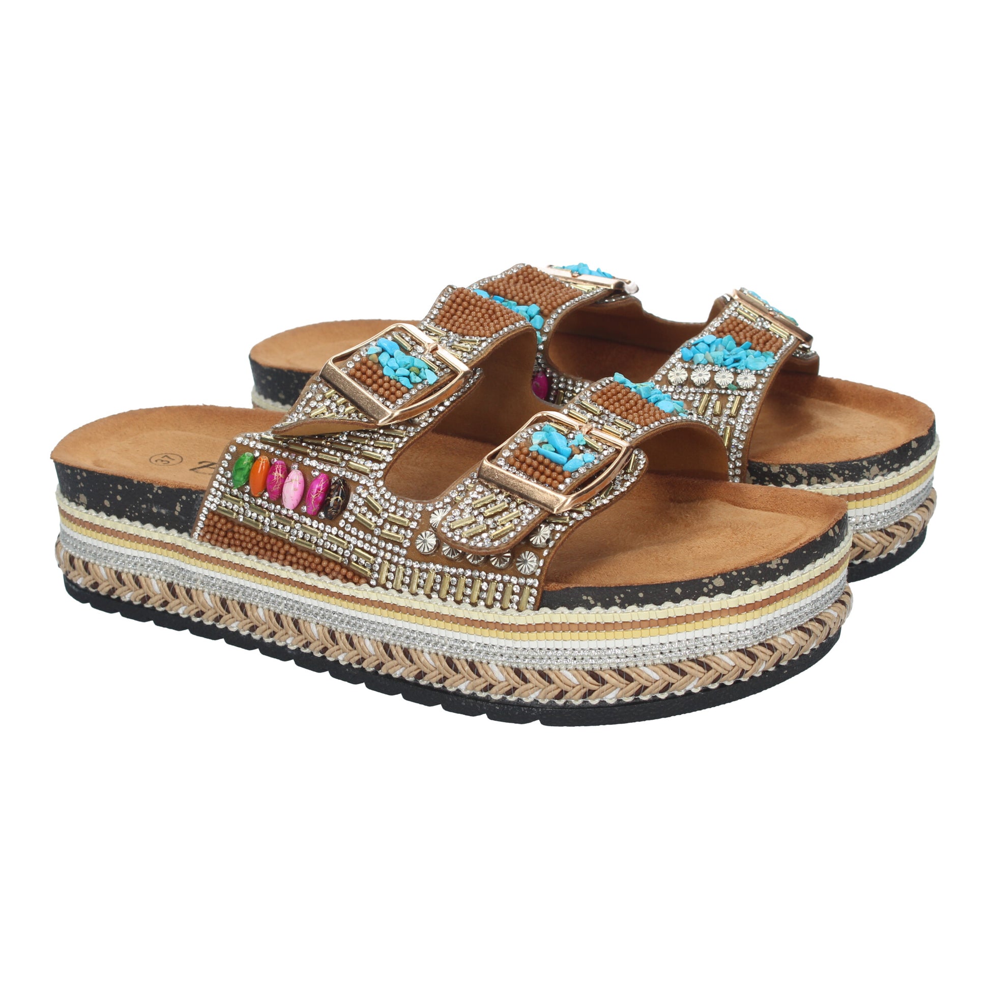 Sandalias para Mujer con Plataforma Cómodas y Elegantes Decorada con Adornos Brillantes y Hebilla Ajustable.