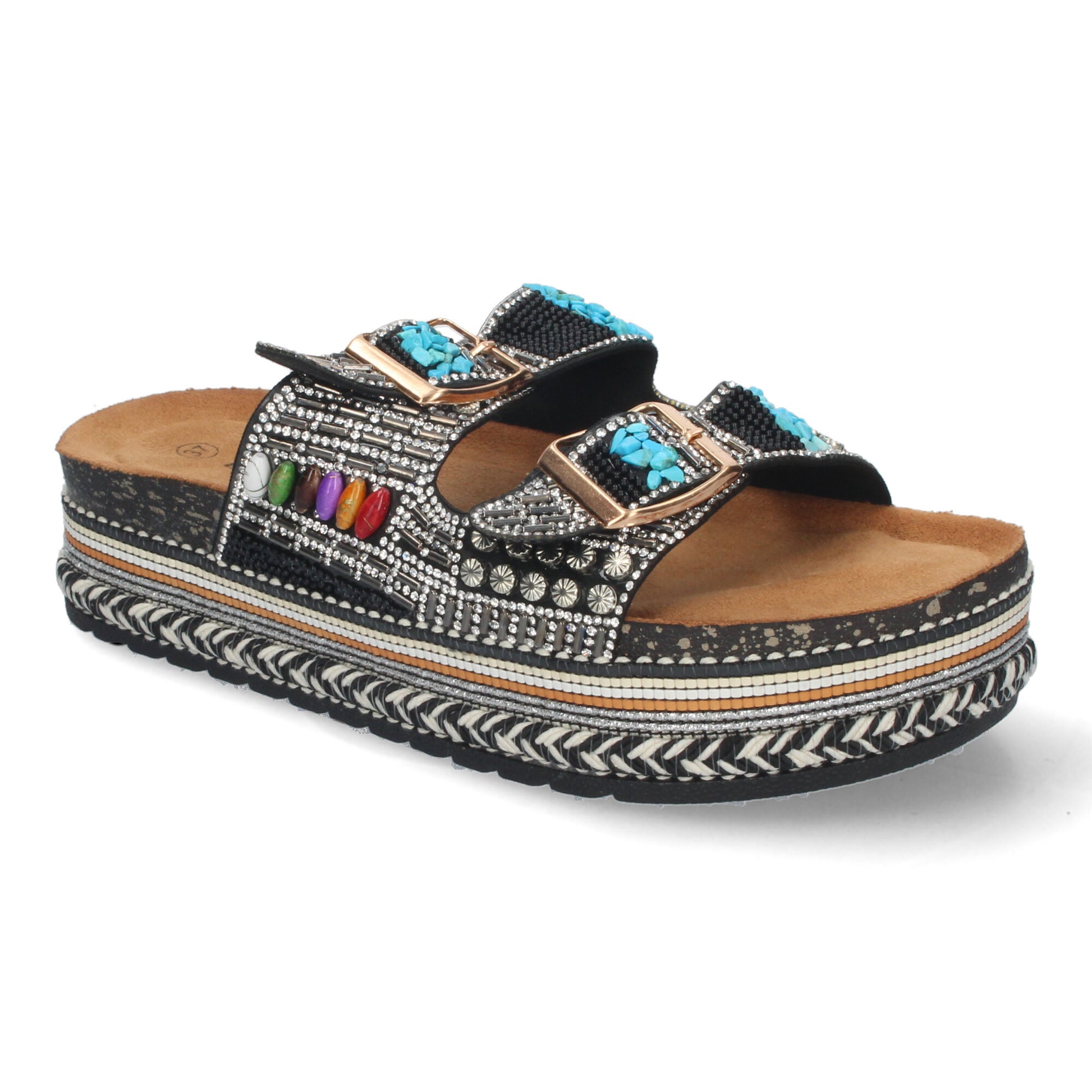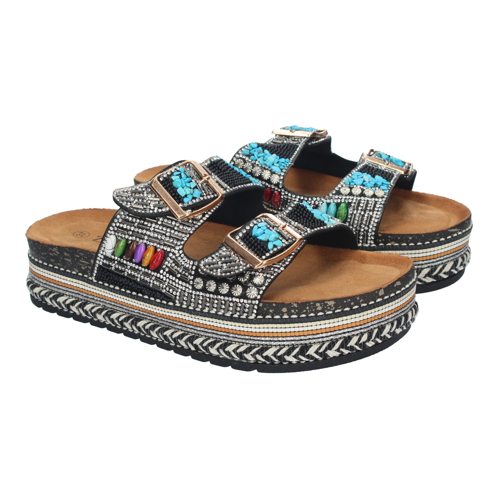 Sandalias para Mujer con Plataforma Cómodas y Elegantes Decorada con Adornos Brillantes y Hebilla Ajustable.