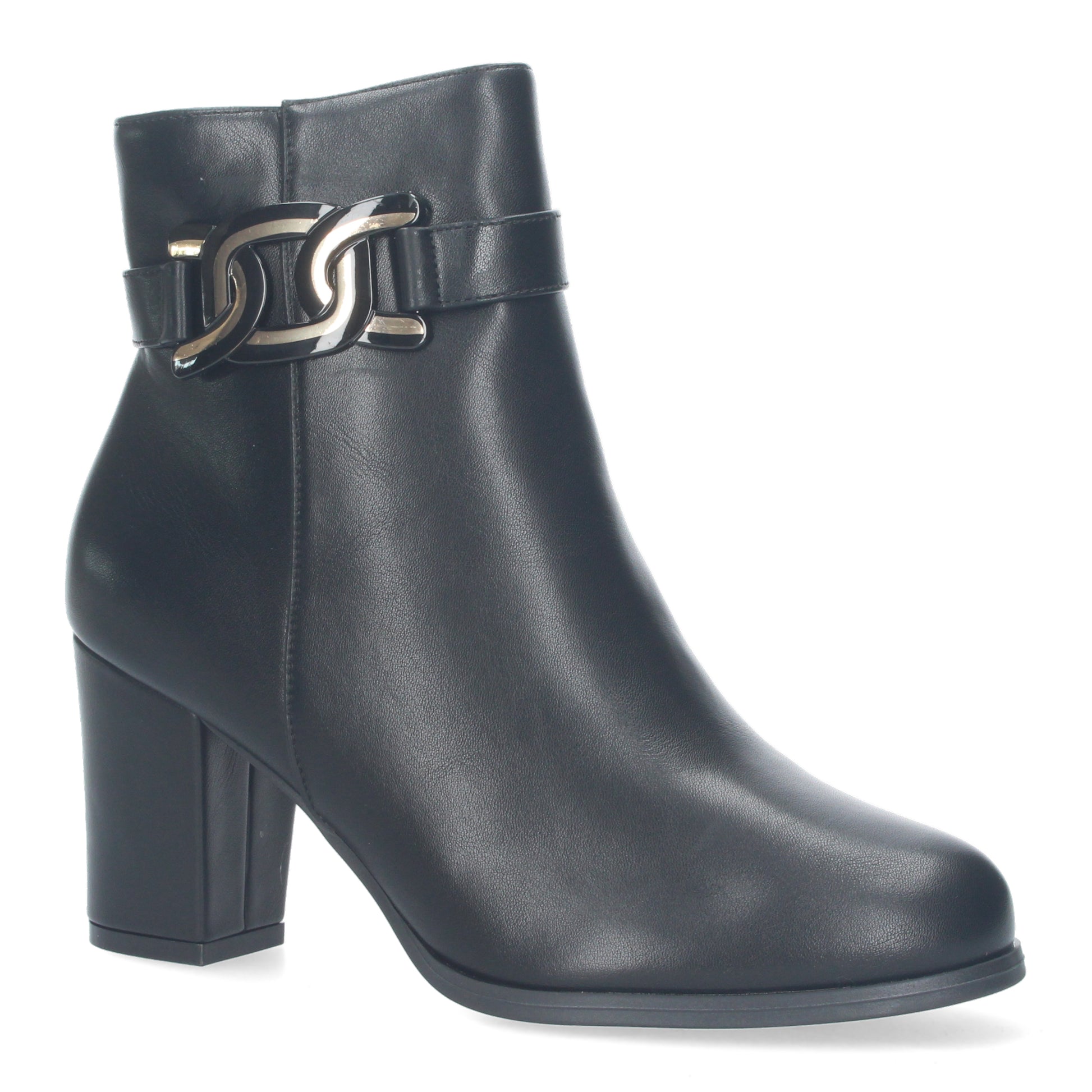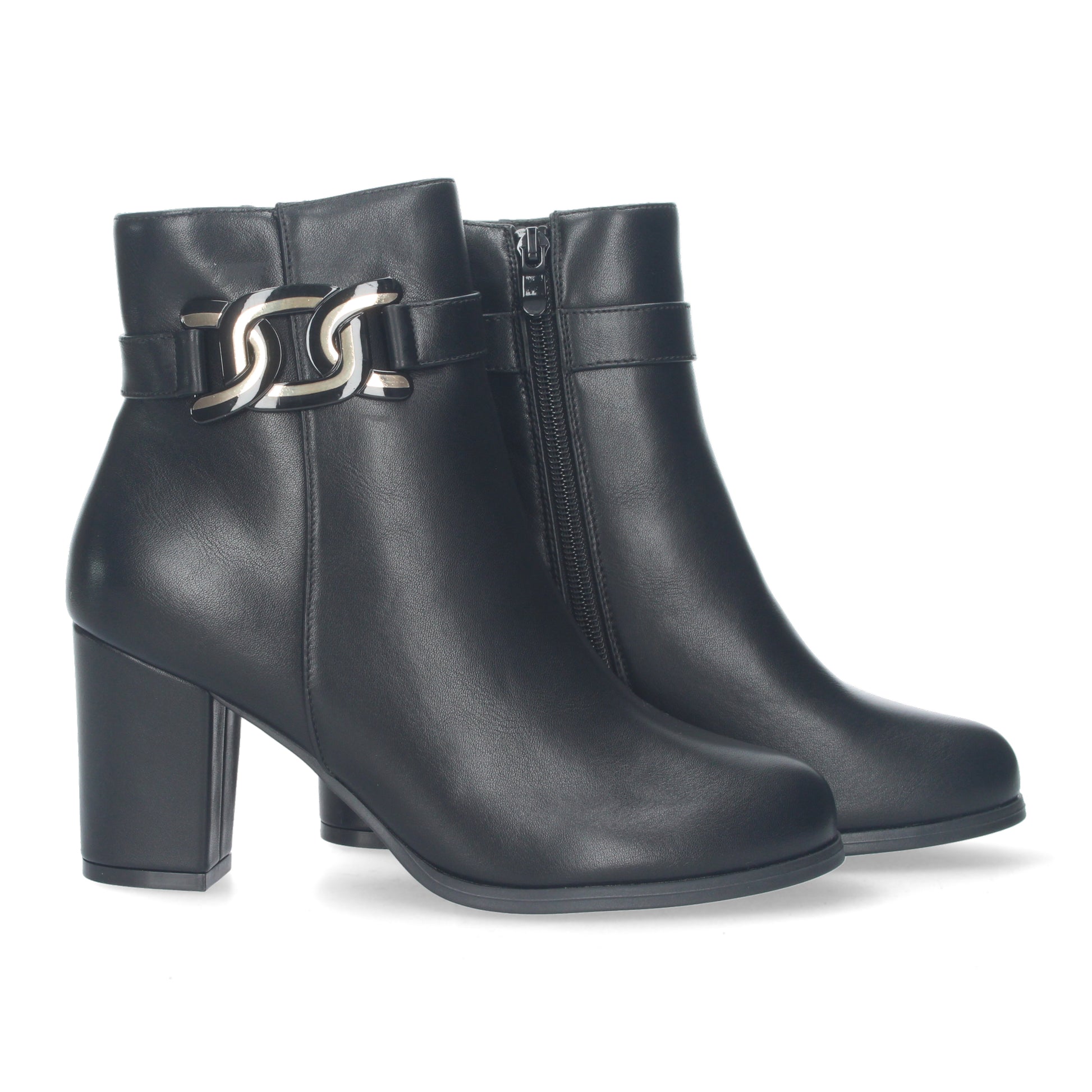 Botin de tacon para mujer detalle metalico en la caña cierre de cremallera.