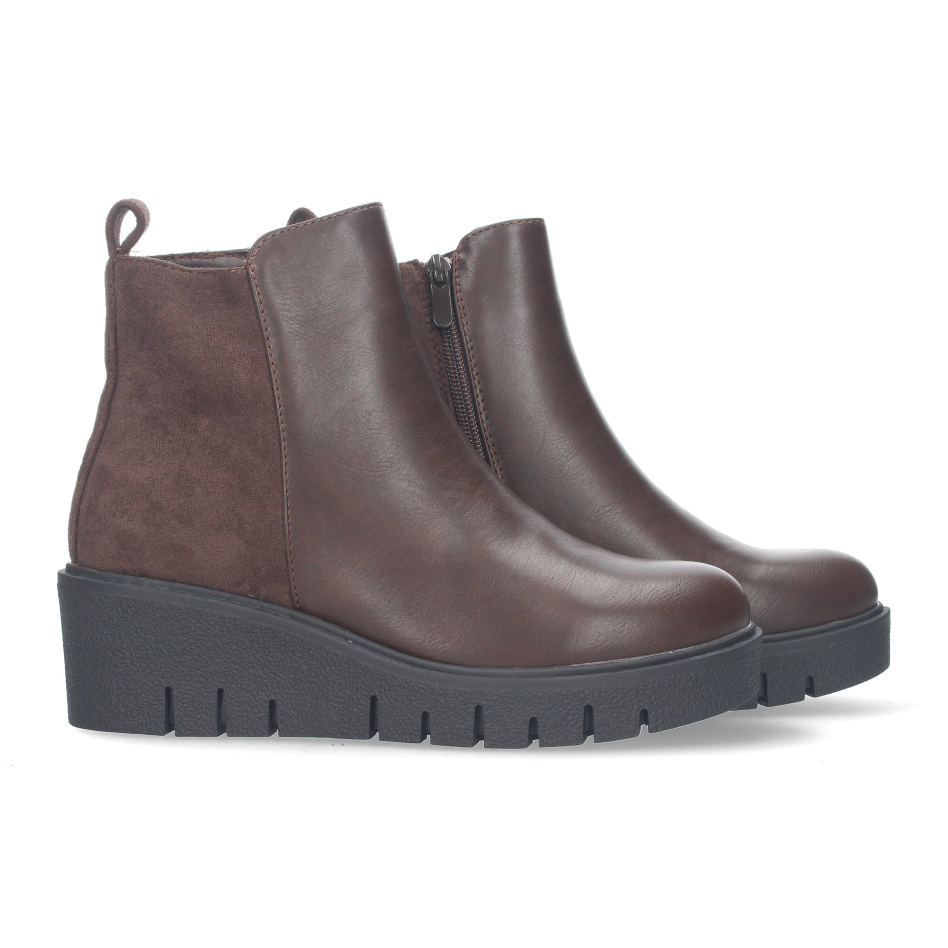 Botín de cuña comodos para mujer Doble tejido liso y aterciopelado. Cierre de cremallera.