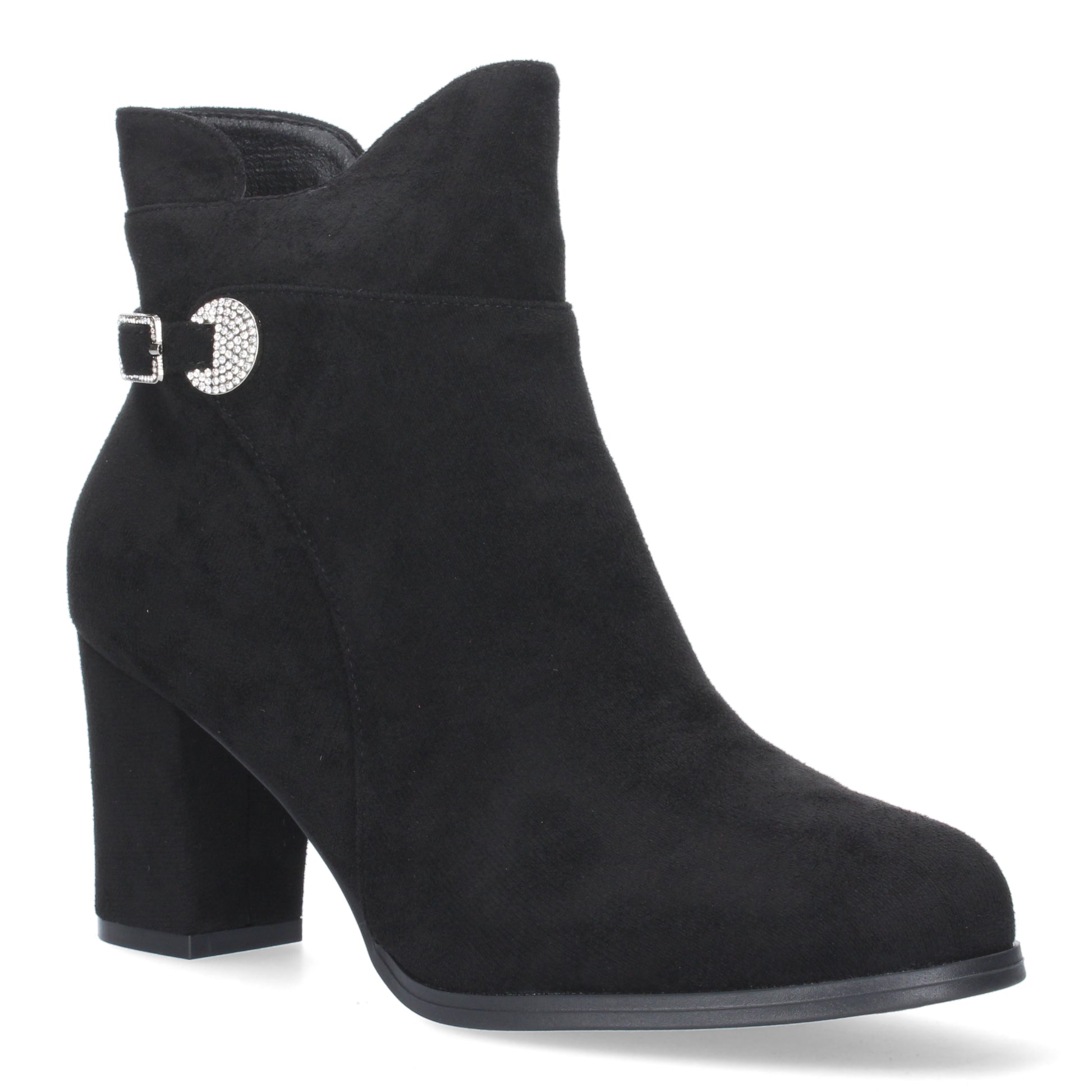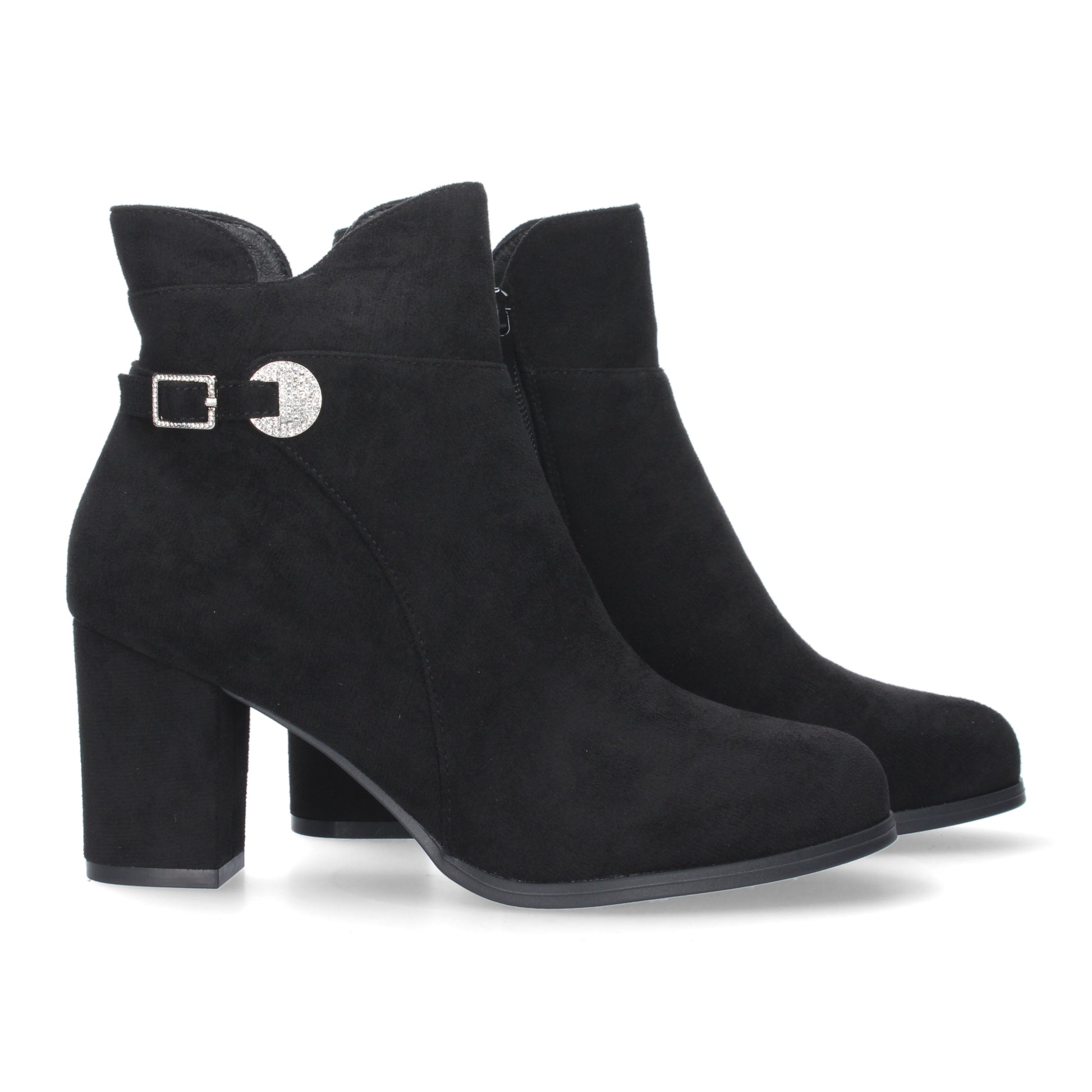 Botin de Tacon Ancho para Mujer punta redonda adorno de tachuela Cierre de Cremallera y de hebilla Otoño Invierno 2023