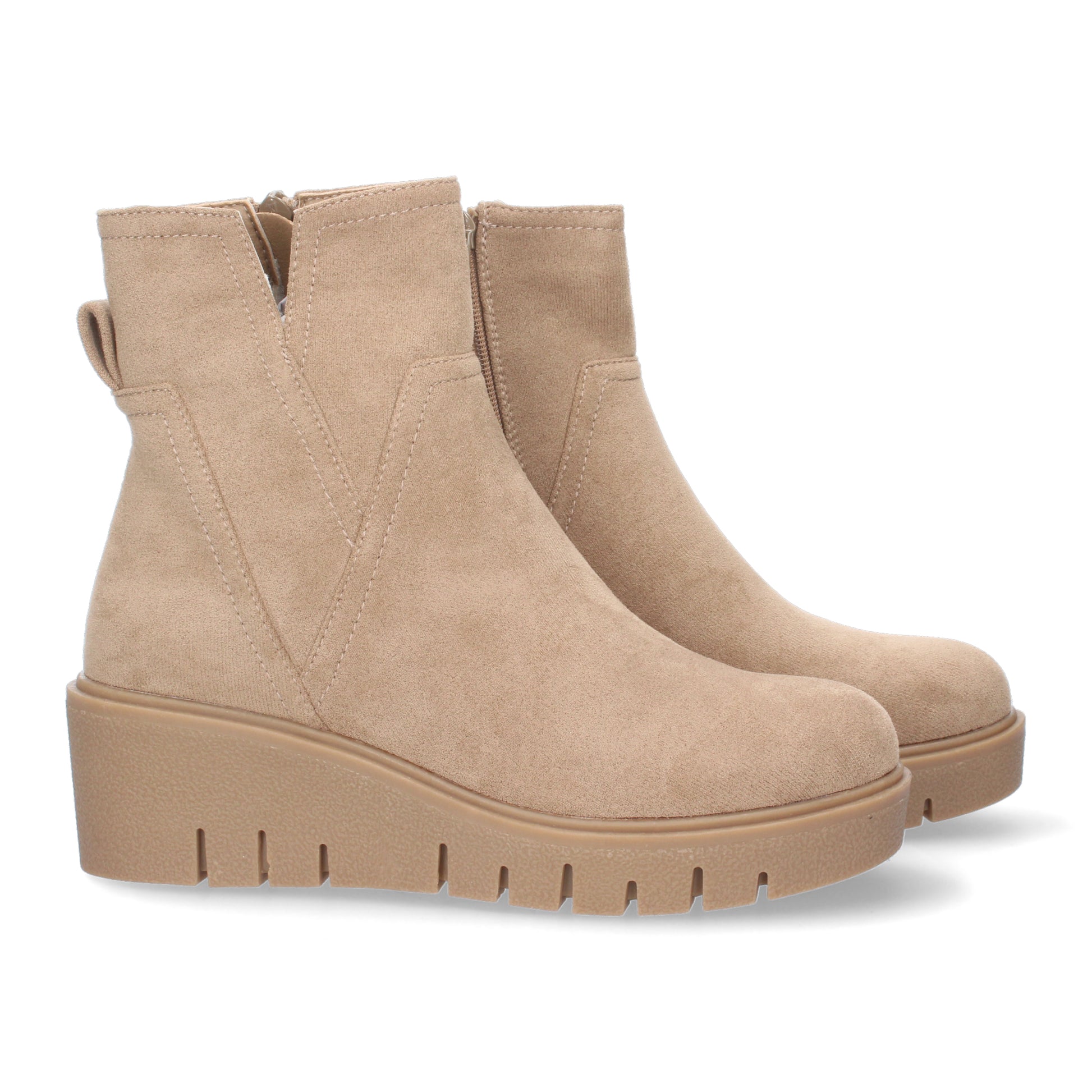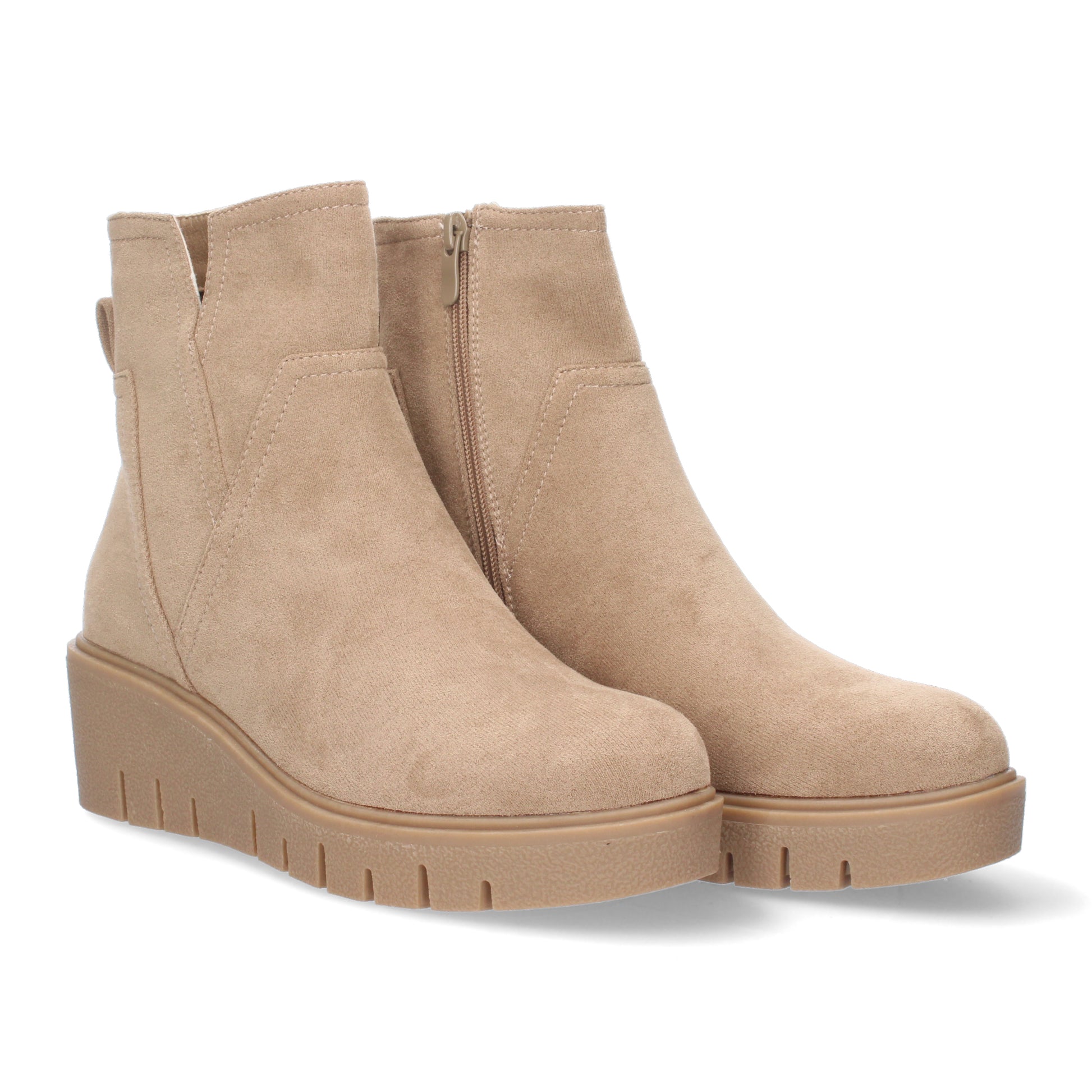 Botín de Tacón Bajo para Mujer Comodo adorno en la caña material aterciopelado y Cierre de Cremallera.