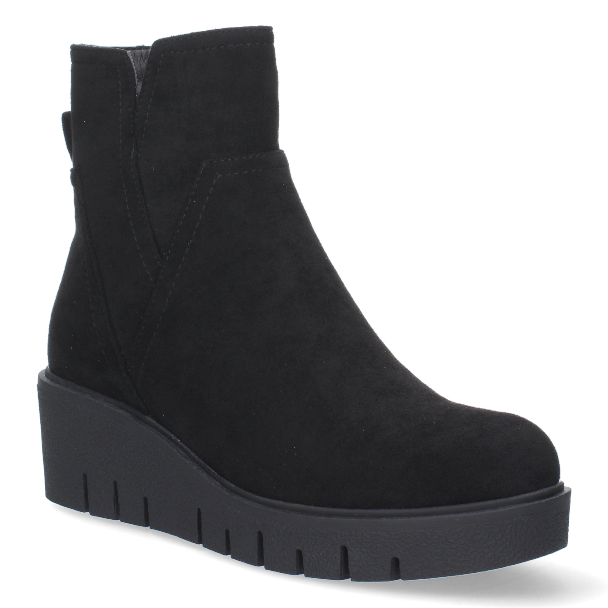 Botín de Tacón Bajo para Mujer Comodo adorno en la caña material aterciopelado y Cierre de Cremallera.